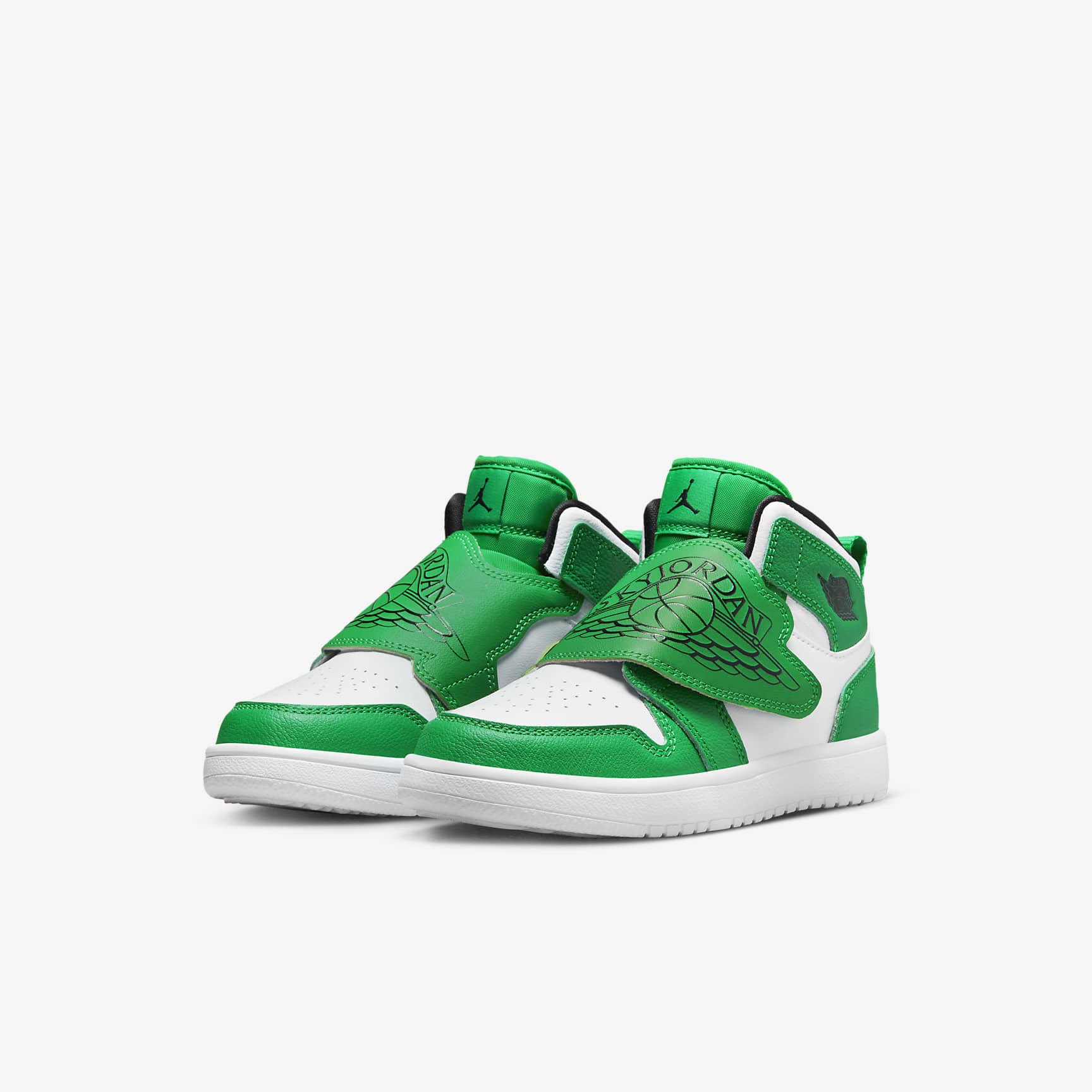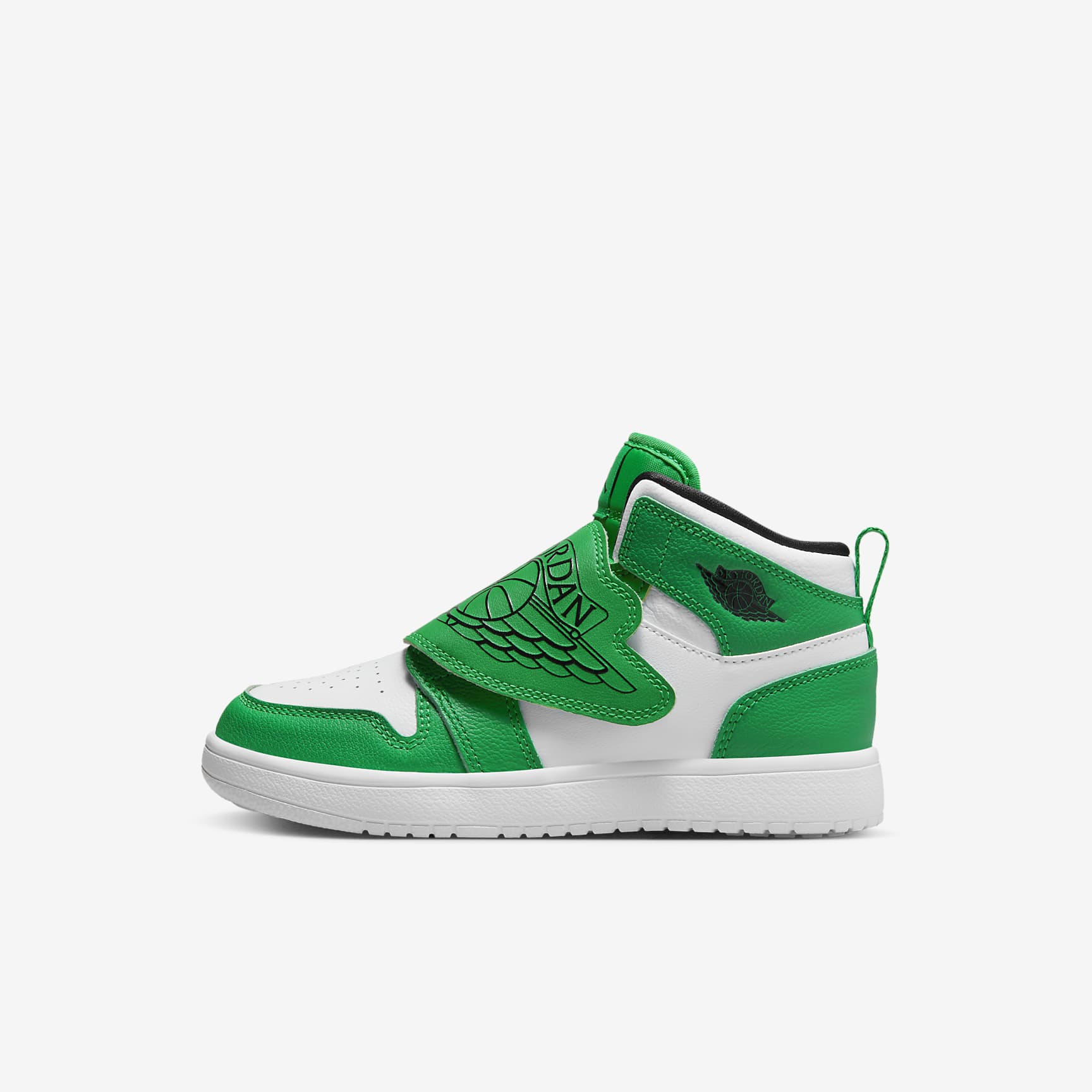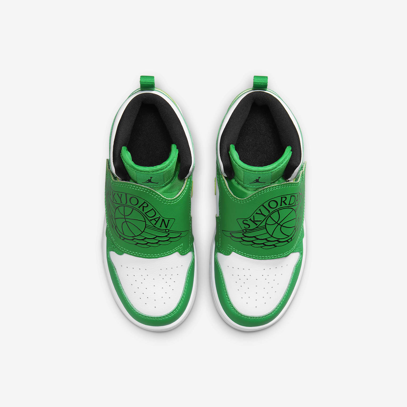 A KIDS' ORIGINAL INSPIRED BY MJ'S FIRST SHOE. Inspired by the AJ1, the Sky Jordan 1 is equal parts iconic and adorable. It has soft foam cushioning, rubber traction and a hook-and-loop strap for easy on and off. Benefits * The real and synthetic leather materials have a classic look and feel. * A "Sky Jordan" logo on the front doubles as a hook-and-loop strap to secure the fit. * The soft foam cushions little feet. * A rubber sole provides durable traction. Product Details * Pull tab