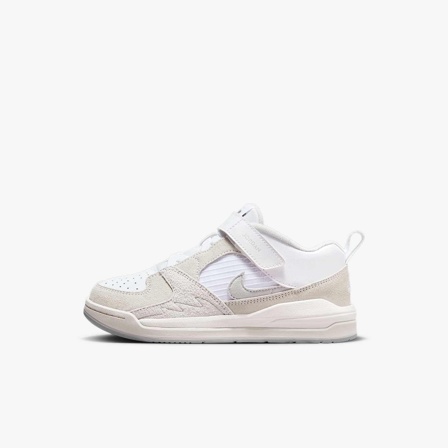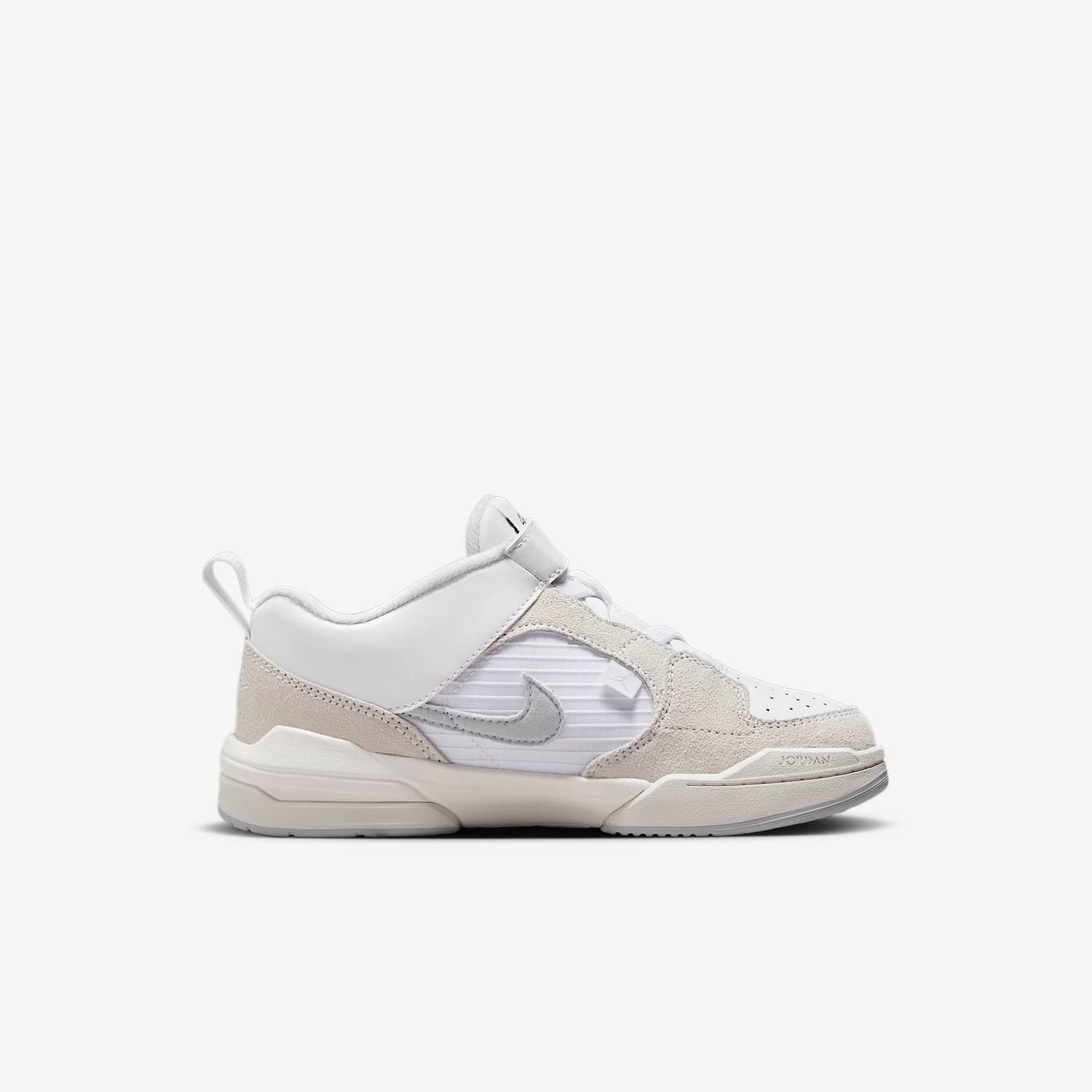 Comfort is king, but that doesn't mean your kid has to sacrifice style. Taking design inspiration from the AJ1 and AJ5, the Stadium 90 is ready for everyday play. With an upper made from sturdy leather and airy Ripstop, learning feet are supported with breathable durability. Benefits * Durable upper is made from real leather, synthetic leather and textile materials. * Rubber outsole provides traction for little feet. Product Details * Rubber outsole pays homage to the AJ1 * Flame details and heel branding reference the AJ5 * Classic laces
