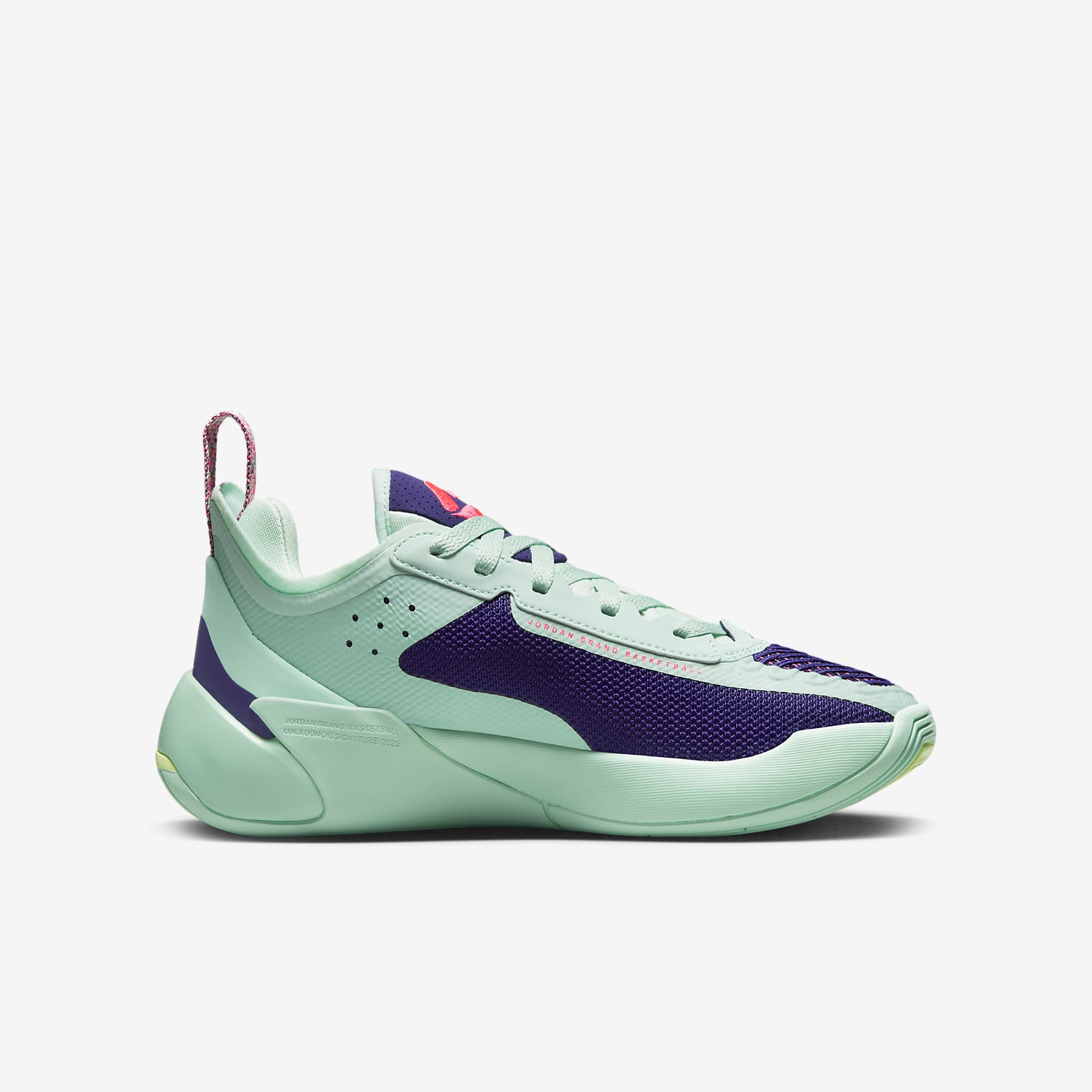 Designed for No. 77 and made for every athlete craving speed and efficiency, Luka's debut delivers the goods. The first shoe with full-length Formula 23 foam, it has an ultra-supportive fit crafted with the step-back in mind. Meanwhile, strong and lightweight Flight Wire embroidery keeps you feeling contained on the court. This is the assist you've been waiting for—get out there and make your shot. Cable Container Embroidered Flight Wire—think of the braided cables that support bridges—keep your feet secure and contained. Geared for Quickness Full-length Formula 23 foam translates to responsive support for your entire foot, helping you find new ways to create space. Under the foam, a stabilising plate helps you feel quick when Euro-stepping through the lane. Step Back With Confidence A rubber wrap built for ankle support complements an efficient traction system designed to optimise Luka's step-back—and yours, too.
