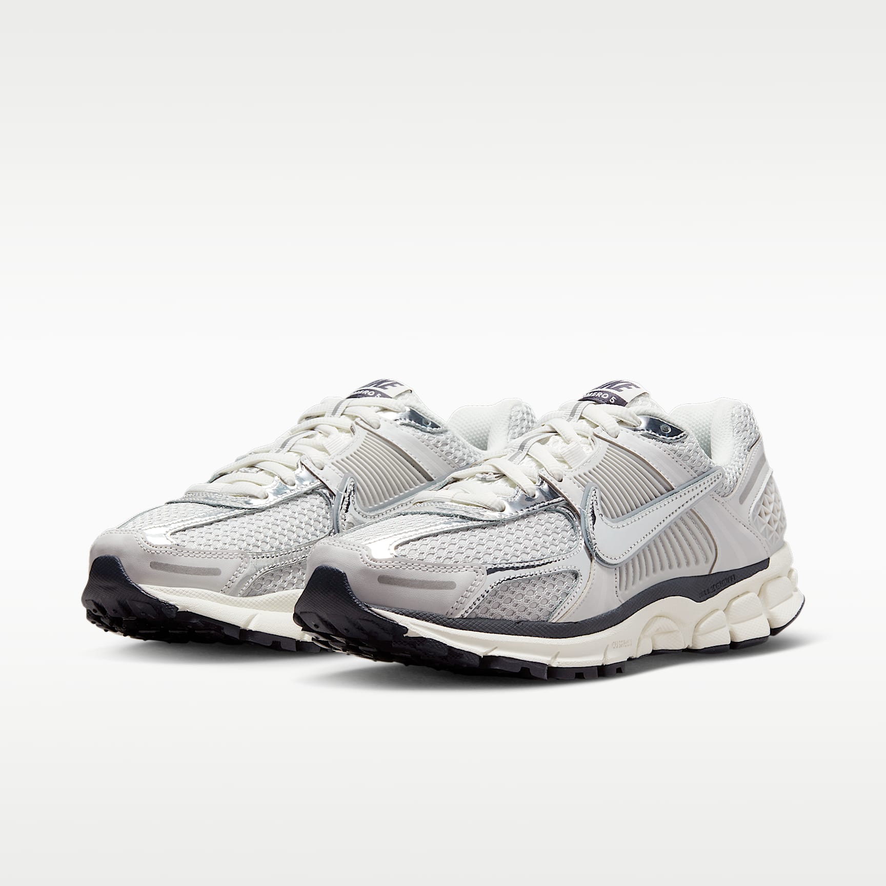 The Vomero 5 keeps comfort in mind without sacrificing any style. Airy neutrals and mixed materials come together to create a layered look with subtle depth. And that metallic Swoosh? Perfection! Benefits * Real and synthetic leather on the upper add durability. * Mesh panels and ventilation ports on the heel keep it light and breathable. * Zoom Air cushioning helps provide a quick-off-the-ground sensation. * Plastic caging on the side adds support. * Rubber outsole gives you durable traction. Product Details * Reflective details * Not intended for use as Personal Protective Equipment (PPE)