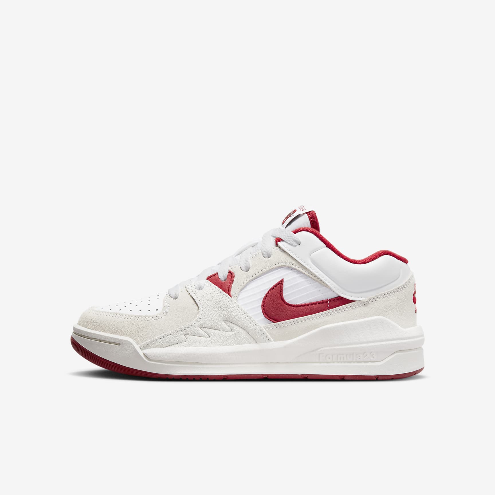 Comfort is king, but that doesn't mean you have to sacrifice style. Taking design inspiration from the AJ1 and AJ5, the Stadium 90 is ready for everyday wear. The upper is made from leather and airy Ripstop, so you get both breathability and durability, and Nike Air cushioning in the sole keeps your every step light and cushioned. Benefits * Durable upper is made from real leather, synthetic leather and textile materials. * Nike Air technology absorbs impact for cushioning with every step. * Rubber outsole provides everyday traction. Product Details * Rubber outsole pays homage to the AJ1 * Flame details and heel branding reference the AJ5