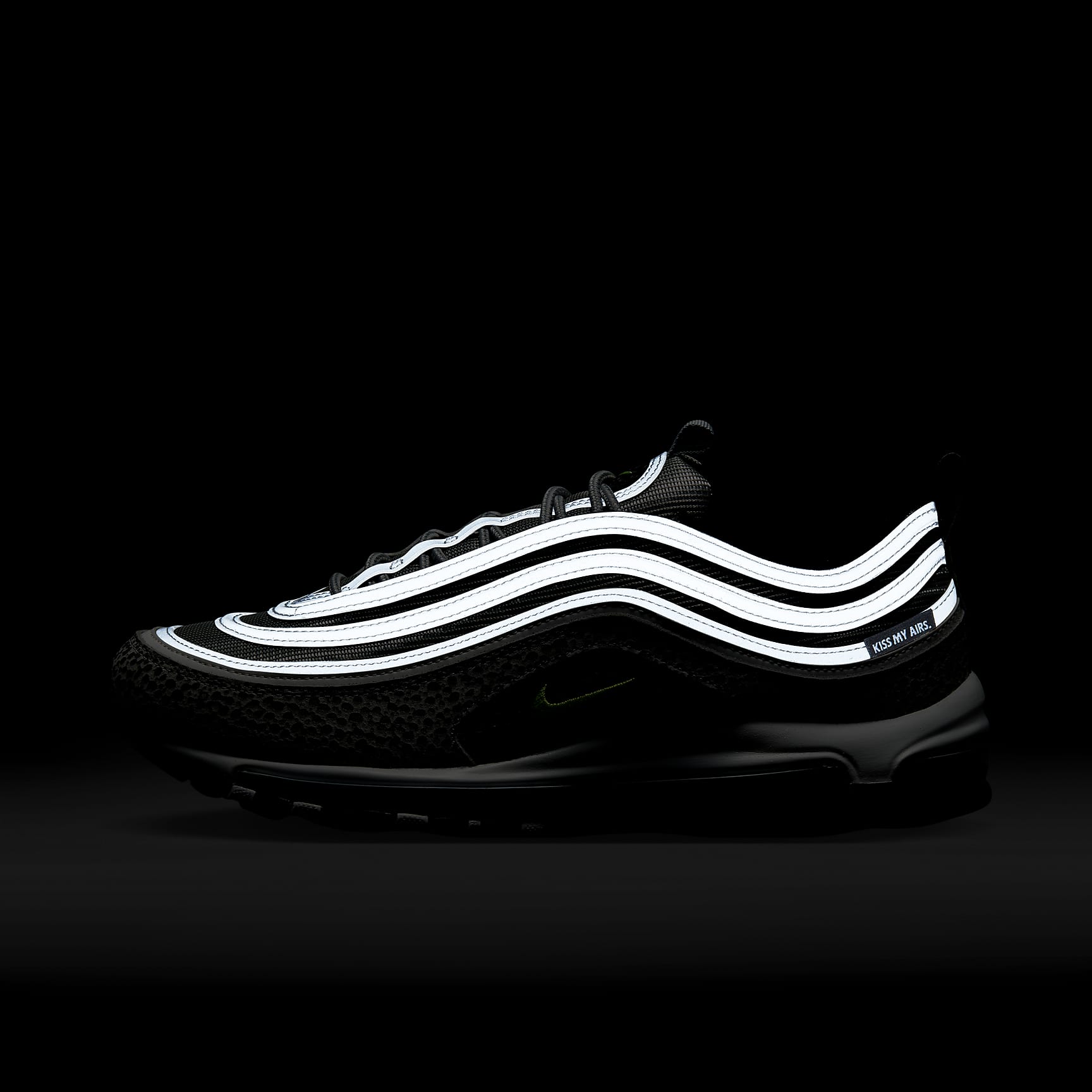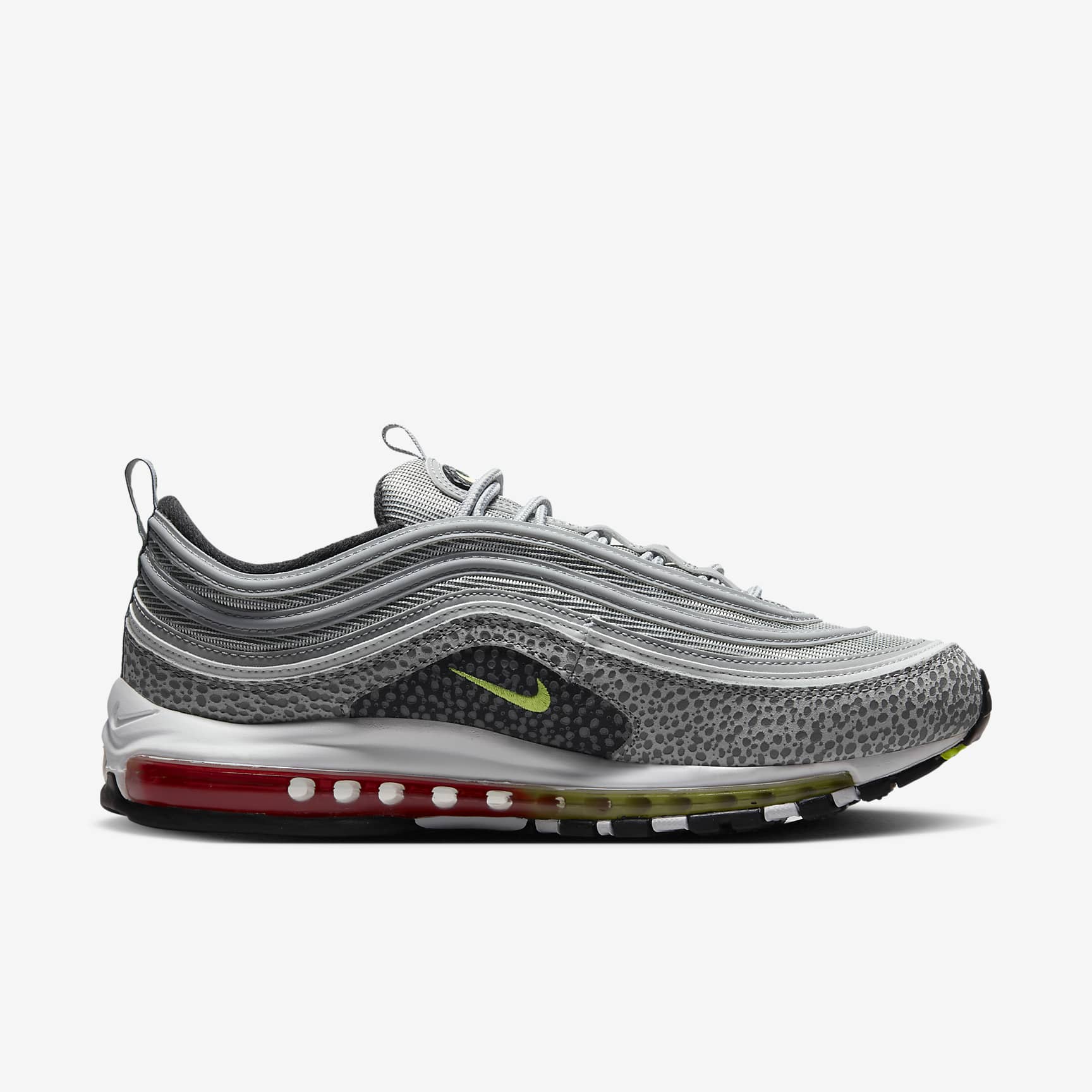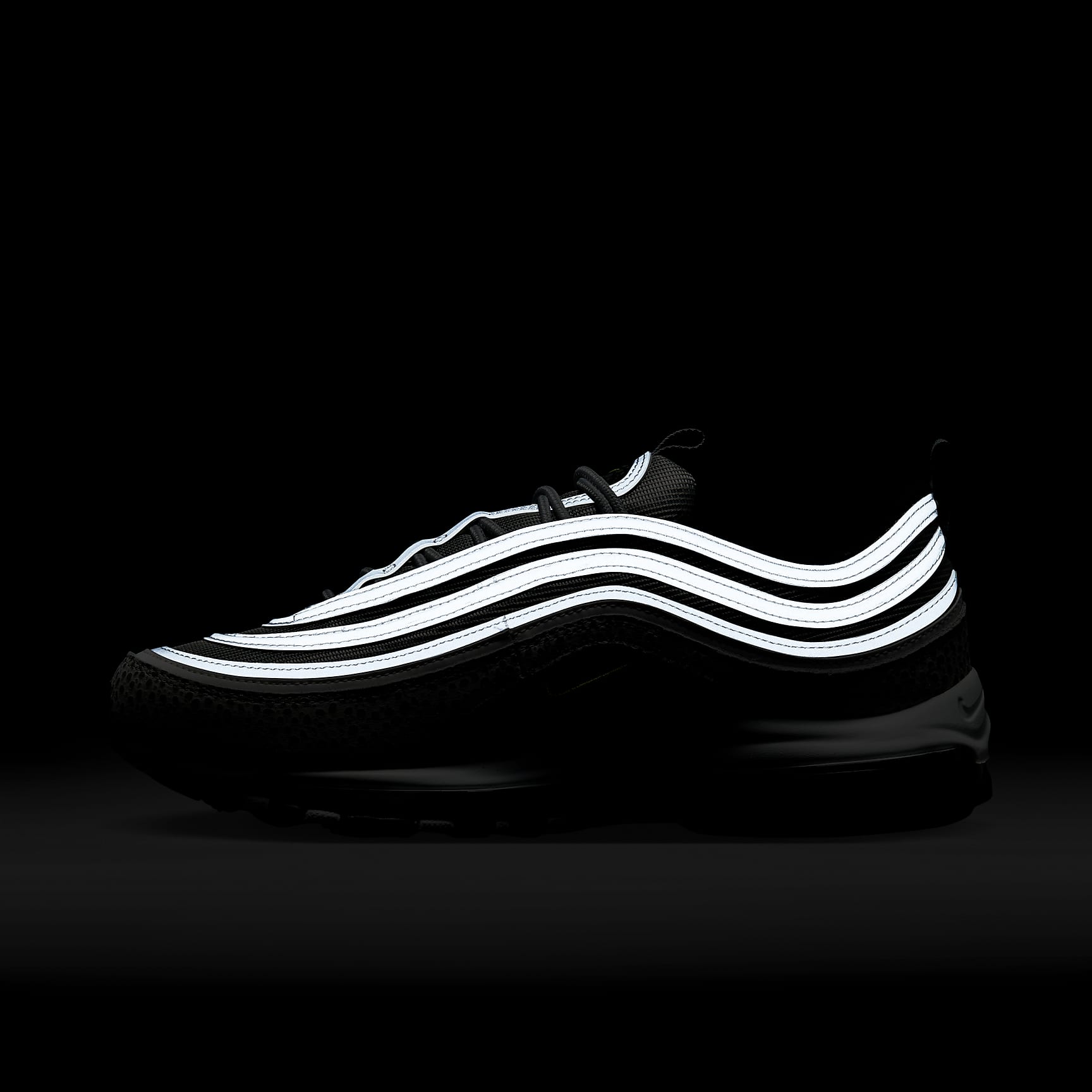 Push your style into the future with the Nike Air Max 97. Rippled design lines give this iconic sneaker a sleek and fast-paced look. To ensure these kicks turn heads, we added tinted Air windows and a subtle print. Of course, we kept the full-length Nike Air cushioning, letting you capture the spotlight in comfort. Benefits * Real and synthetic leather pair with mesh for a multi-dimensional look that's lightweight yet durable. * Originally designed for performance running, a full-length Max Air unit provides soft, comfortable cushioning. * Plush foam midsole works with the Max Air unit to cushion your every step. * Rubber outsole provides durable traction. Product Details * Round laces * Pull tabs on the tongue and heel * Reflective design details * Not intended for use as Personal Protective Equipment (PPE)