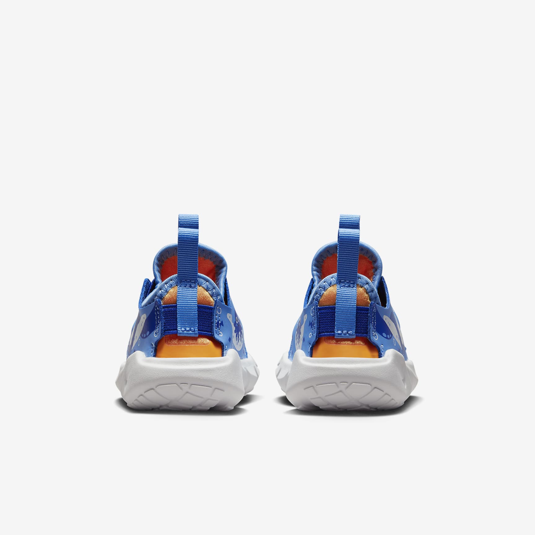 Future racers + octopus lovers unite! Get their tentacles (AKA legs!) Moving with the Nike Flex Runner 2. No laces make these shoes easy to slip on and off. They're also super flexible, plus a cushioned foam sole keeps running and jumping fun. Ocean-like colours and octopus graphics wrap around little feet—like a H-U-G from their favourite sea animal. Made for Little Ones Part of our seasonal Lils collection, this special edition features a blue colourway (like the ocean), octopus graphics and water droplet details. It's meant to spark curiosity and joy through water, plus inspire kids to learn about water conservation and care for our ocean friends. Snug Fit A stretchy bootie design makes it easy to slip little feet in with a snug and secure feel. A midfoot strap, a heel strap and leather on the sides stabilise the fit. Easy Steps The flexible foam sole is designed with grooves so every step feels natural. The sole's pattern also helps with multi-surface traction. Breathe Easy on the Move Breathable fabric on the front of the shoe is lightweight and helps keep feet cool while walking and playing. More Benefits * The toe tip is reinforced with extra durability for toe-draggers. * Pull tabs on the heel and tongue help make the shoe easy to get on and off.