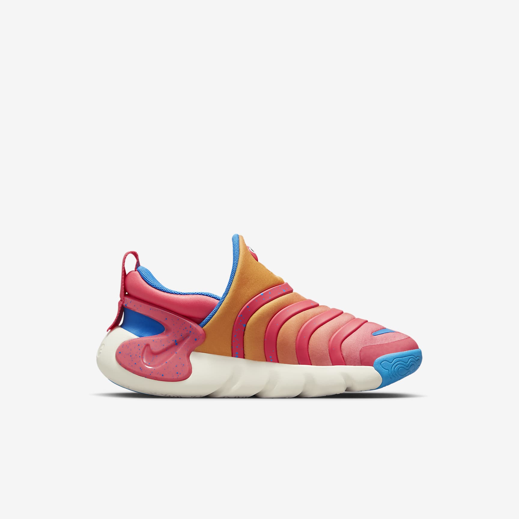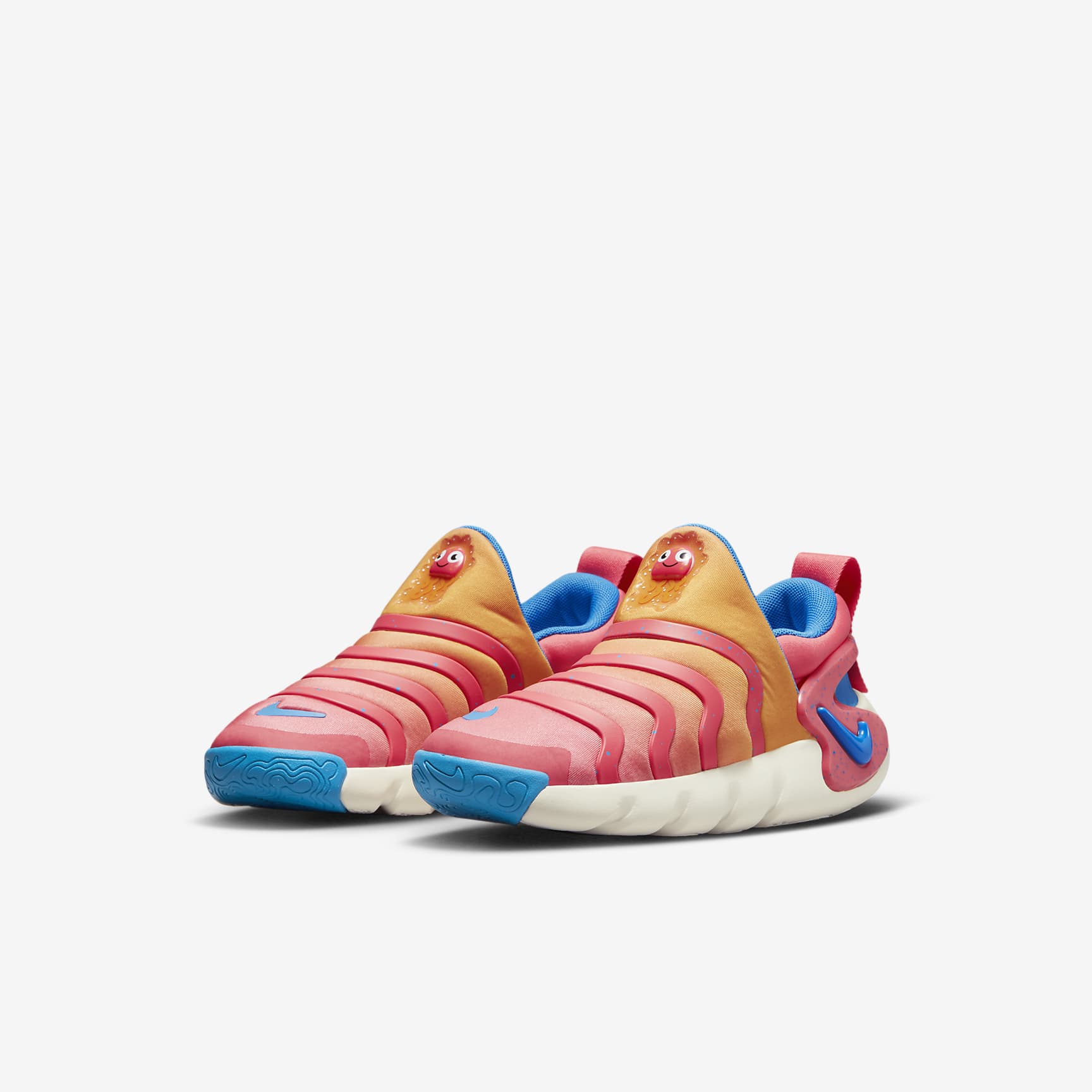 Playtime lovers + jellyfish fans unite! Get their tentacles (AKA their legs!) moving with the Nike Dynamo GO SE. An easy on-and-off collapsible heel means little ones can slip in and go. The awesome squiggly lines on the top help keep little feet secure while they glide and roam around when it's time to have fun. Quick, Easy and Hands Free Kids can stomp down and easily slip their feet right in. No laces needed. An easy demonstration (that's as simple as 1–2–3) by pushing down the heel can teach them how it works. Total Comfort Soft and flexible textile helps little feet feel comfy on the go. The squishy, wavy lines on the upper are strategically designed for stability for kids who move in all different directions. Super soft The puffy foam collar provides an amazing plush feel. Plus, soft foam underfoot provides all the cushioning they need to play. Made for Little Ones This special edition features an ocean and coral reef-like colourway, plus jellyfish graphics for an underwater look. Product Details * Pull tab on heel