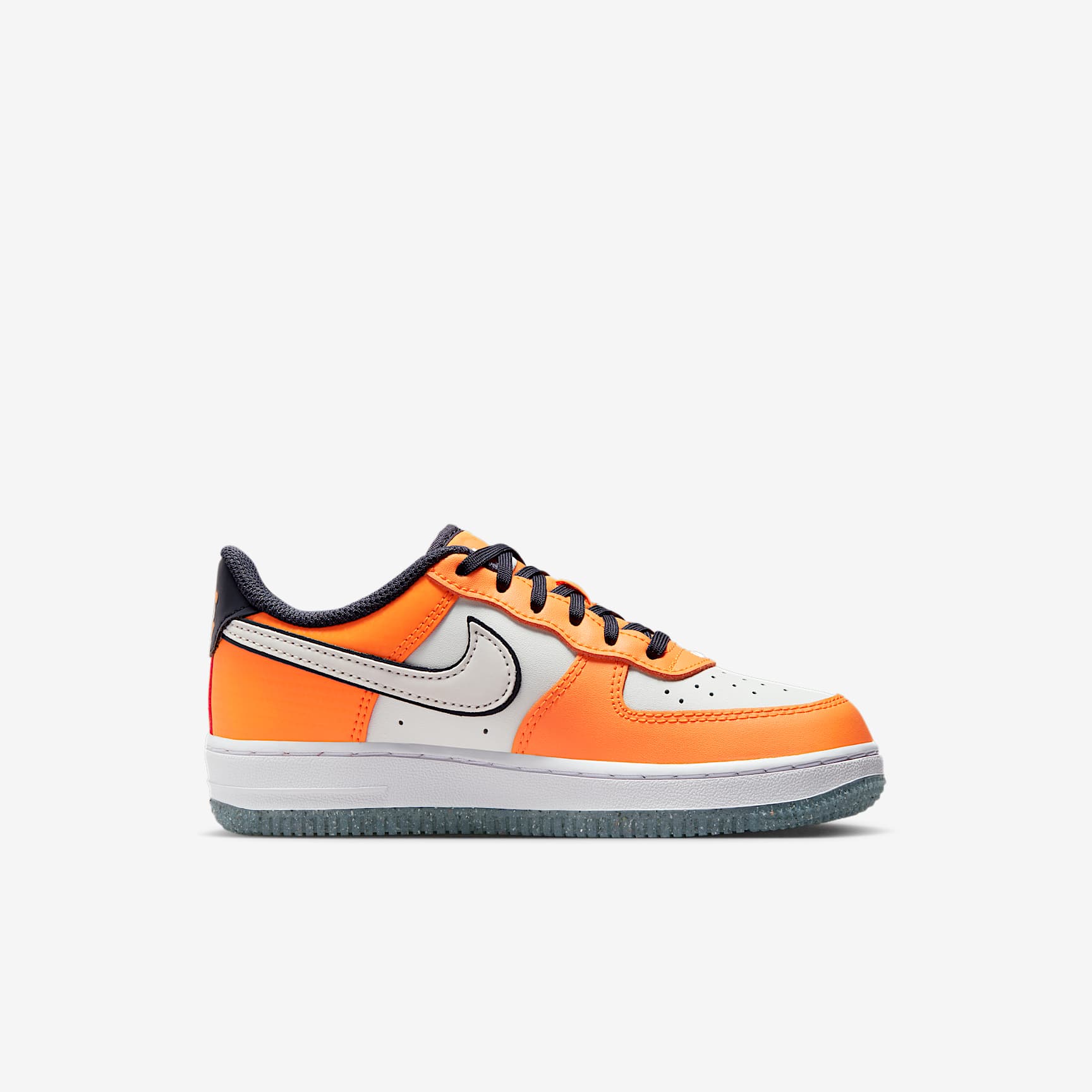 One word describes our mini-me Air Force 1 with cute clown fish graphics: fin-tastic! They bring the classic durable leather feel that makes this shoe a favourite for generations. The special edition has fish graphics, plus scales on the sides—like a big hug from their favourite sea creature. Made for Little Ones This special edition features an orange colourway (like our favourite clown fish), fish graphics on the tongue and heel and scales on the sides. It's meant to spark curiosity and joy through water, plus inspire kids to learn about water conservation and care for our ocean friends. Heritage Feel Real and synthetic leather give support and durability—inspired by the original released in 1982. Ground Control Full-length rubber sole provides durable traction. Fun fact: the circular tread pattern was originally used to help basketball players pivot on the court. Product Details * Classic laces * Soft foam insole * Foam-cushioned collar and tongue