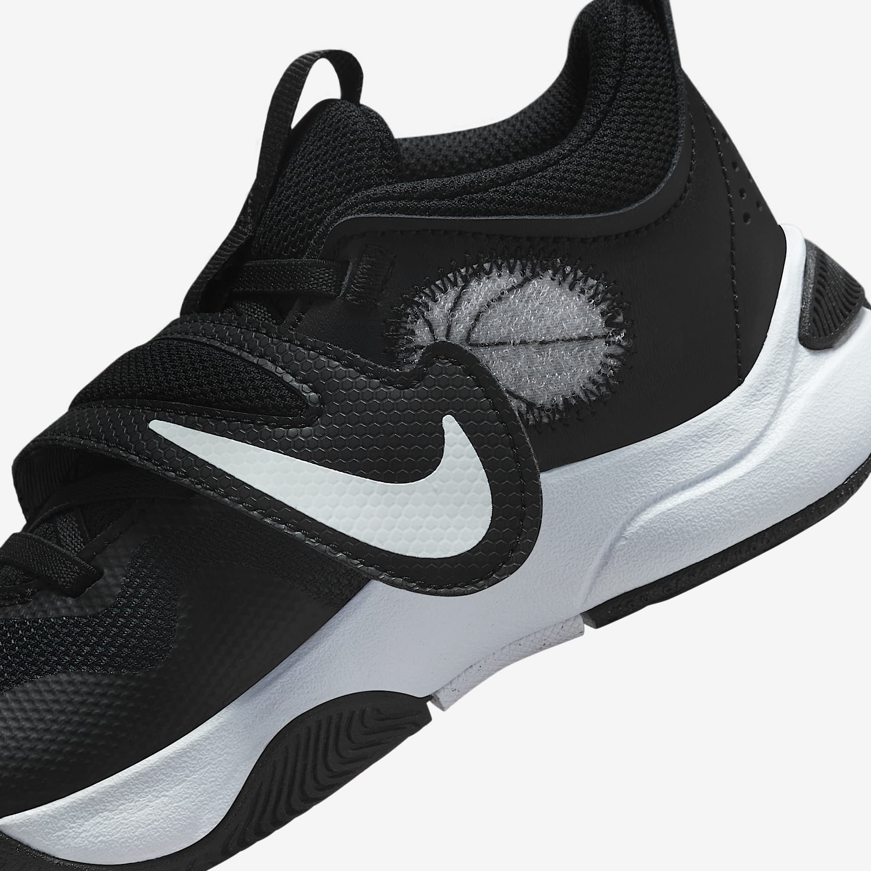 Basketball training. PE lessons. Outside play. Cover all of playtime with the Nike Team Hustle D 11. With the 11th edition of the Team Hustle D series, our top priority was super-easy slip-on style. Elastic laces help give a wide opening. Big straps secure little feet. Even more, the cushioning is more plush than previous editions. The ultimate basketball and playtime shoe just got better. Play in Comfort Real and synthetic leather gives support and durability. Soft textile helps the shoe feel lightweight and flexible. Easy On and Off Elastic laces help the shoe open wide so little feet can easily slip in. Secure their fit with a big hook-and-loop strap that fastens onto a basketball graphic. A rubber piece on the heel provides some grip to easily kick the shoes off. Ground Control Full-length rubber sole provides durable traction from the indoor court to the playground. More Benefits * Plush foam underfoot provides softer cushioning than the previous edition. * Foam on the collar and tongue gives support around the ankle. * Extra skin layer around the toe area provides durability for those who drag their toes.