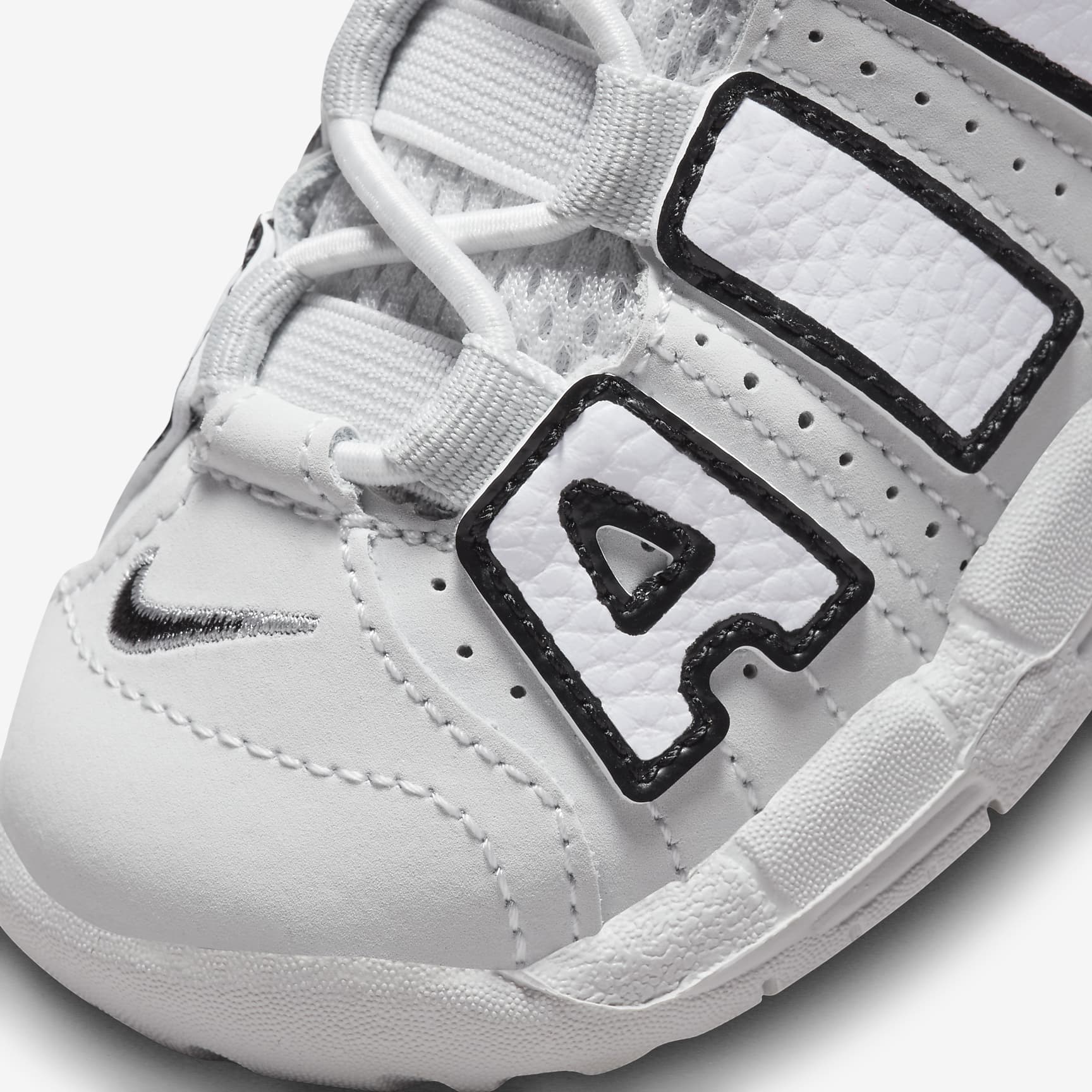 One thing stands out about the Nike Air More Uptempo. We'll let you (and your kid) take a guess as to what that might be. Need a hint? It's all about the A-I-R! These everyday shoes were in a league of their own during the '90s basketball era. Now, they're ready to help your little one blaze a new trail with the swag of a legend and the lasting comfort of Air cushioning. Heritage Style Real and synthetic leather combine for a throwback basketball feel that's durable and provides support. Everything AIR These kicks live up to their name with an Air unit that provides big cushioning with every step. The big "AIR" lettering is inspired by '90s graffiti. Built to Last The full-length rubber sole provides grip and traction across multiple surfaces while little ones move and play. More Benefits * The foam collar and tongue provide cushioning around the ankle. * Elastic straps over the top give you a secure and snug fit. * Pull tabs on the heel and tongue help you pull the shoes on and off. Product Details * Classic laces
