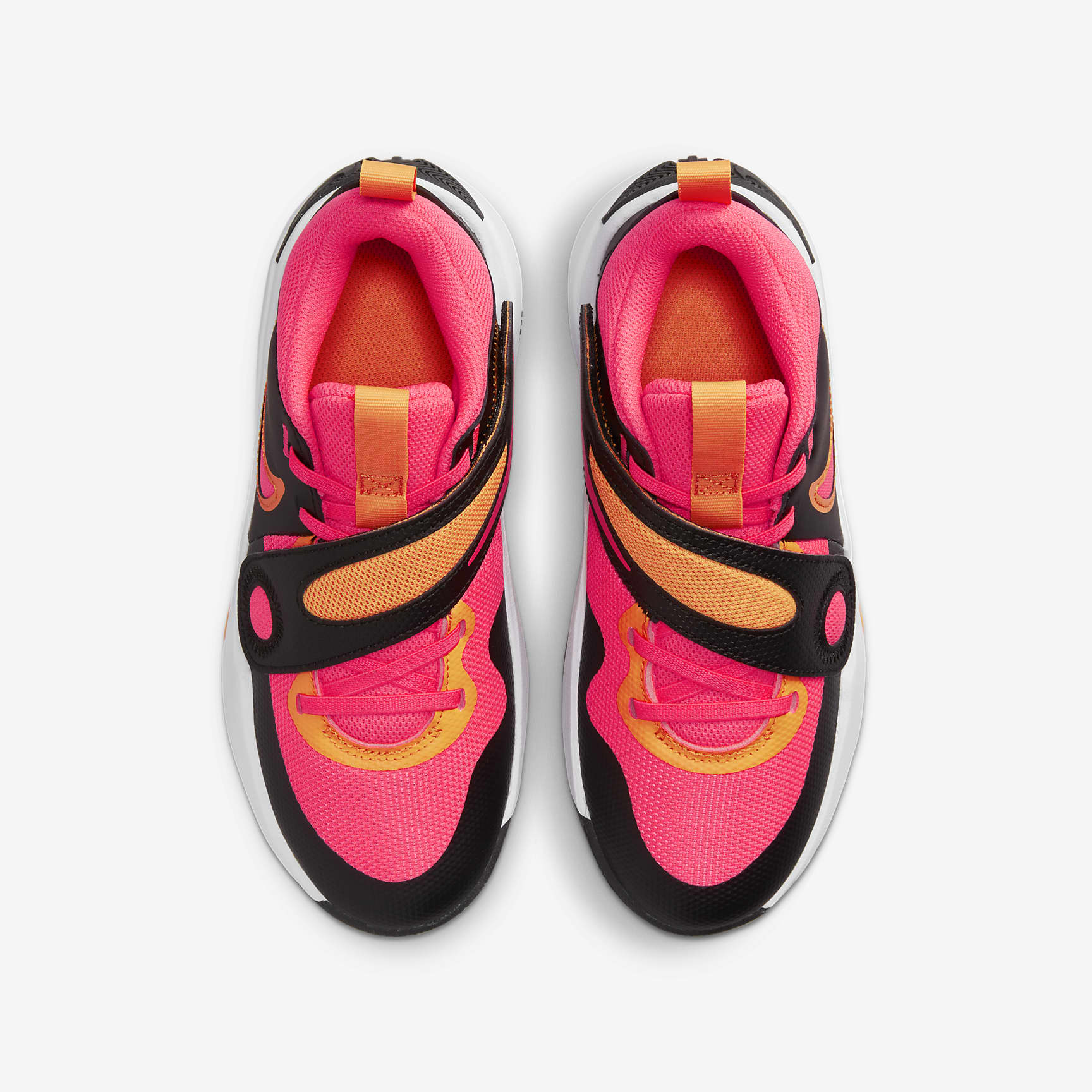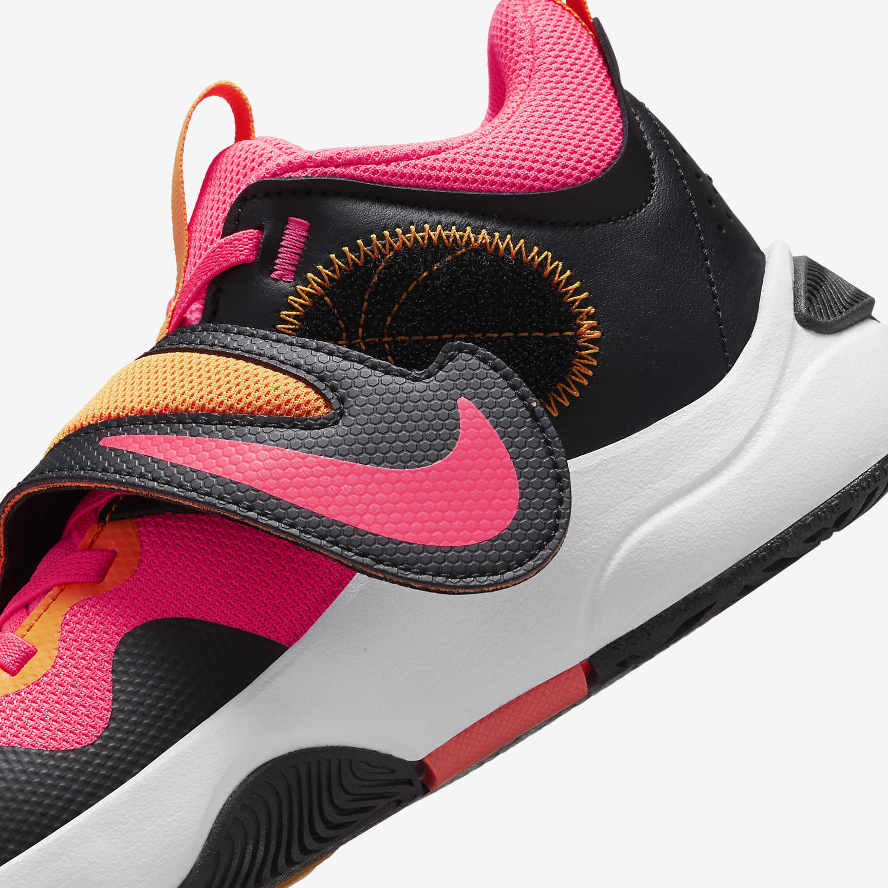 Ready for new basketball shoes? How about for gym class or just playing outside? Meet the Nike Team Hustle D 11. With this edition of our Team Hustle D series, our top priority is kicks that are super easy to get on and off. Elastic laces give you a wide opening while a big strap secures your fit. Plus, you get plush cushioning. The ultimate basketball and playtime shoe is back and ready to play. Play in Comfort Real and synthetic leather is durable with a supportive feel. Soft textiles help keep these shoes lightweight and flexible, so you stay comfortable as you play. Easy On, Easy Off Elastic laces and a wide opening help make these easy to put on and take off. A hook-and-loop strap lets you quickly secure your fitm while the rubber grip on the heel helps you easily kick your shoes off. Ground Control Full-length rubber outsole provides durable traction on a variety of surfaces, such as playgrounds and indoor basketball courts. More Benefits * Plush foam underfoot provides softer cushioning than earlier editions. * Foam on the collar and tongue helps pad your ankle for a supportive feel. * Extra skin around the toe area adds durability for those who drag their toes. Product Details * Pull tab on the heel and tongue * Foam in the midsole
