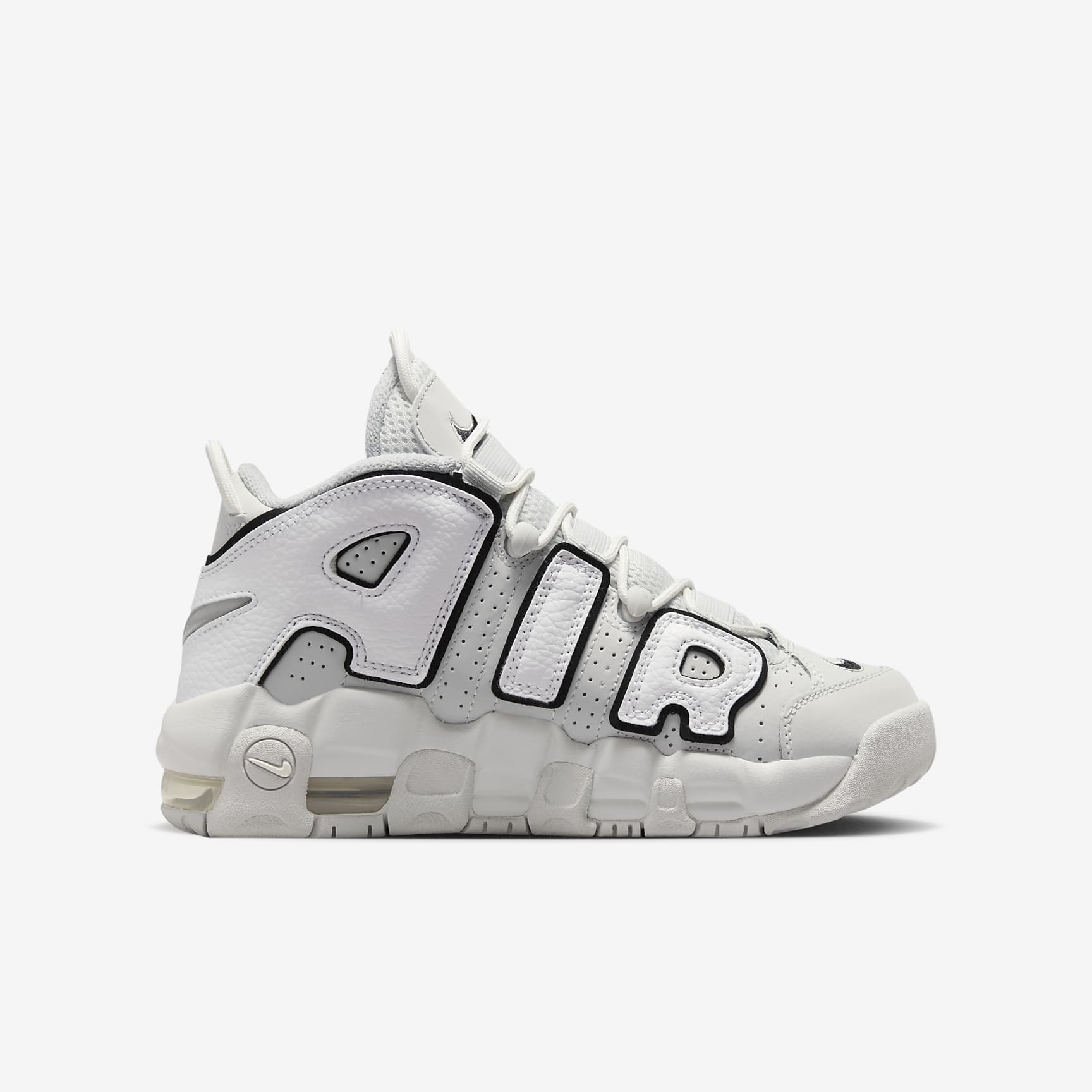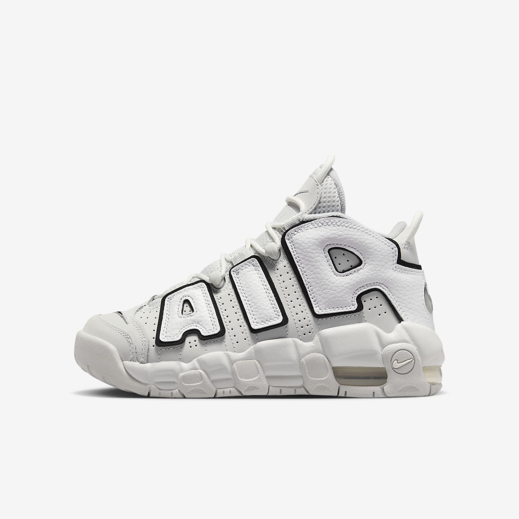 One thing stands out about the Nike Air More Uptempo. We'll let you take a guess as to what that might be. Need a hint? It's all about the A-I-R! These everyday shoes were in a league of their own during the '90s basketball era. Now, they're ready to help you blaze a new trail with the swag of a legend and the lasting comfort of Air cushioning. Heritage Style Real and synthetic leather combine for a throwback basketball feel that's durable and provides support. Everything AIR The shoe lives up to its name with "A-I-R" lettering plus an Air unit underfoot for extra cushioning with every step. Built to Last The full-length rubber sole provides grip and traction across multiple surfaces while you move and play. More Benefits * Elastic straps over the top give you a secure and snug fit. * Pull tabs on the heel and tongue help you pull the shoes on and off. Product Details * Classic laces