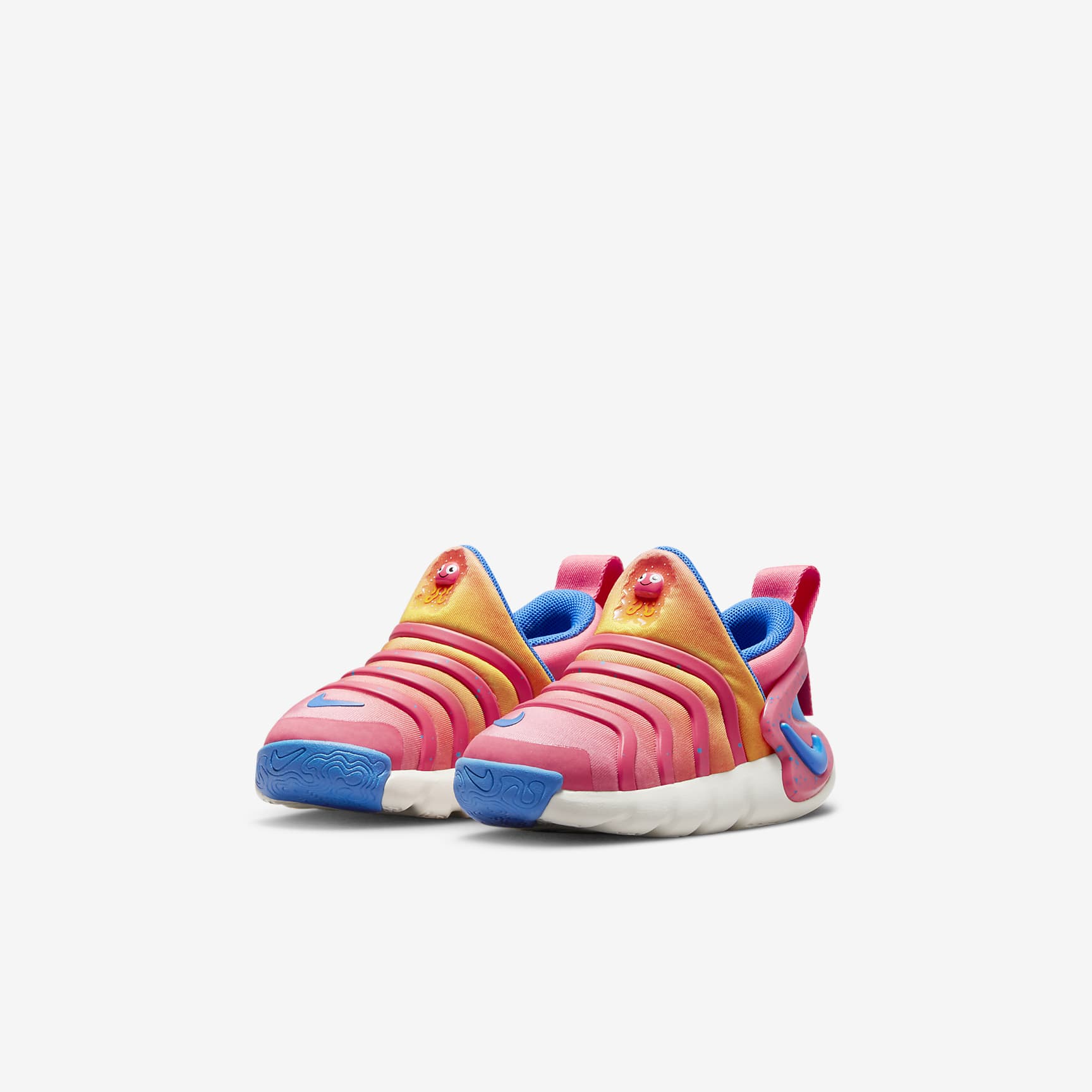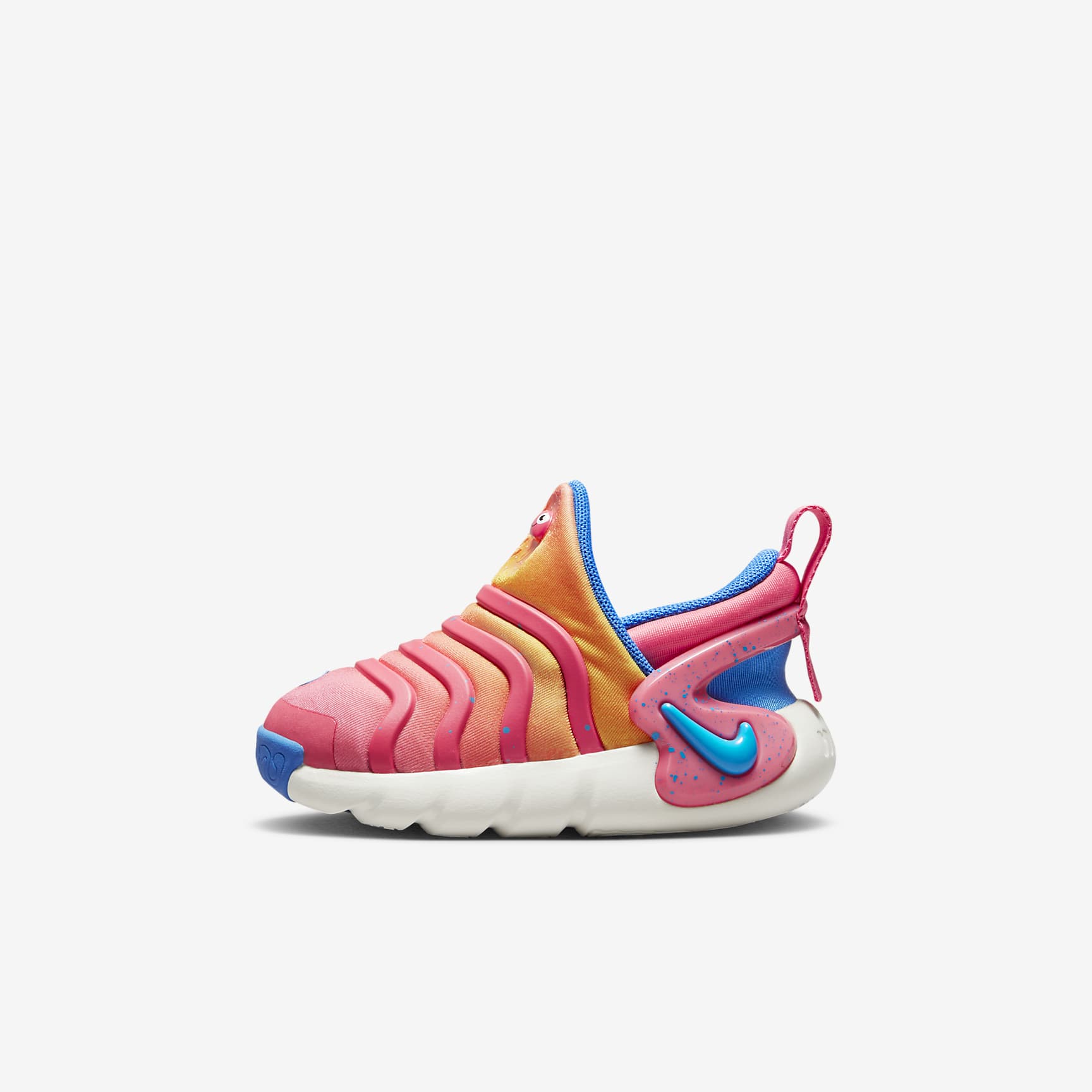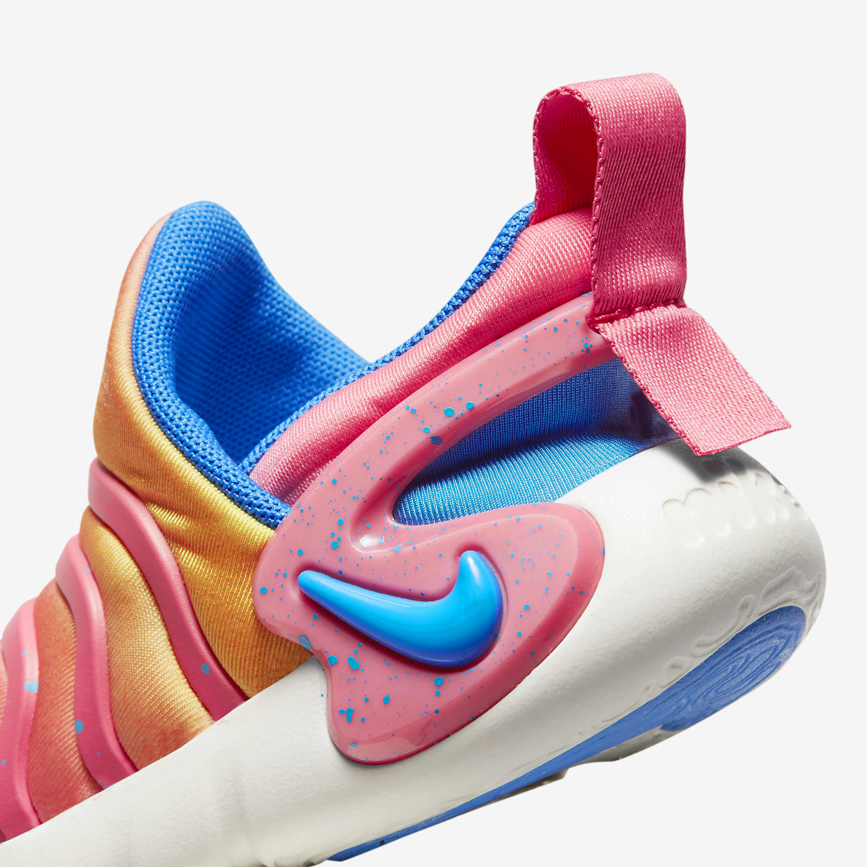 Playtime lovers + jellyfish fans unite! Get their tentacles (AKA their legs!) moving with the Nike Dynamo GO SE. An easy on-and-off collapsible heel means little ones can slip in and go. The awesome squiggly lines on the top help keep little feet secure while they glide and roam around when it's time to have fun. Quick, Easy and Hand Free Kids can stomp down and easily slip their feet right in. No laces needed. An easy demonstration (that's as simple as 1-2-3) by pushing down the heel can teach them how it works. Total Comfort Soft and flexible textile helps little feet feel comfy on the go. The squishy, wavy lines on the upper are strategically designed for stability for kids who move in all different directions. Super-Soft The puffy foam collar provides an amazing plush feel. Plus, soft foam underfoot provides all the cushioning they need to play. Made for Little Ones This special edition features an ocean and coral reef-like colourway, plus jellyfish graphics for an underwater look. Product Details * Pull tab on heel