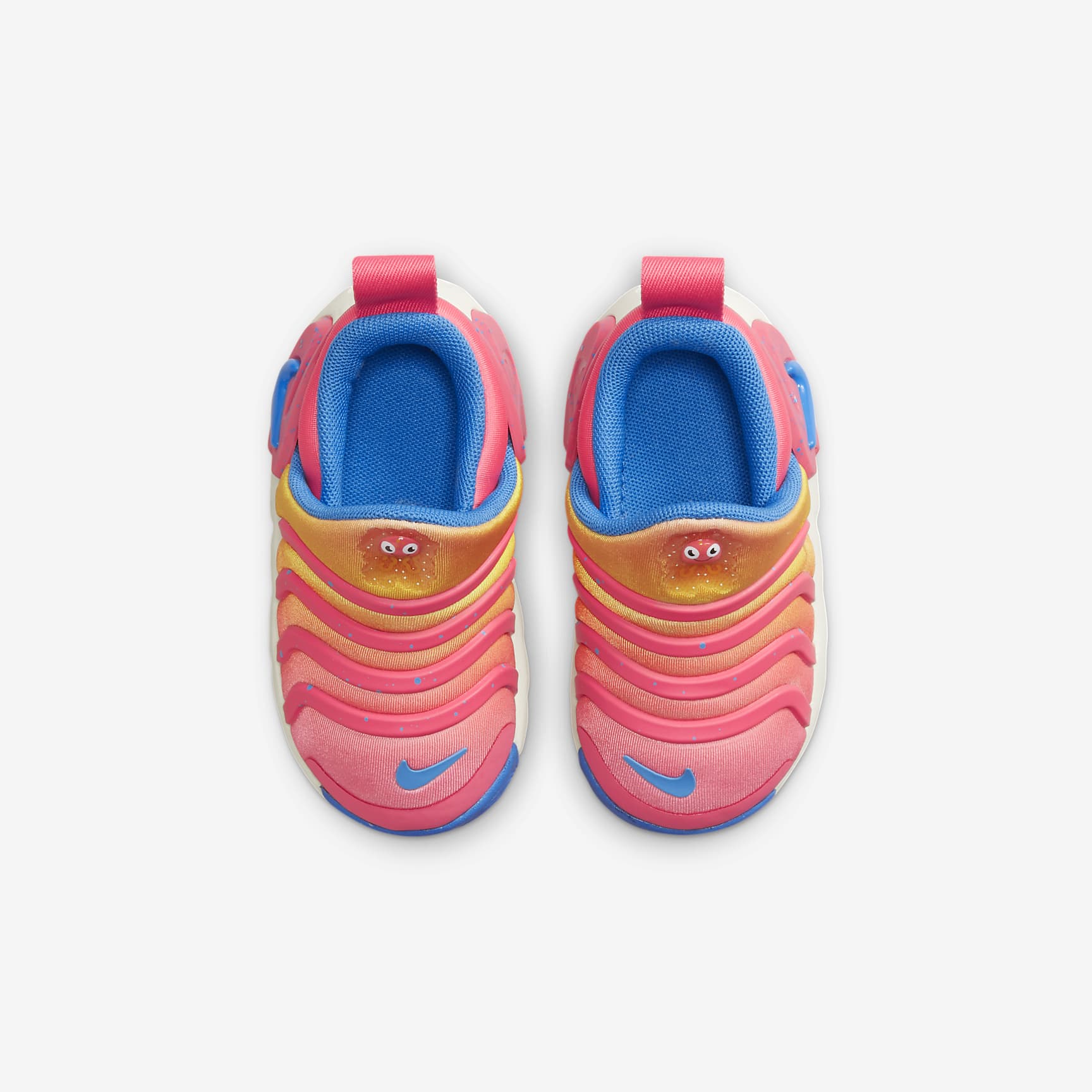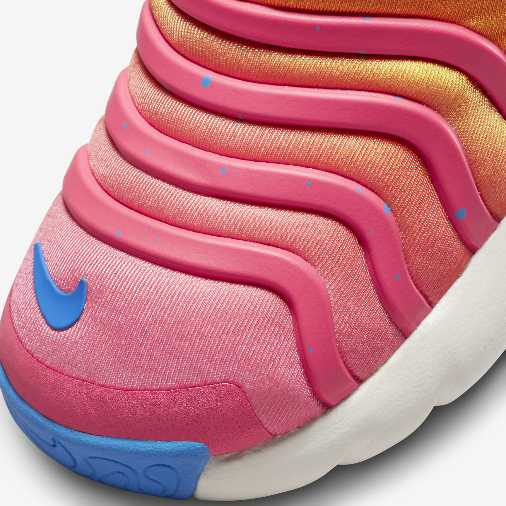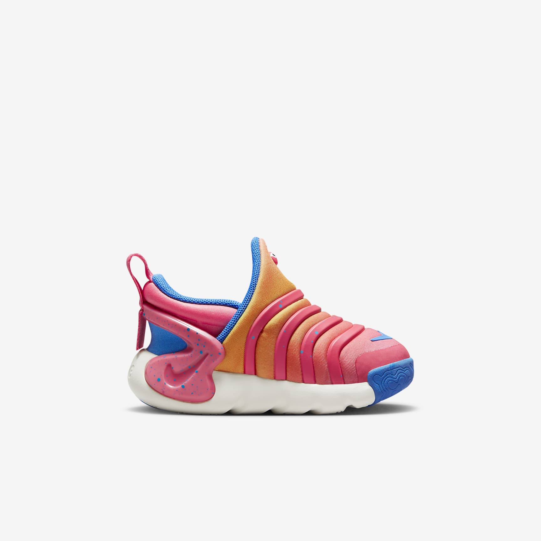 Playtime lovers + jellyfish fans unite! Get their tentacles (AKA their legs!) moving with the Nike Dynamo GO SE. An easy on-and-off collapsible heel means little ones can slip in and go. The awesome squiggly lines on the top help keep little feet secure while they glide and roam around when it's time to have fun. Quick, Easy and Hand Free Kids can stomp down and easily slip their feet right in. No laces needed. An easy demonstration (that's as simple as 1-2-3) by pushing down the heel can teach them how it works. Total Comfort Soft and flexible textile helps little feet feel comfy on the go. The squishy, wavy lines on the upper are strategically designed for stability for kids who move in all different directions. Super-Soft The puffy foam collar provides an amazing plush feel. Plus, soft foam underfoot provides all the cushioning they need to play. Made for Little Ones This special edition features an ocean and coral reef-like colourway, plus jellyfish graphics for an underwater look. Product Details * Pull tab on heel