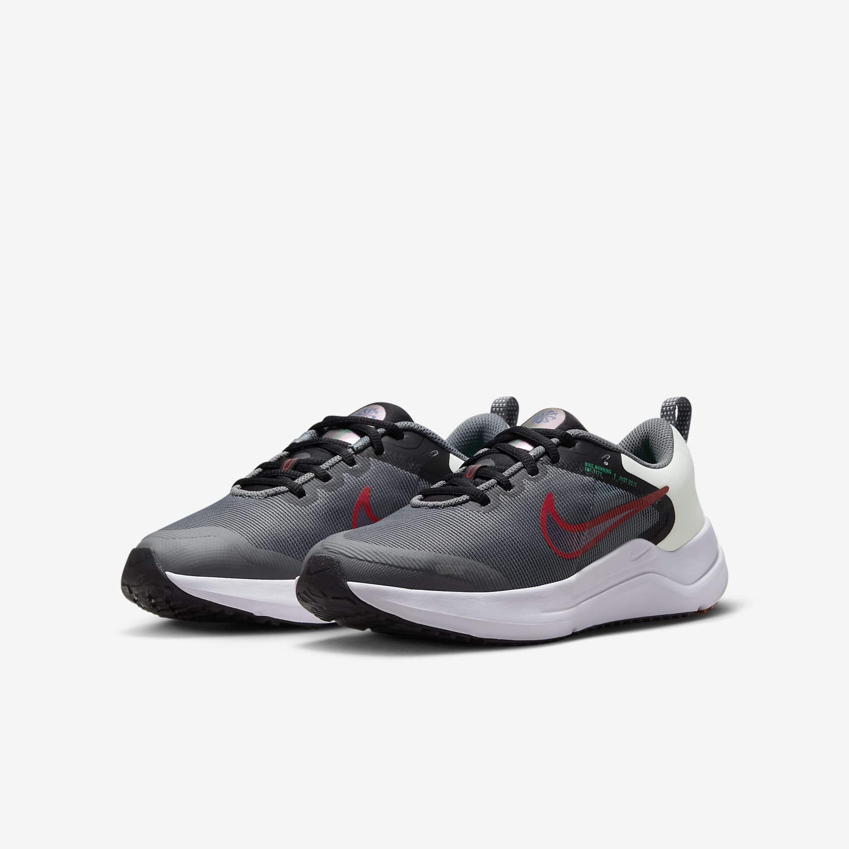 LIGHTWEIGHT SUPPORT FOR ALL-DAY PLAY. Whether you're playing a game of tig or warming up for athletic training, feel confident when you pull on the Nike Downshifter 12. Breathable support on top makes these shoes lightweight and versatile for all your activities. Plus, full-length rubber on the sole means durability to go the extra mile. This product is from with at least 20% recycled content by weight. Ground Control The sole has more rubber than previous versions of the Downshifter to make it extra durable. It includes about 9% Nike Grind made from recycled manufacturing waste. Cool Comfort Lightweight mesh and textile provide breathability, so your feet can stay cool and comfortable with every move. Cushioned for Play Soft foam underfoot provides cushioning and support when you run and jump. More Benefits * The sole features a groove down the length of the shoe for extra flexibility. * A heel pull tab helps you get the shoe on and off. Product Details * Classic laces