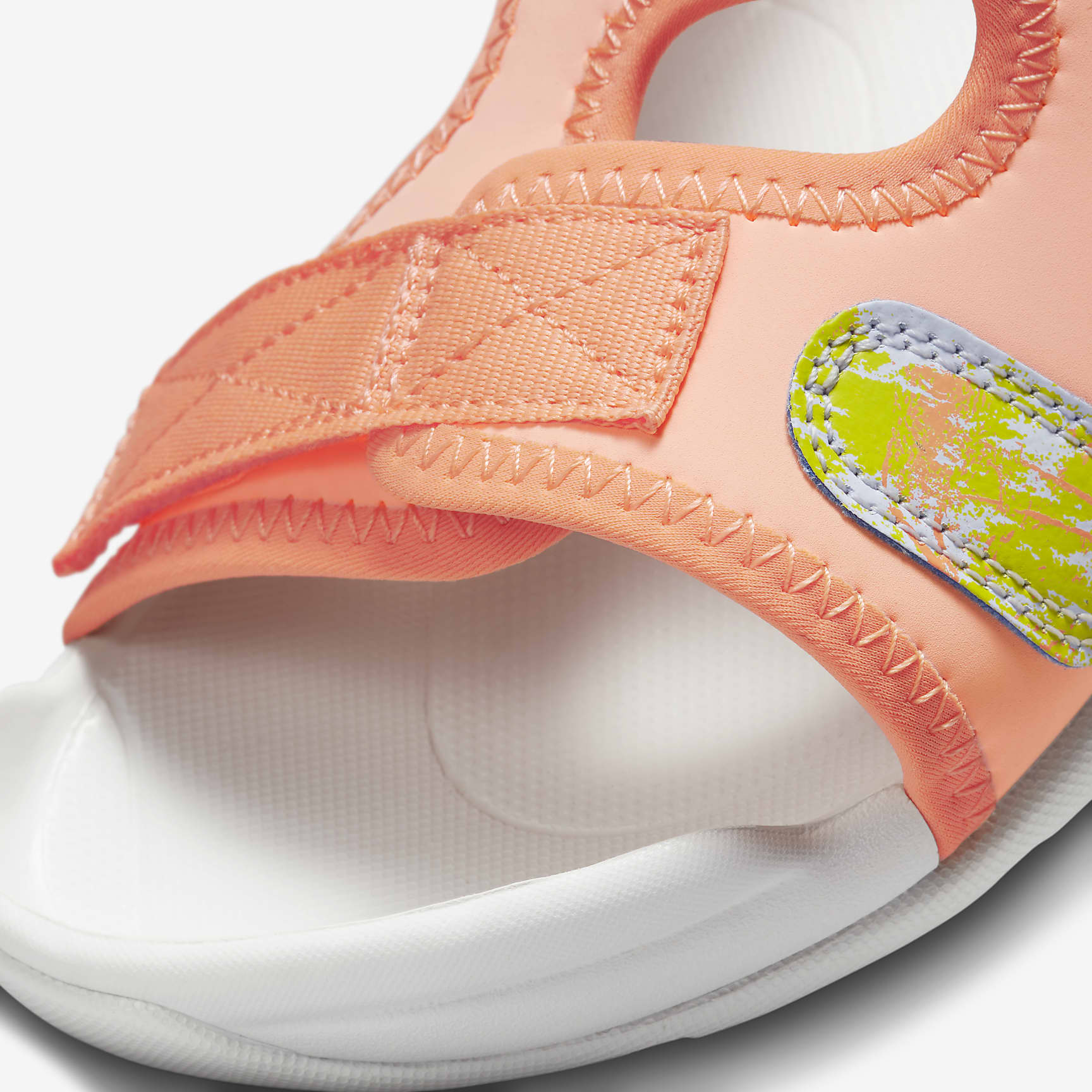 Made for those mega-fun beach days. Maybe swimming classes at the pool. Or you just need an easy slip-on for playing under the sun. The Nike Sunray Adjust 6 is super plush when the warm weather hits. The edges help keep your feet contained when you play—we don't like slipping! Also, a strap closure makes everything easier. Behind the Design Celebrate the cycle of life—plant style! This special edition colourway is inspired by the beauty of plant growth that explorers find outdoors in their curiosity of the planet. Soft Comfort Super-soft and stretchy upper provides plush comfort and helps prevent uncomfortable rubbing against your feet. Strappy Support Hook-and-loop strap makes the slides easy to get on and off. Elastic strap on the heel helps give a snug fit. Comfy Fit Toe bumper design helps keep your toes contained while you move and play. More Benefits * Soft foam underfoot provides lightweight cushioning. * Rubber on the outsole gives durability. Product Details * Hook-and-loop strap closure
