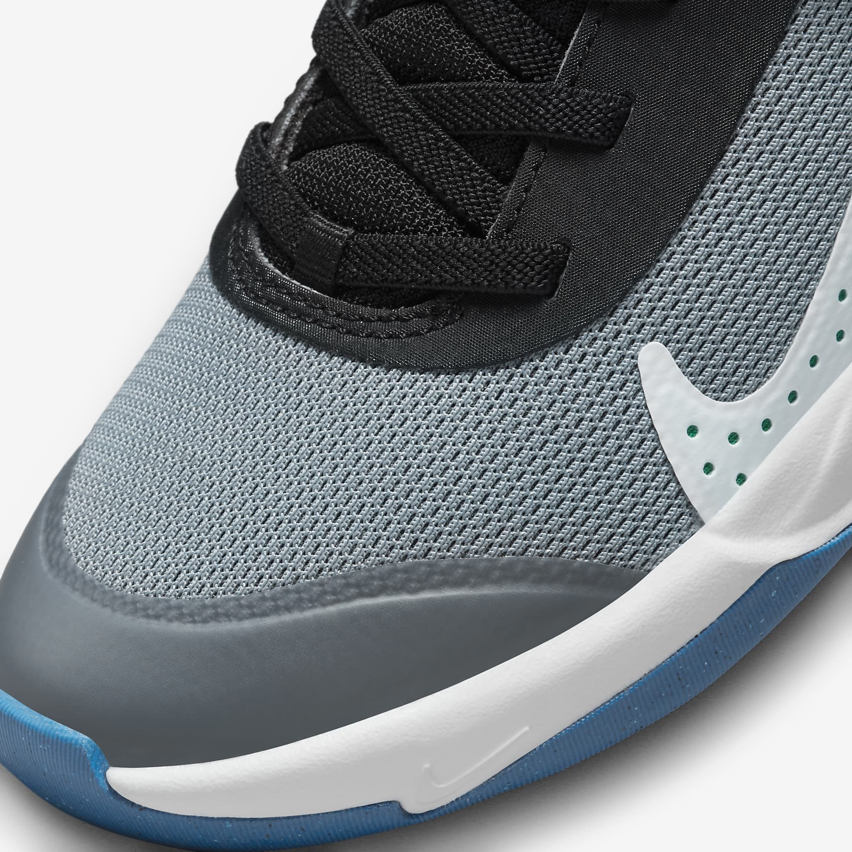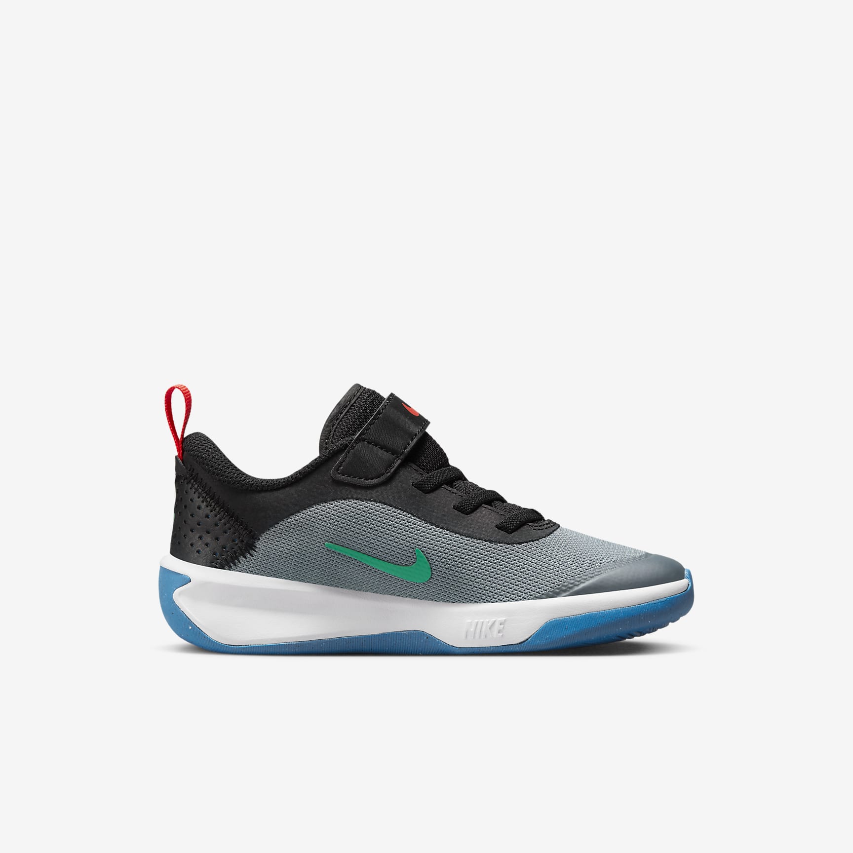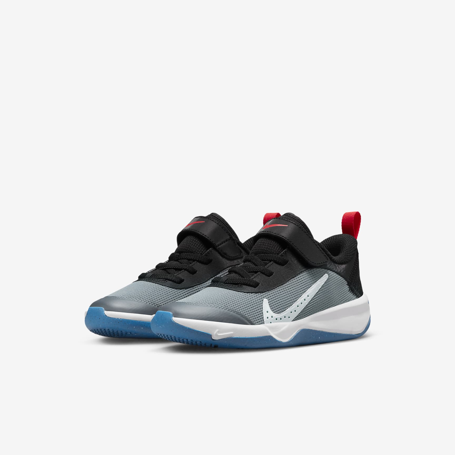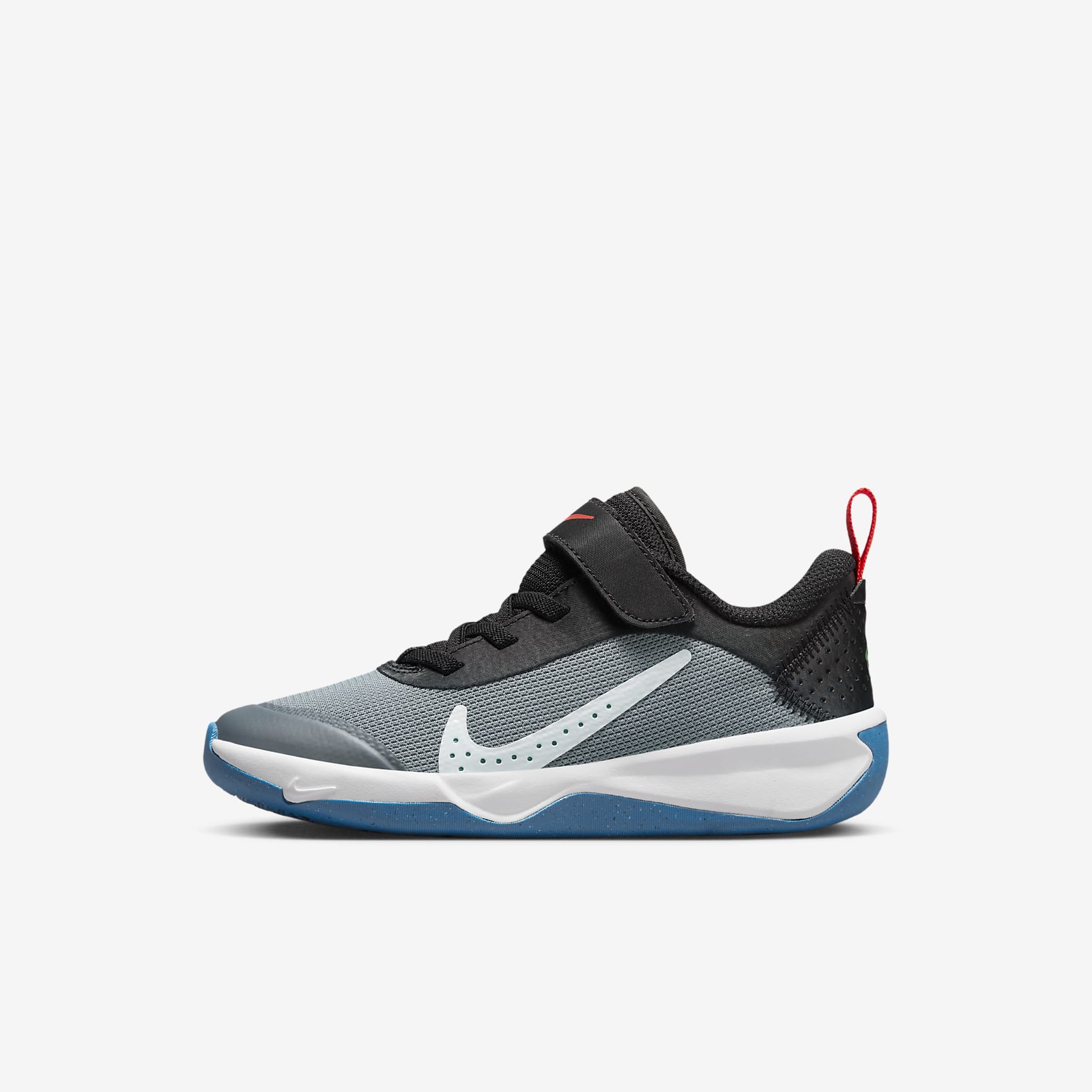 What's Omni, you ask? It means universal, inclusive and all. Playtime is about freedom and imagination. As the ultimate play shoe, there are no limits when your kid pulls these Nikes on. They're durable for any indoor court surface and lightweight to help make play comfortable. Play-Ready Traction From indoor volleyball courts to indoor tennis courts, a non-marking rubber sole provides traction. Plus rubber wraps up the sides of the shoes for extra durability. Move In Any Way We designed these to be wide around the heel and forefoot so kids have the room they need. Plus, super-soft foam lets little feet sit low to the ground to promote more natural movement. Built for All-Day Wear Breathable mesh feels soft and lightweight. A reinforced toe tip helps make these durable for kids who drag their toes. More Benefits * Cut-outs in the rubber sole create a lighter and more flexible feel. * Synthetic overlays around the heel and eyestays provide extra durability. Product Details * Hook-and-loop strap * Elastic laces
