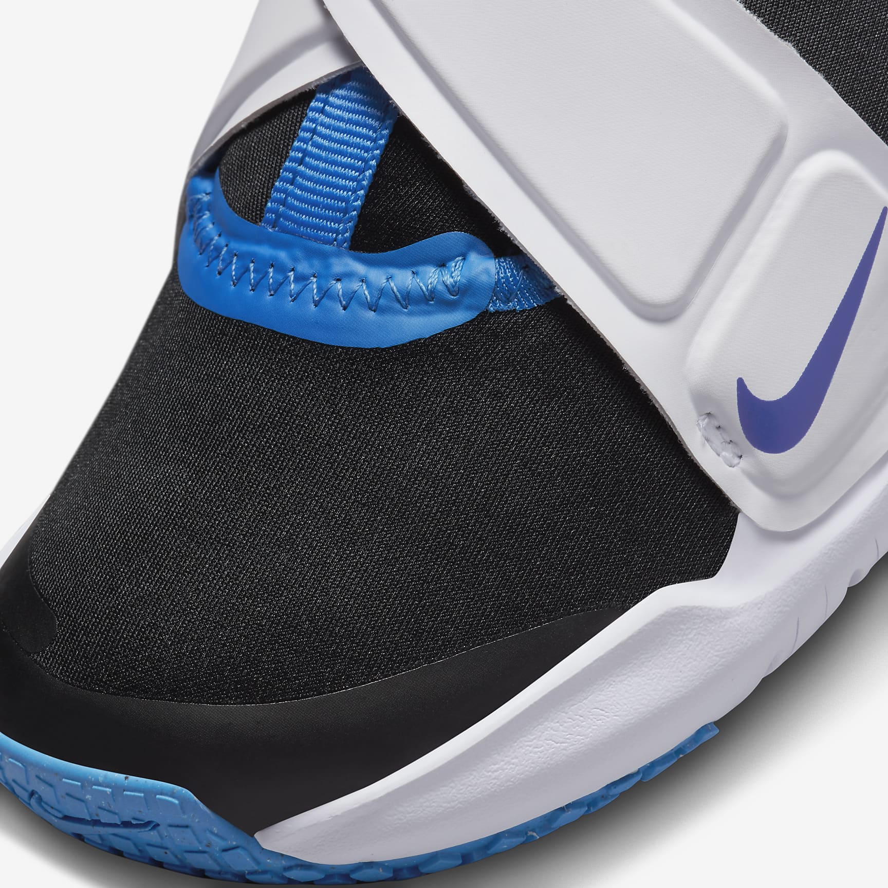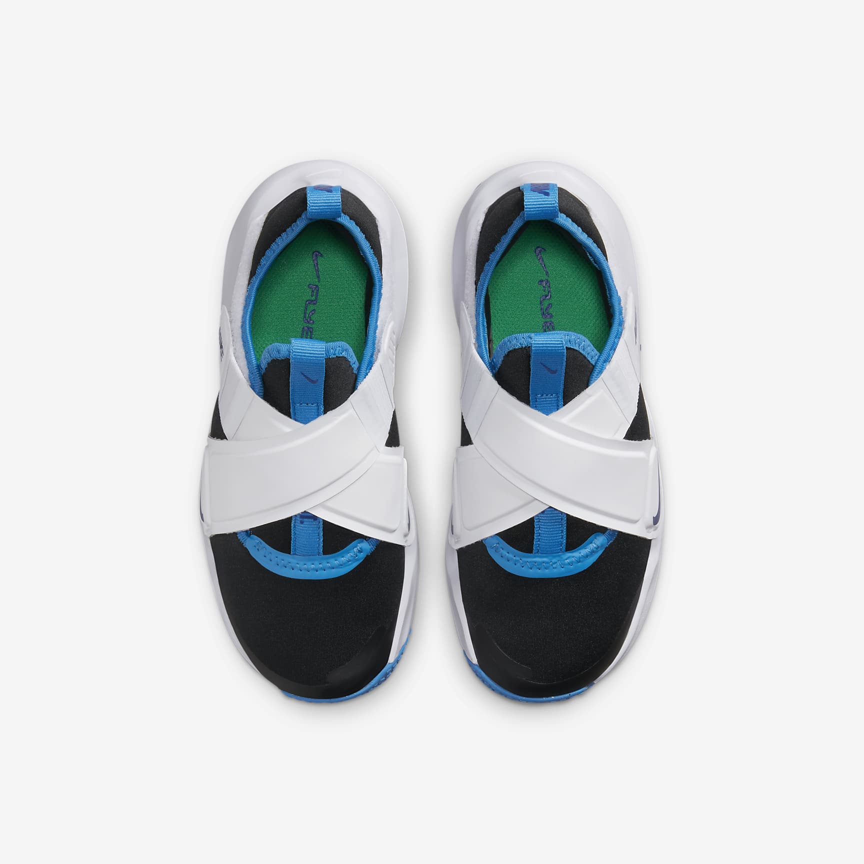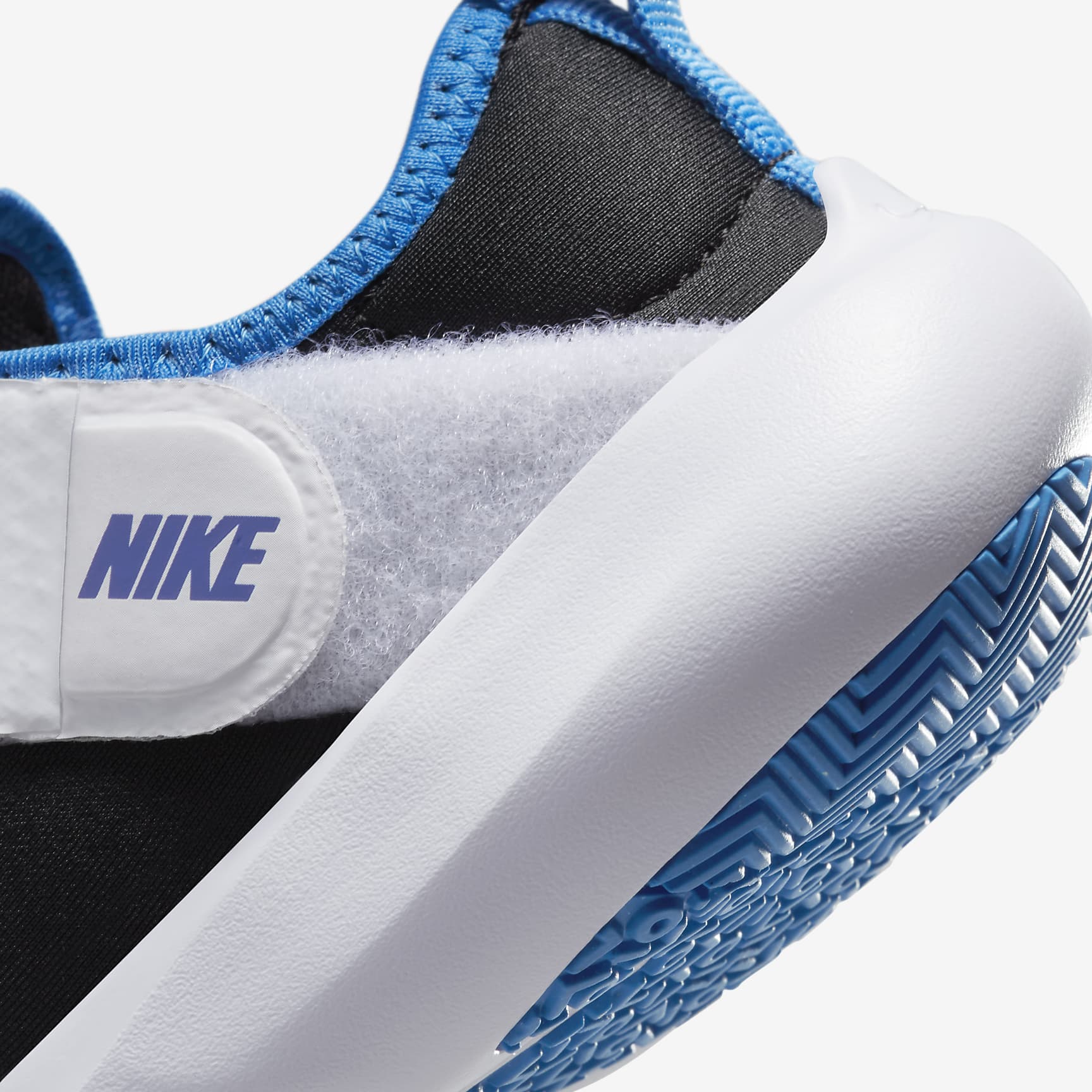 SUPER-EASY AND FLEXIBLE KICKS. The Nike Flex Advance is easy as 1, 2, 3. Nike FlyEase technology provides an extra-wide opening so little feet slip right in—seriously, it's a piece of cake. Criss-cross the straps (to help prep kiddos for real laces), and it's done! They are super-duper flexible, comfy and durable—perfect for little ones to walk, run and play. Quick and Easy Entry Nike FlyEase technology features an extra-wide opening on the tongue to make these quick and easy to get on and off. The tongue can also either be worn inside or outside the shoe comfortably. Strappy Support The 2 hook-and-loop straps criss-cross for a secure fit. Plus, it helps kids develop motor skills by mimicking tying real laces. Flexible Feels The rubber and foam sole is super flexible so every step feels natural. Traction patterns on the sole pay homage to past Nike kicks. More Benefits * Reinforced toe tip provides extra durability for kids who drag their toes. * Fabric is super stretchy so little feet feel comfy. * Extra padding on the heel gives extra comfort. * Pull tabs on heel and tongue help your little one get them on and off.