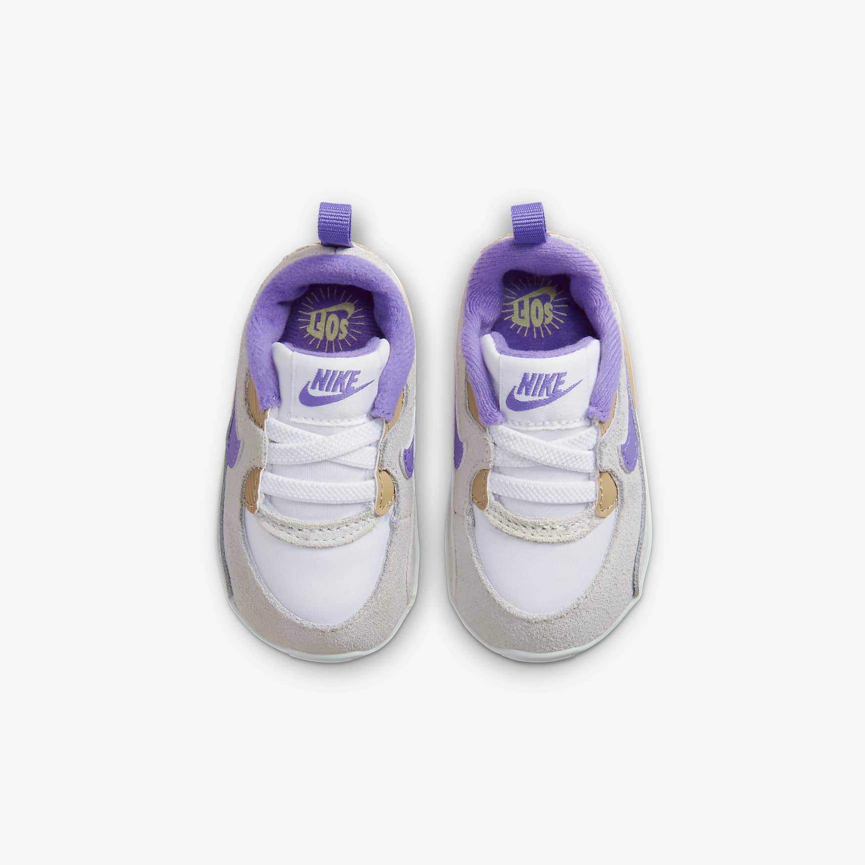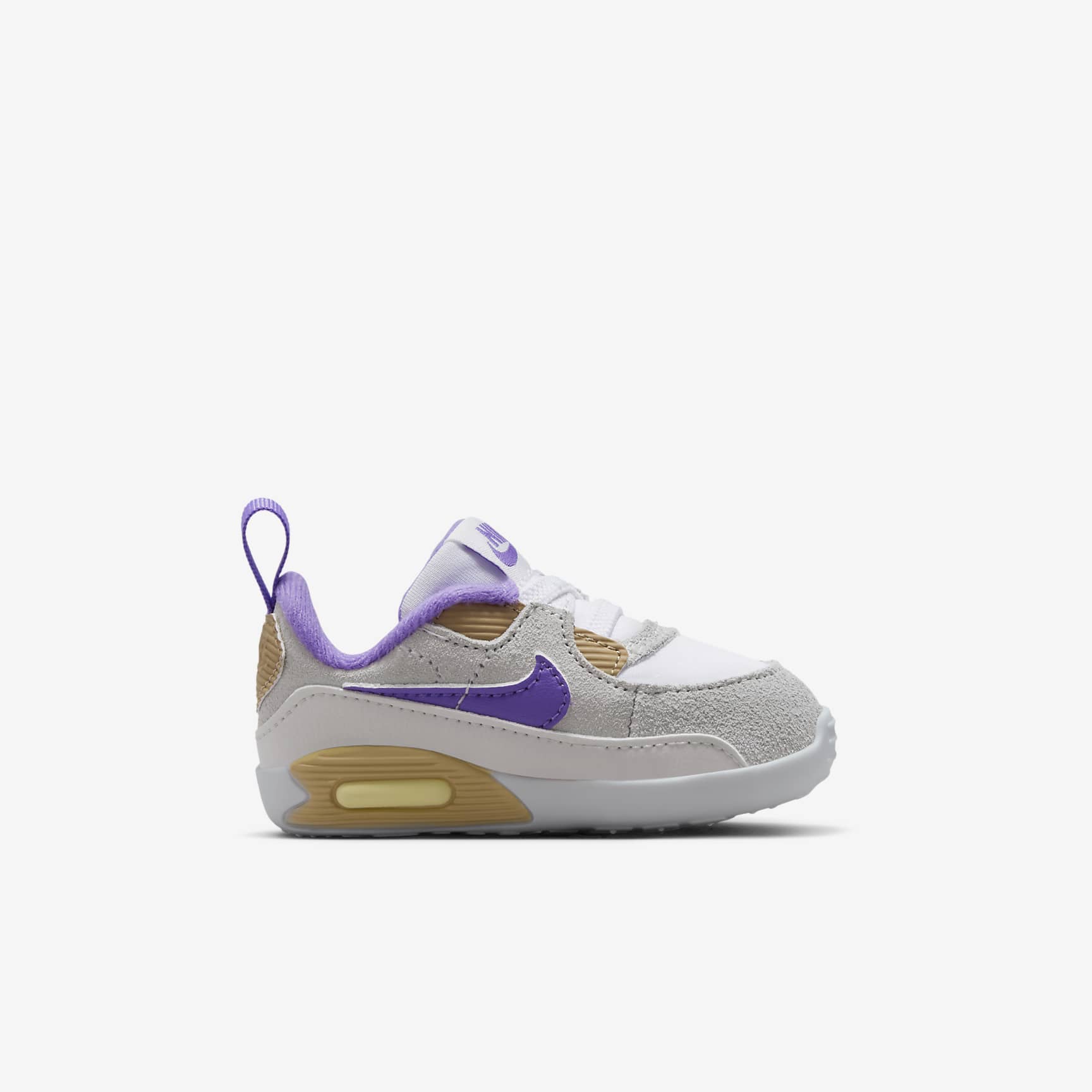 A '90S CLASSIC FOR LITTLE FEET. The Nike Max 90 Cot re-imagines the Air Max 90 for little feet. The durable design has soft foam and a plush lining for comfort. Elastic laces and a wide opening make it easy to get the shoe on and off. Durable Design Leather and synthetic leather are durable and easy to clean. Soft Comfort The plush lining and extra-soft foam cushioning combine for all-day comfort. Easy Entry Elastic laces with a wide opening make it easy to take the shoe on and off. Product Details * Heel pull tab