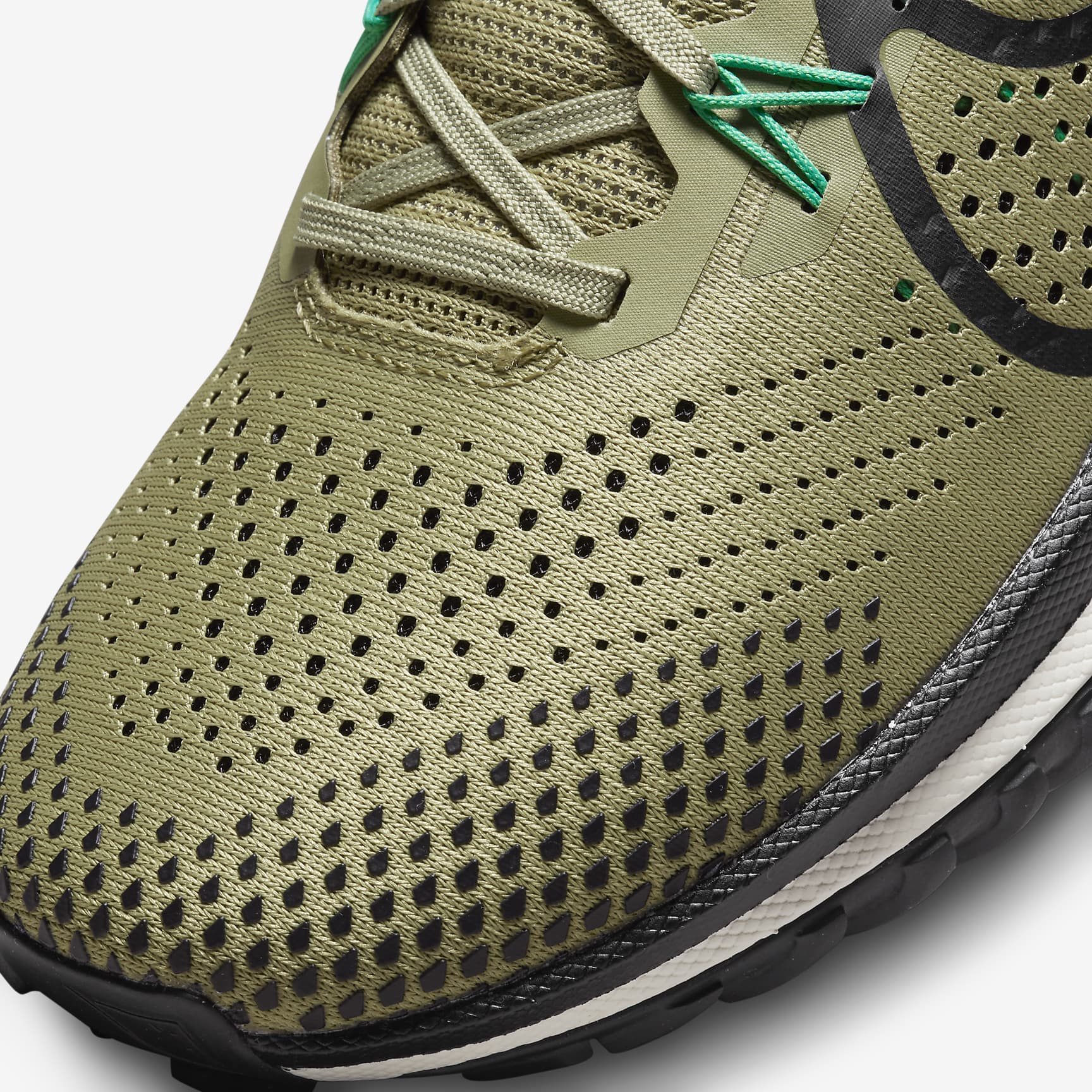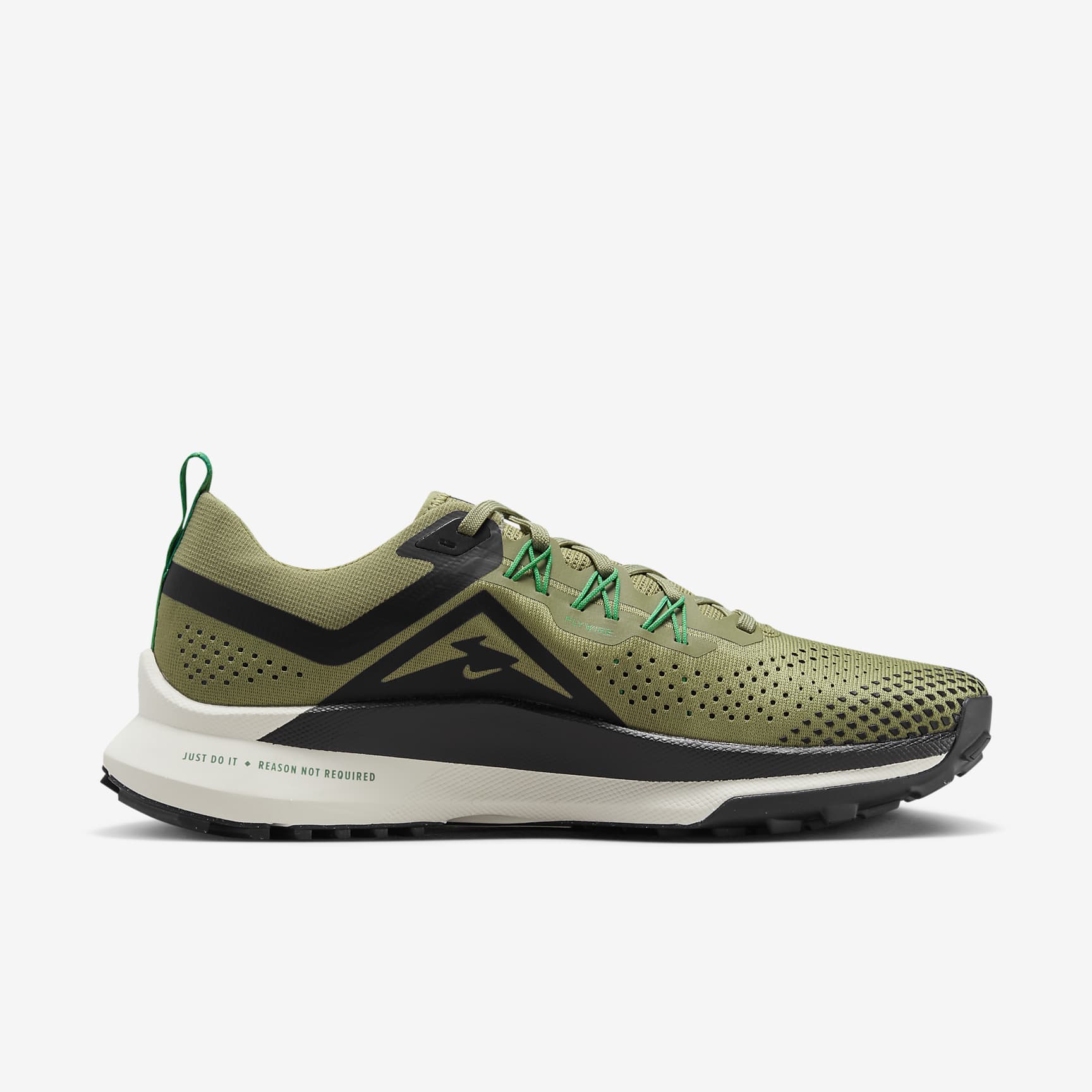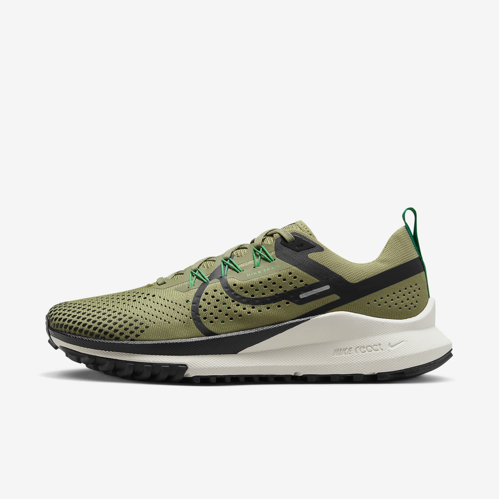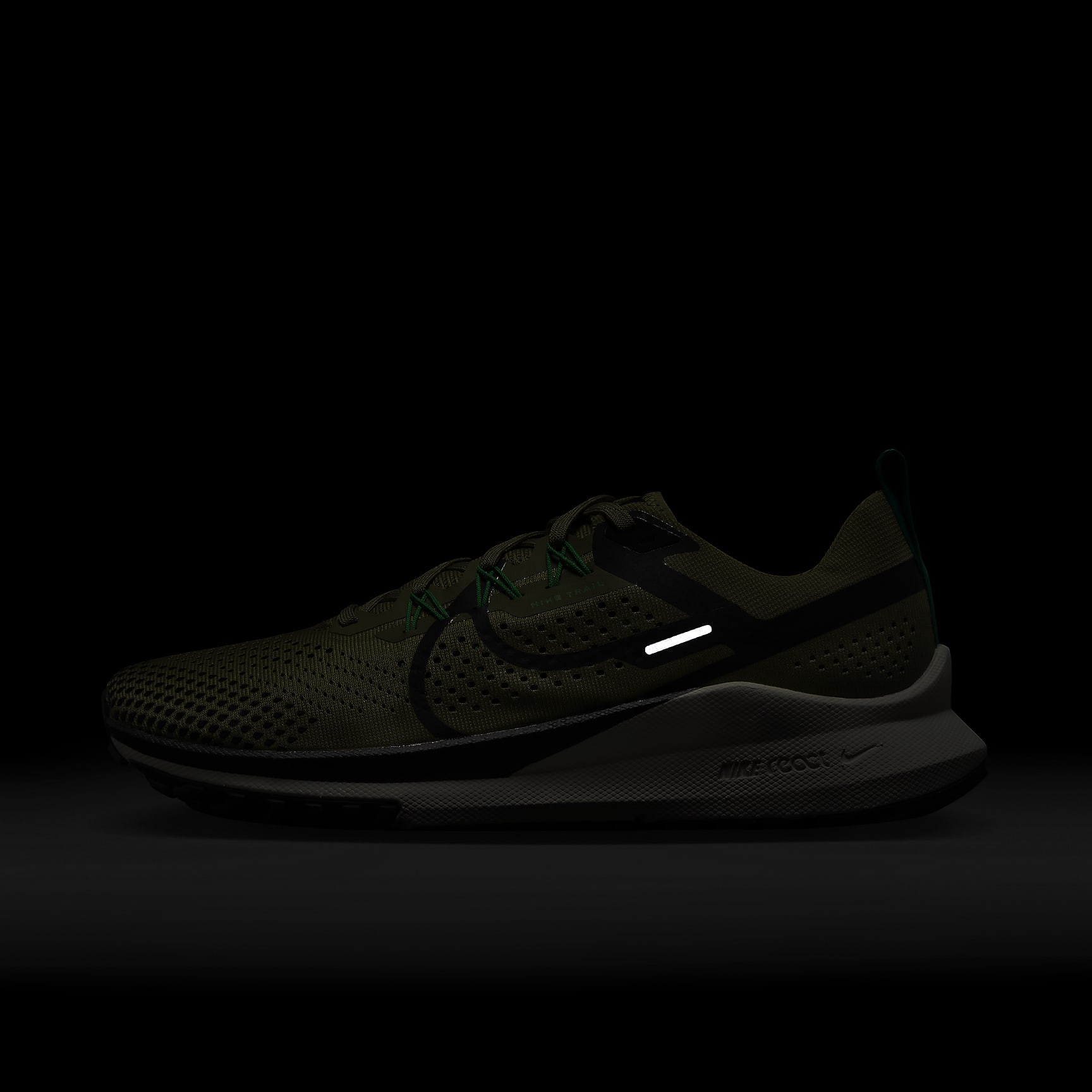 Running is your daily ritual, taking you from road to trail as you seek out new adventures and goals. Let the Nike React Pegasus Trail 4 take you there and back again with its supportive and springy feel. Underfoot traction keeps you going over rocky terrain, while still providing a smooth ride for the road. Midfoot support is controlled by the laces, letting you find the right fit and feel. Your trusted workhorse with wings is ready for an off-road journey. Time to fly. Light, Yet Tough We used data from runners like you to create and place engineered mesh throughout the upper—in areas where it's needed most—for a lightweight and breathable feel. Plus, extra skins placed across the toes add durability. Supportive Steps Flywire technology integrates with a midfoot band for total support that helps keep your feet in place. Energised Movement Nike React technology is a lightweight, durable foam that delivers a smooth, responsive ride. Grip While You Rip The rubber outsole has a generative traction pattern, created using data from runners like you. It gives your foot grip in key areas, helping you stay upright and stable over rocky trails, while also maintaining a smooth ride on the road. Built to Resist Abrasion Rubber from the outsole wraps up onto the forefoot to help resist abrasion and provide more durability. Product Details * Not intended for use as Personal Protective Equipment (PPE)