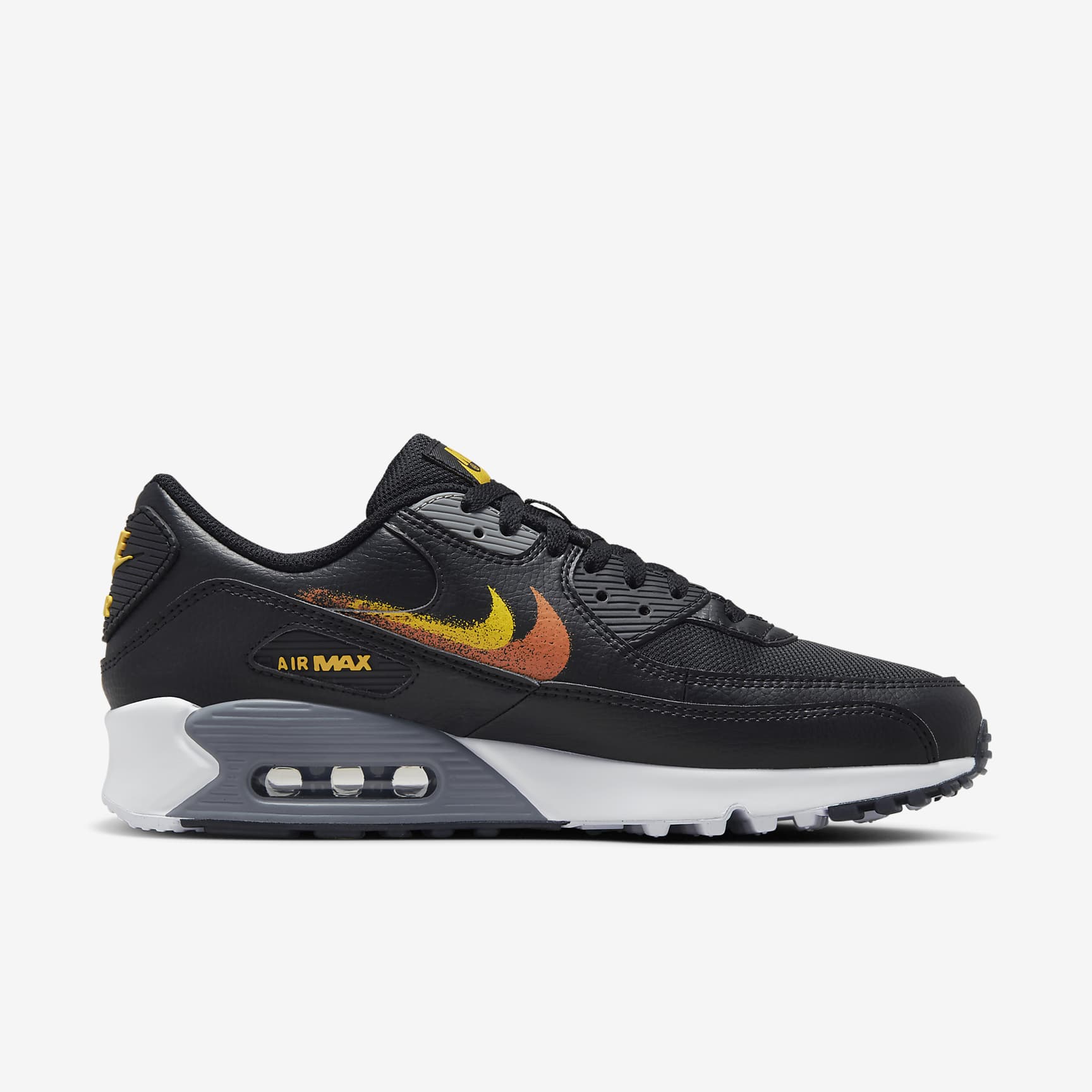 Lace up and feel the legacy. Produced at the intersection of art, music and culture, this champion running shoe helped define the '90s. Worn by presidents, revolutionised through collabs and celebrated with rare colourways, its striking visuals, Waffle outsole and exposed Air cushioning help keep it alive and well decades later. A classic neutral gives way to vibrant Swoosh design details for a modern look and a touch of fresh energy. Benefits * Stitched overlays and moulded plastic accents on heel and eyestays add durability, comfort and iconic '90s look you love. * Originally designed for performance running, visible Max Air cushioning puts history of comfort beneath your feet. * Padded, low-top collar looks sleek and feels great * Rubber Waffle outsole adds traction, durability and heritage style. Product Details * Foam in midsole * Variable-width lacing Air Max 90 The '90s were a turning point in culture—art, music, fashion and sneakers. The Air Max was at the forefront of the movement. With even more exposed Air cushioning and a bold new colour affectionately dubbed as "Infrared", its revolutionised design helped the first 90 take on a life of its own. No longer just a running shoe, it solidified Air Max as a streetwear cornerstone.