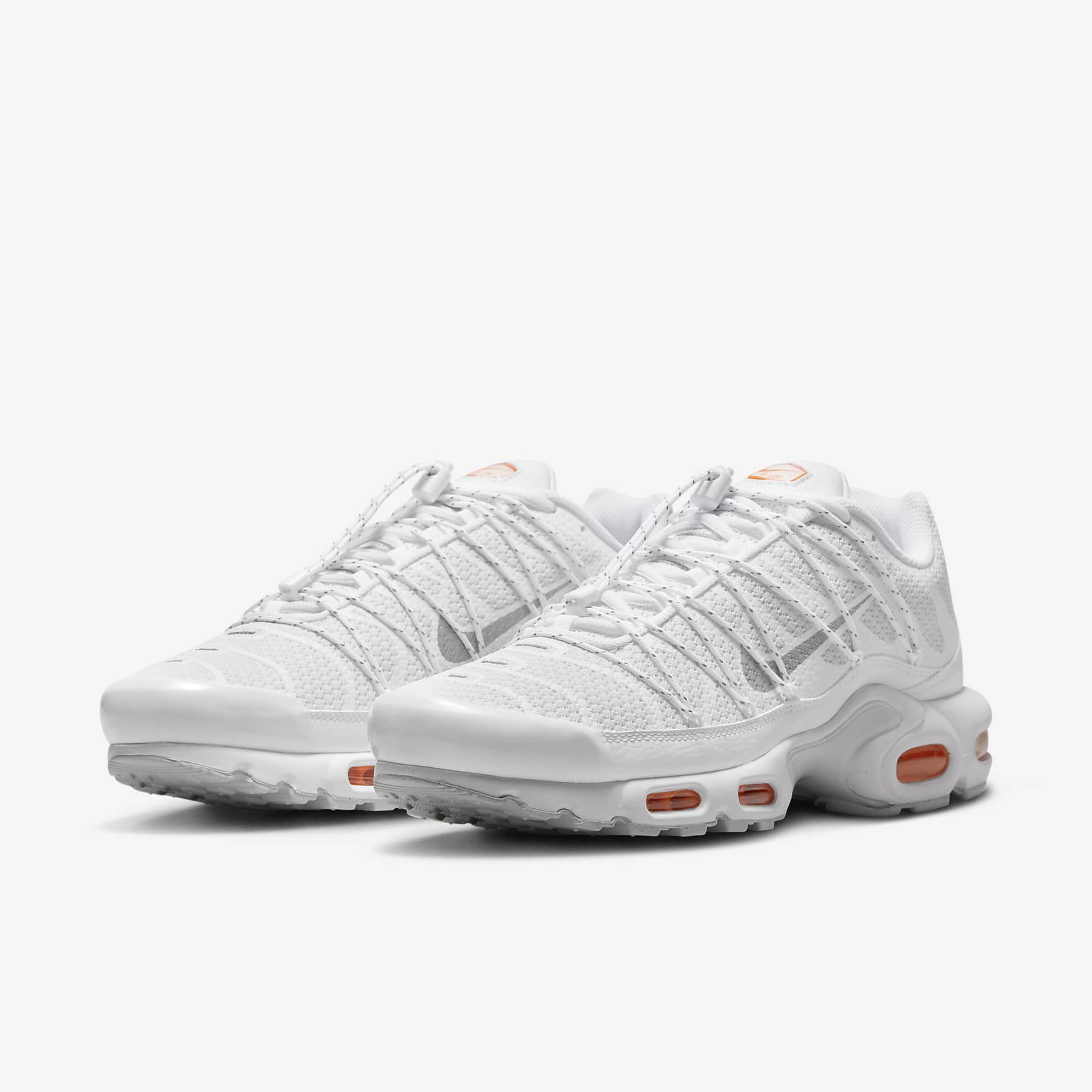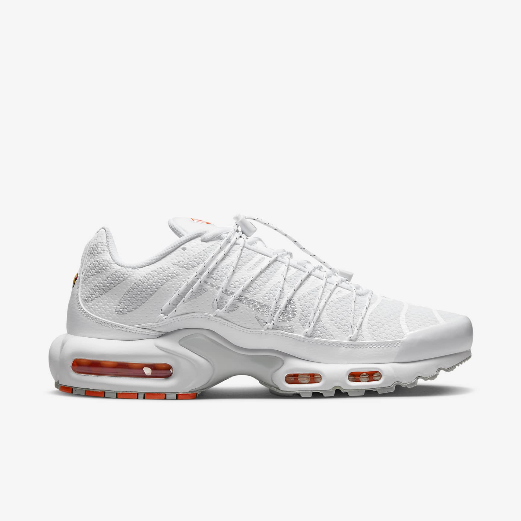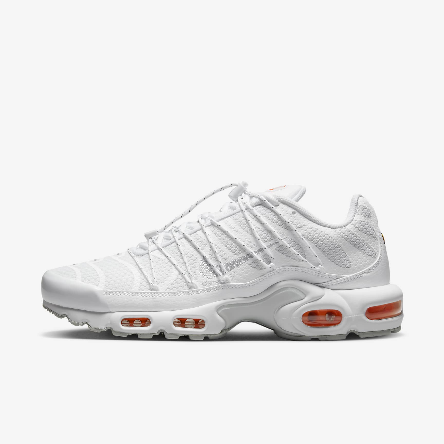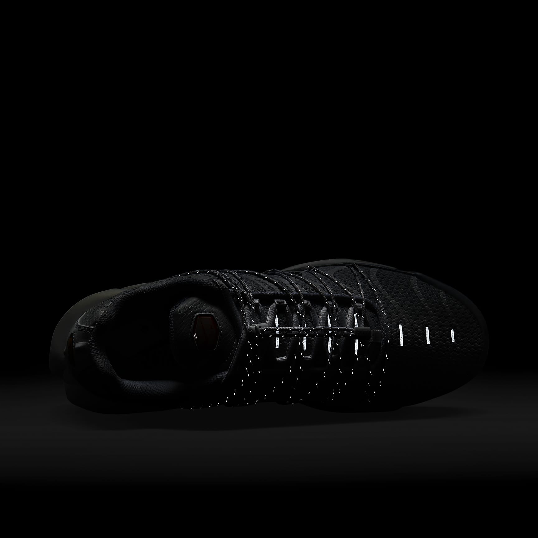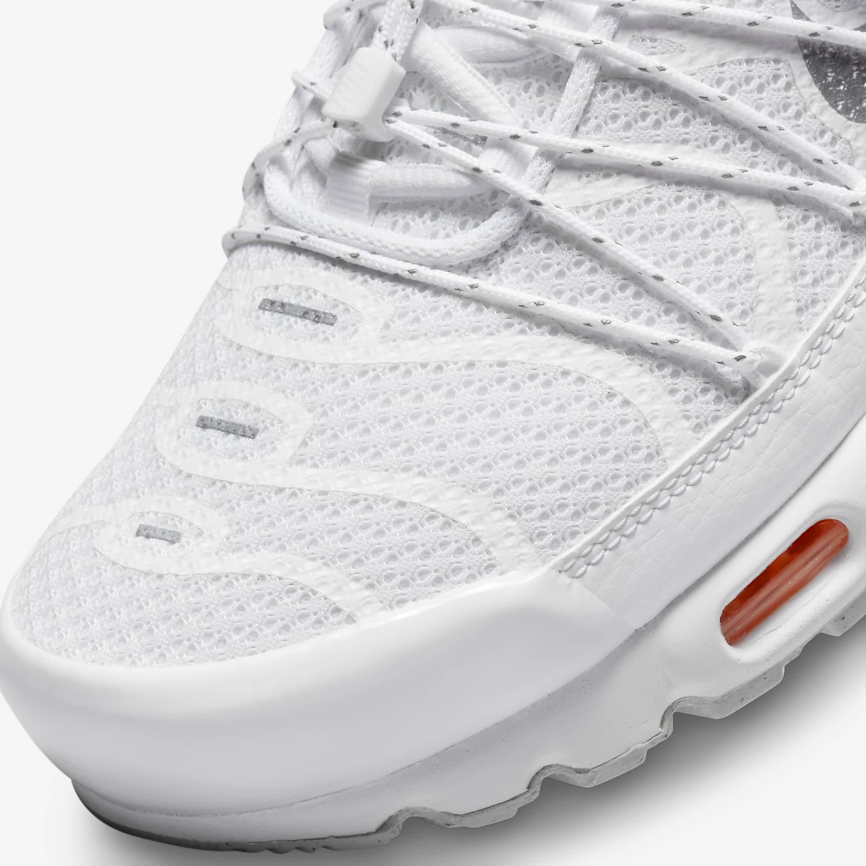 Inspired by the beach but made for city streets, the Nike Air Max Plus Utility gets a rugged upgrade perfect for your urban adventures. We added a sturdy suede mudguard to its breathable knit upper and tightened the look up with an extra set of toggle-closure laces for a secure and supportive fit. Plus, visible Max Air units in the forefoot and heel provide a Tuned Air experience that blends comfort with defiant style. Benefits * Extra lace set tightens with a toggle and feeds through loops anchored to the mudguard. * Originally designed for performance running, Max Air units provide lightweight cushioning that lasts. * Real and synthetic leather is paired with airy knits and mesh to provide breathability, durability and support. * Rubber outsole gives you durable traction. Product Details * Foam in midsole * Reflective design details * Not intended for use as Personal Protective Equipment (PPE)