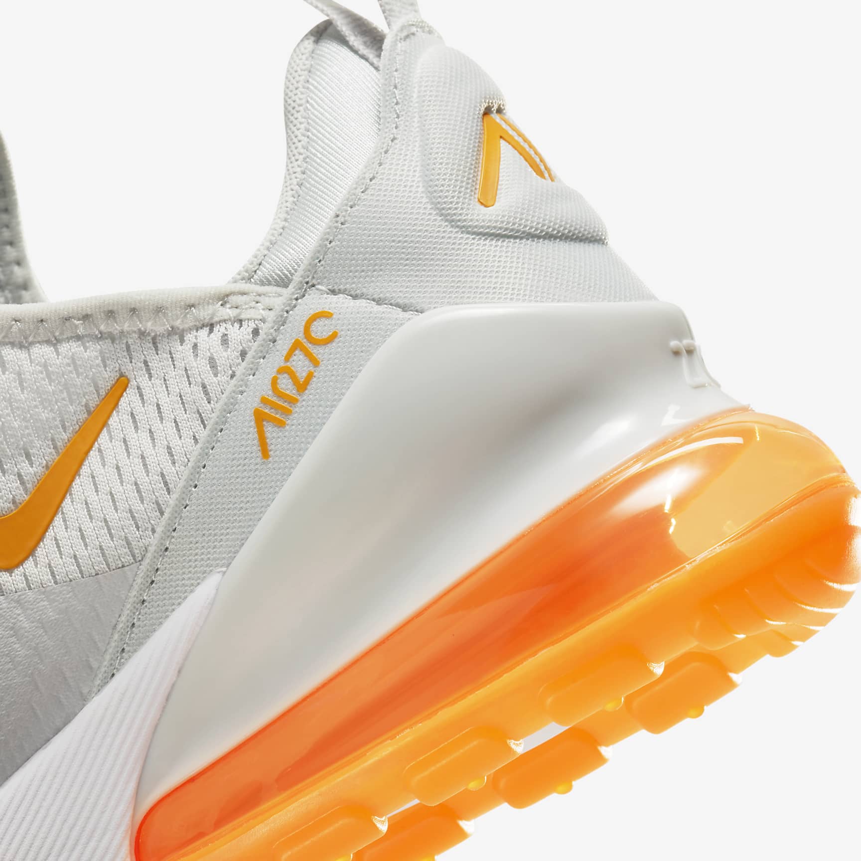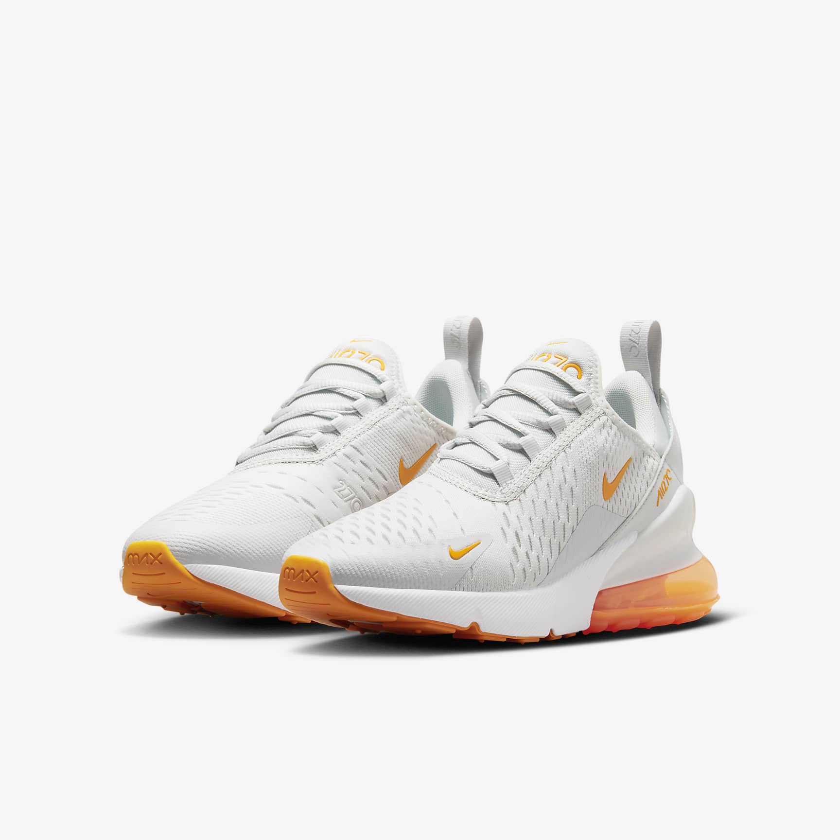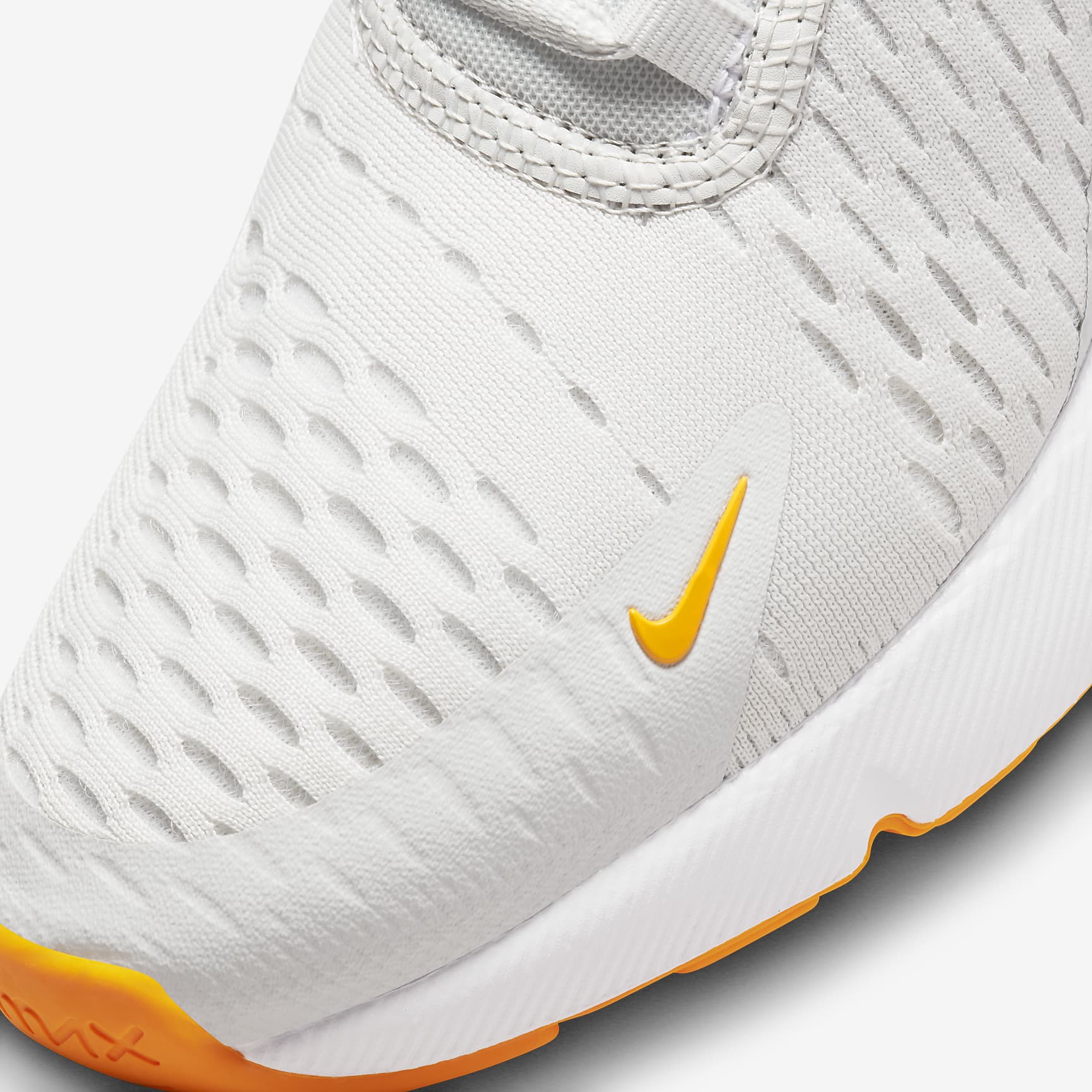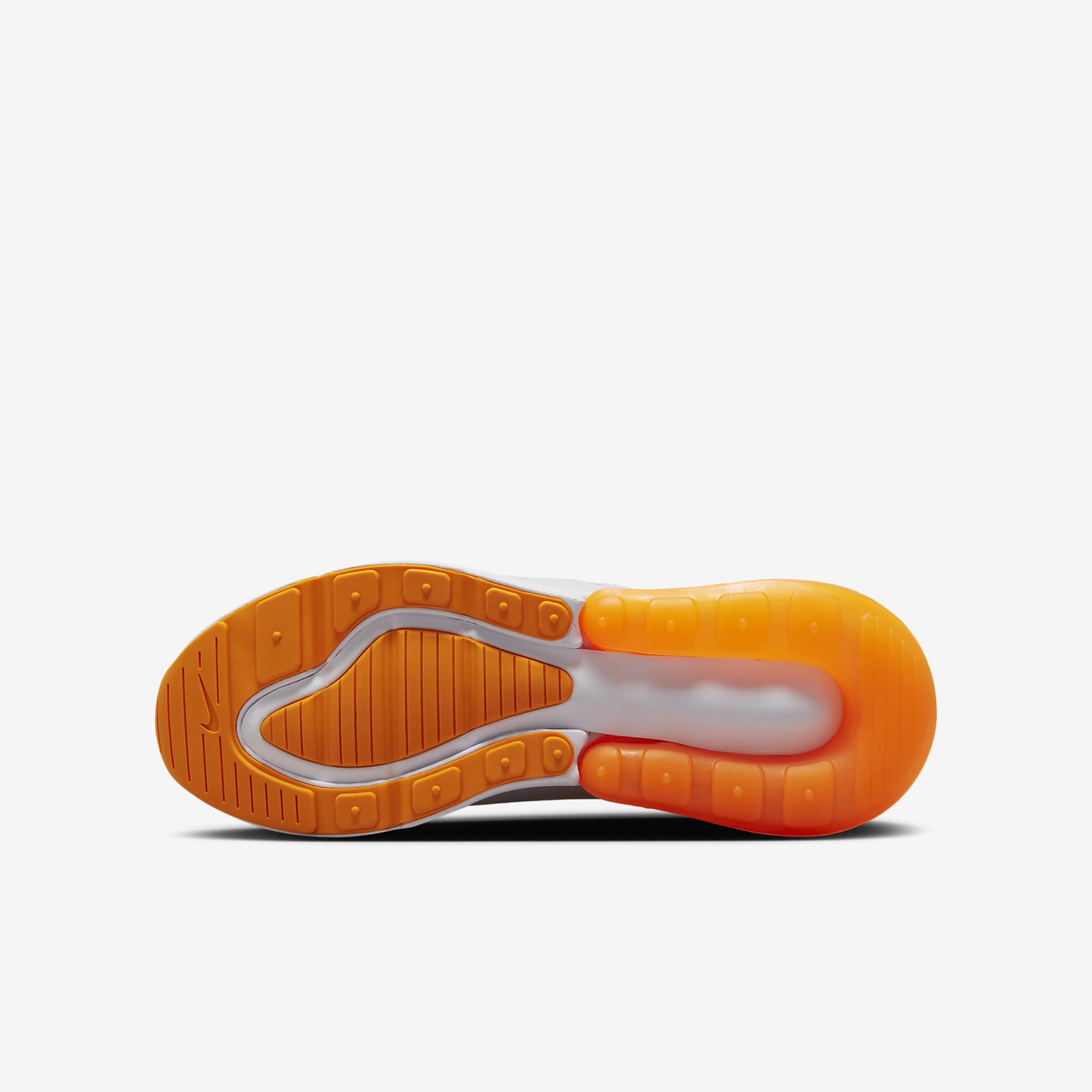 Big adventures call for big Air! Step into the Nike Air Max 270 and enjoy soft comfort perfect for all-day play. A large Air unit in the heel provides both plush cushioning and a dramatic style statement, while the sock-like fit of the stretchy inner sleeve helps your foot feel secure and comfortable as you step into your next quest. Benefits * Max Air 270 unit delivers comfort that lasts all day. * Woven fabric on upper provides lightweight fit and airy feel. * Sleek, running-inspired design roots you to everything Nike. * The stretchy inner sleeve has a sock-like fit that wraps your foot in soft comfort. * Rubber on the outsole adds traction and durability. Product Details * Heel pull tabs * Classic laces Nike Air Max Origins Revolutionary Air technology first made its way into Nike footwear in 1978. In 1987, the Air Max 1 debuted with visible Air technology in its heel, allowing fans more than just the feel of Air cushioning—suddenly they could see it. Since then, next-generation Air Max shoes have become a hit with athletes and collectors by offering striking colour combinations and reliable, lightweight cushioning.