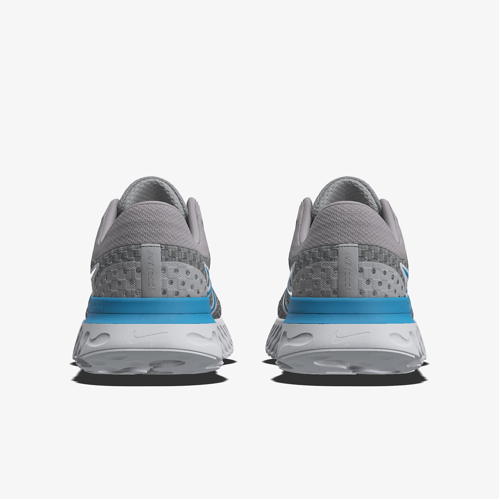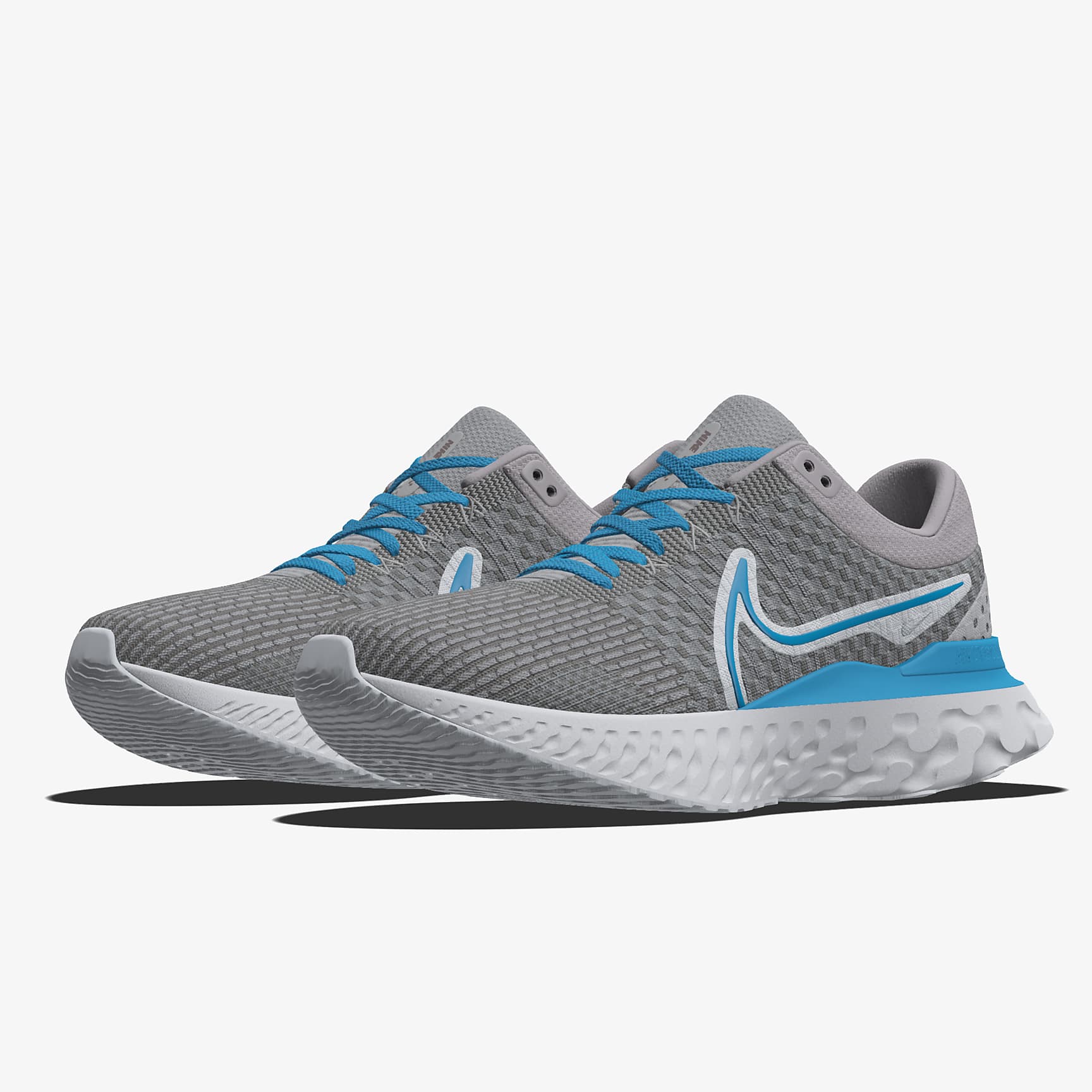 Stay on your feet in a design that has soft and supportive cushioning while catering to your individualistic tastes. You're the creator with the final say, painting and picking from an extensive palette of colours and exterior details that suit your distinctive style. Customise it to your liking and feel hopeful about endless possibilities when you hit the open road. Pick Your Colours, Graphics and Laces With 6 different Flyknit colours to select from, you can find your favourite shades to round off your workout attire. Choose from 5 new preset midsole graphics, depending on your preference. Choose different colours for the Swoosh logo and its base, then take your eyes towards the heel clip where you can pick between solid and chrome. Top it off by choosing between normal laces for a traditional look, or toggle laces so you can quickly slip them on and off. Select Your Sole Then for traction, select from a traditional or Storm-Tread outsole or go with Waffle lugs to meet your terrain tastes. Traditional outsole has 5 different colour options. Personalise Your Style Add custom details with a personal message, a time goal or a reflective-design racing stripe on the webbing of the heel tab. You can include up to 6 characters on each foot, including letters A–Z and numbers. The text comes in an array of colour choices. Smooth Ride Nike React technology is a lightweight, durable foam that delivers a smooth, responsive ride. Shaped like a rocker, the foam provides support for the 3 phases of a runner's stride. It offers flexibility when your foot rises off the ground, a smooth ride when your foot is moving forwards and cushioning at ground contact. Comfort and Security Fully adjustable Flyknit tongue works with the Flywire to create that just-right sensation of comfort and security. Cushioned Feel, Higher Stacks High-rise cushioning is placed directly under your foot so you're closer to the foam for a truly responsive experience. More Benefits * Increased rubber on the outsole helps deliver traction and durability. * Knit collar is made from super-soft foam textile. * A wide shape provides a more stable ride, helping release energy with every step. Product Details * Our Members are one of a kind, and your shoes are too. Each pair is proudly made one at a time, by hand. Good things are worth the wait. * Your initials? A nickname? Or something else that's so you. Get personal with a customisable inscription on your shoes. Plus, your name is on the box. * With our 3D builder, watch your creation come alive as you experiment with all kinds of design choices.
