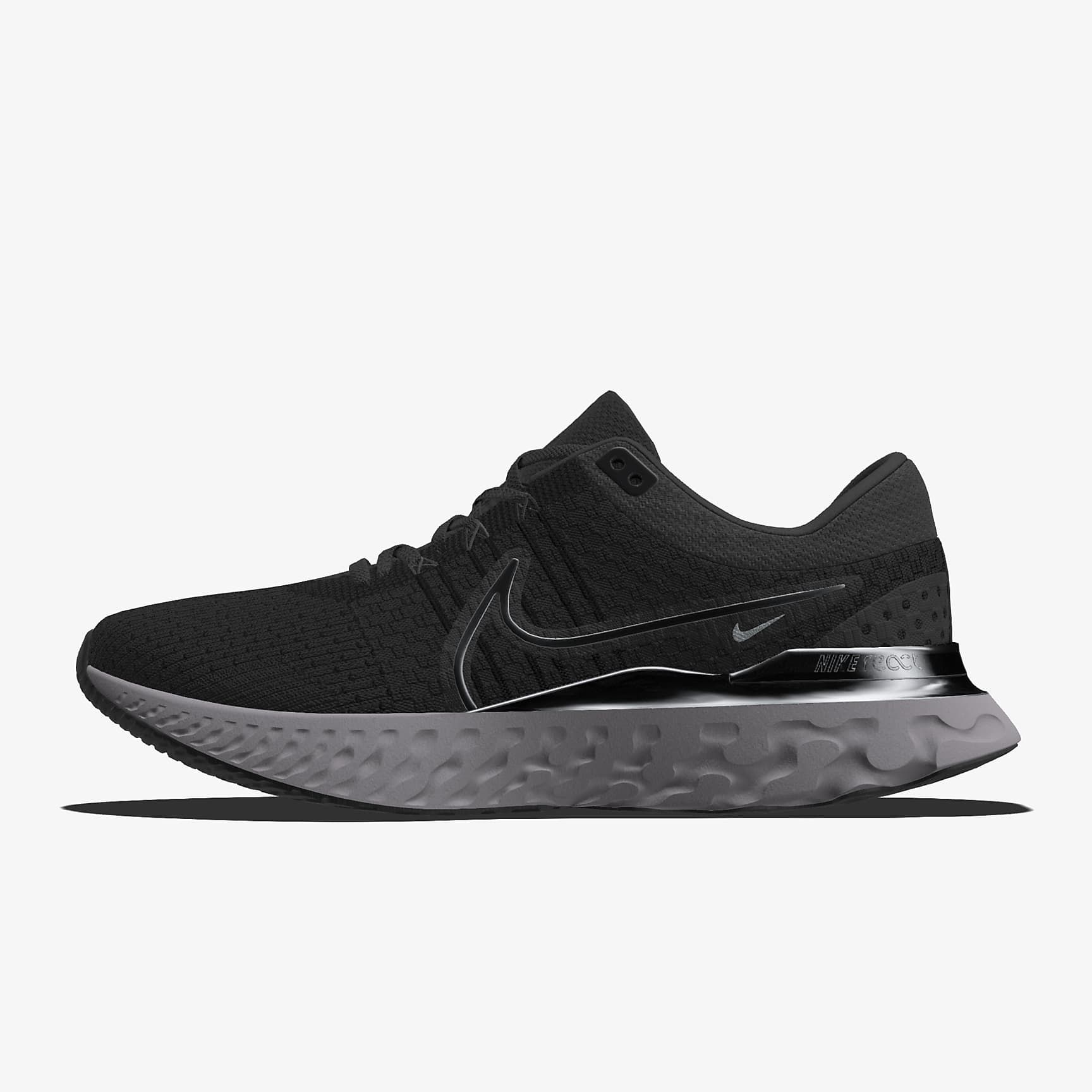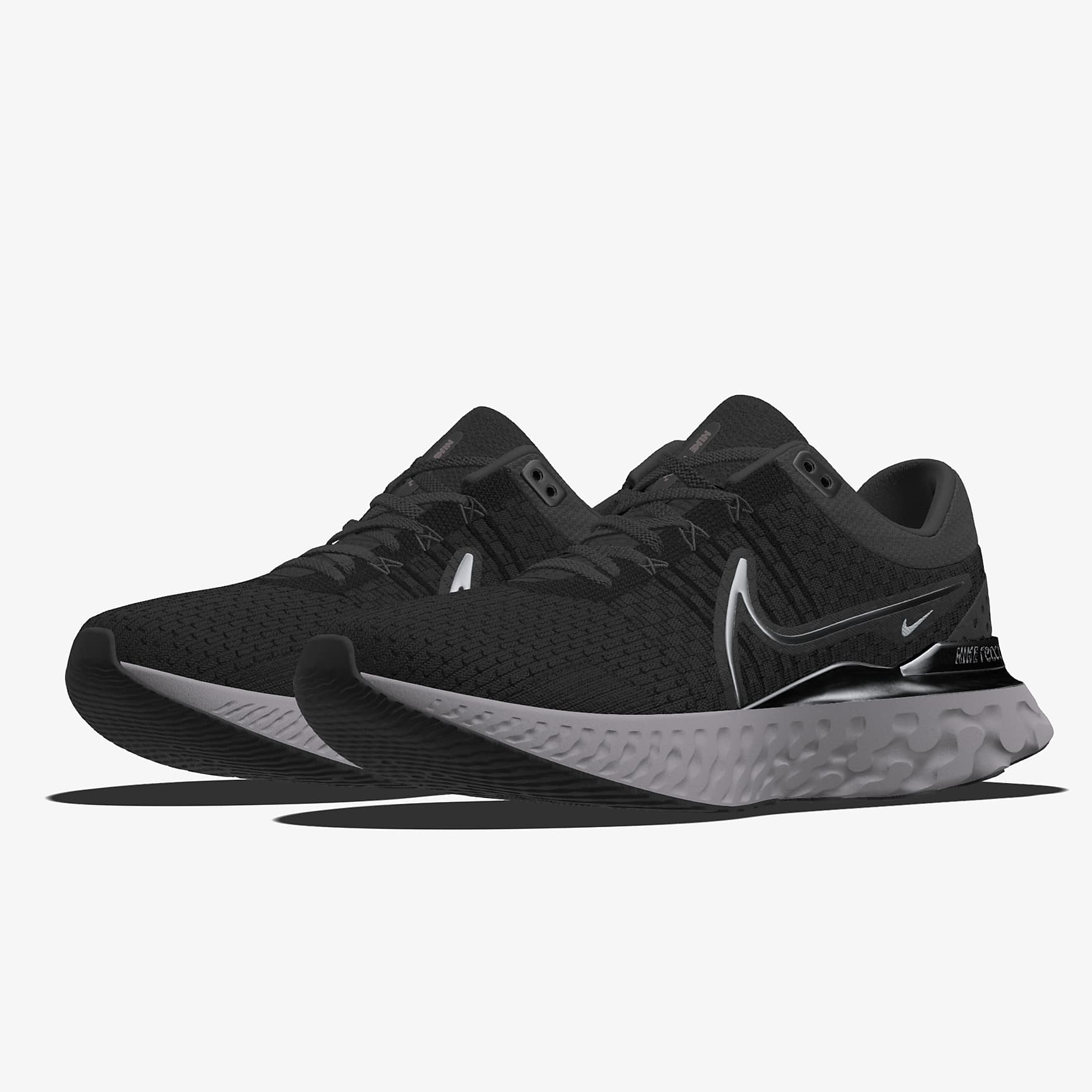 Stay on your feet in a design that has soft and supportive cushioning while catering to your individualistic tastes. You're the creator with the final say, painting and picking from an extensive palette of colours and exterior details that suit your distinctive style. Customise it to your liking and feel hopeful about endless possibilities when you hit the open road. Pick Your Colours, Graphics and Laces With 6 different Flyknit colours to select from, you can find your favourite shades to round off your workout attire. Choose from 5 new preset midsole graphics, depending on your preference. Choose different colours for the Swoosh logo and its base, then take your eyes towards the heel clip where you can pick between solid and chrome. Top it off by choosing between normal laces for a traditional look, or toggle laces so you can quickly slip them on and off. Select Your Sole Then for traction, select from a traditional or Storm-Tread outsole or go with Waffle lugs to meet your terrain tastes. Traditional outsole has 5 different colour options. Personalise Your Style Add custom details with a personal message, a time goal or a reflective-design racing stripe on the webbing of the heel tab. You can include up to 6 characters on each foot, including letters A–Z and numbers. The text comes in an array of colour choices. Smooth Ride Nike React technology is a lightweight, durable foam that delivers a smooth, responsive ride. Shaped like a rocker, the foam provides support for the 3 phases of a runner's stride. It offers flexibility when your foot rises off the ground, a smooth ride when your foot is moving forwards and cushioning at ground contact. Comfort and Security Fully adjustable Flyknit tongue works with the Flywire to create that just-right sensation of comfort and security. Cushioned Feel, Higher Stacks High-rise cushioning is placed directly under your foot so you're closer to the foam for a truly responsive experience. More Benefits * Increased rubber on the outsole helps deliver traction and durability. * Knit collar is made from super-soft foam textile. * A wide shape provides a more stable ride, helping release energy with every step. Product Details * Our Members are one of a kind, and your shoes are too. Each pair is proudly made one at a time, by hand. Good things are worth the wait. * Your initials? A nickname? Or something else that's so you. Get personal with a customisable inscription on your shoes. Plus, your name is on the box. * With our 3D builder, watch your creation come alive as you experiment with all kinds of design choices.
