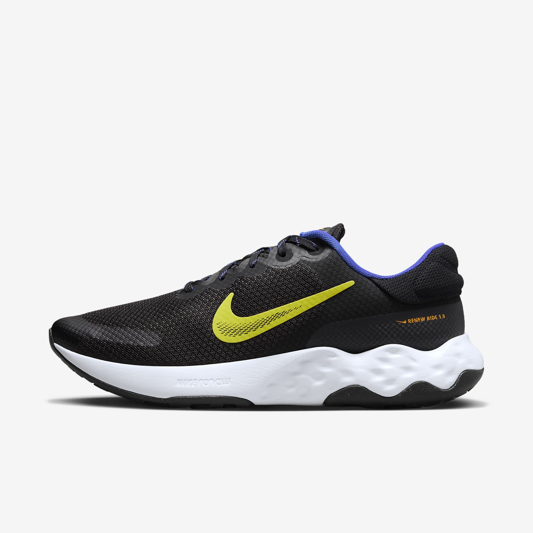 SOFT, SMOOTH AND COMFORTABLE. When everyday runs are on the menu, the Nike Renew Ride 3 comes through with a smooth and soft ride. It's got a secure fit and a cosy feel, geared for those looking to find their running potential. The upper is clean and fresh, with touch points throughout for easy on and off. It's so comfortable, you'll want to keep wearing it after your run. Comfort Fit A cushioned collar delivers a soft feel and look. The collar and tongue are designed with intuitive touch points for easy on and off. Combined with the breathable feel of the upper, the shoe delivers a secure fit like a hug for your foot. Soft Ride Our Renew foam is softer than previous versions, helping provide impact absorption as your foot hits the ground. The Renew foam is wrapped around the heel, creating a secure clip for your foot. We added more foam for a smoother transition from heel to toe, resulting in an extra spring to your step. More Benefits * Mesh on the upper has a breathable and secure feel. * Skin overlays and a foam pod in the toe help resist abrasion.