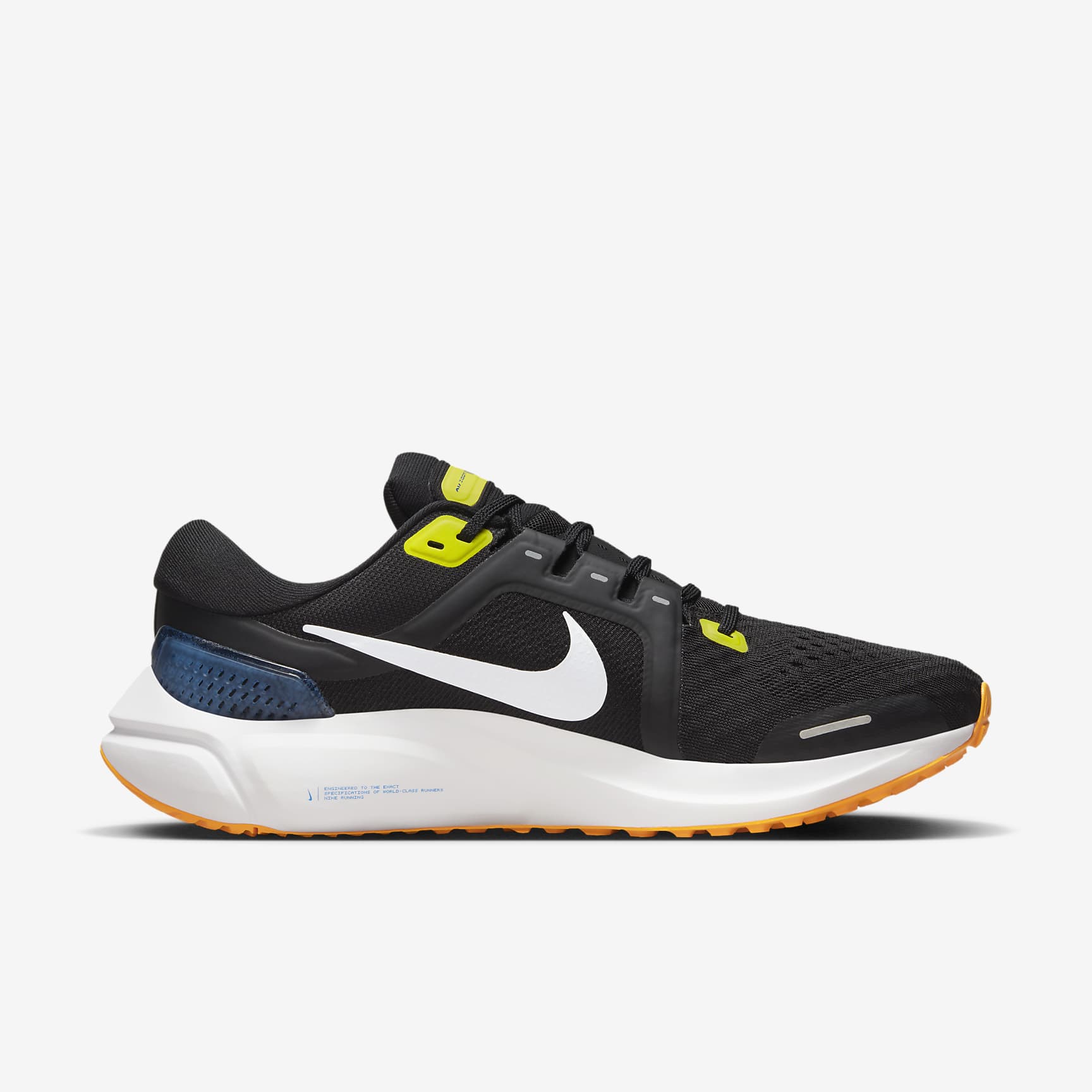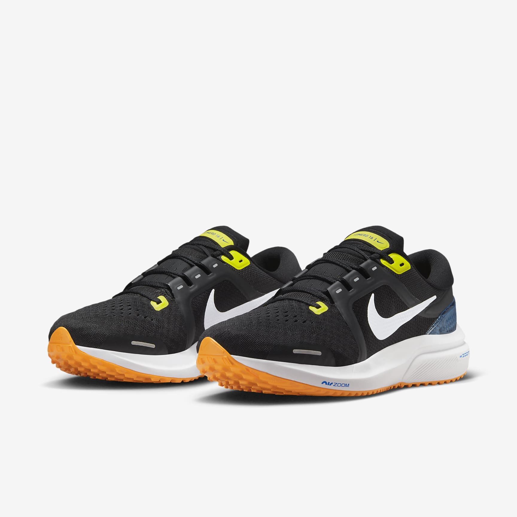 SUPPORTIVE WITH SNAPPY CUSHIONING. The Vomero 16 adds responsive ZoomX foam cushioning, bringing an energetic pop to your stride that's perfect for high mileage on the road. It's super-lightweight, with plenty of stretch and ventilation through the upper. Looking for the right amount of support? We've got you covered with an adjustable midfoot band and a stable clip at the heel. A Secure Stride We added extra support along the sides via a band at the midfoot. It works with your laces, helping you adjust how snug and secure your foot feels. There's also a clip at the heel, helping with stability as you run across uneven surfaces. Cool For the Distance We tested real runners to learn where feet need the most cooling. Using that data, we put mesh in key spots (especially around the toes) to give you stretch and ventilation. Snappy Steps Your foot sits on Nike ZoomX, our lightest and highest energy returning foam. It gives you a smooth ride from foot strike through your transition. We combined it with Zoom Air cushioning under the forefoot for a snappy, responsive feel as you push off. More Benefits * High-abrasion rubber at the outsole with lugs gives you durable traction. * The tongue is even more plush than previous versions. Product Details * Weight: 309g approx. (Men's size 9) * Offset: 10mm (Forefoot: 19.5mm, Heel: 29.5mm) * Not intended for use as Personal Protective Equipment (PPE)