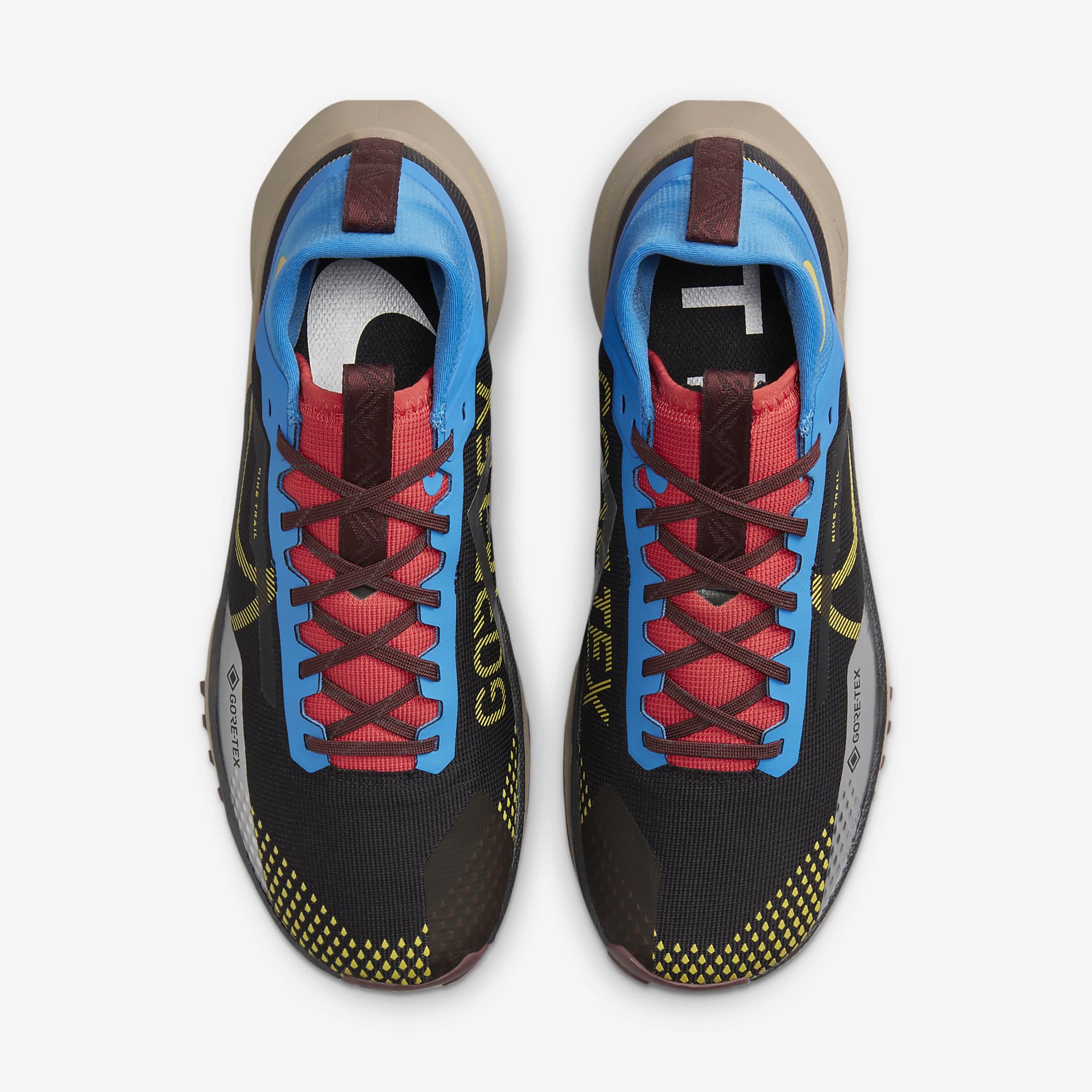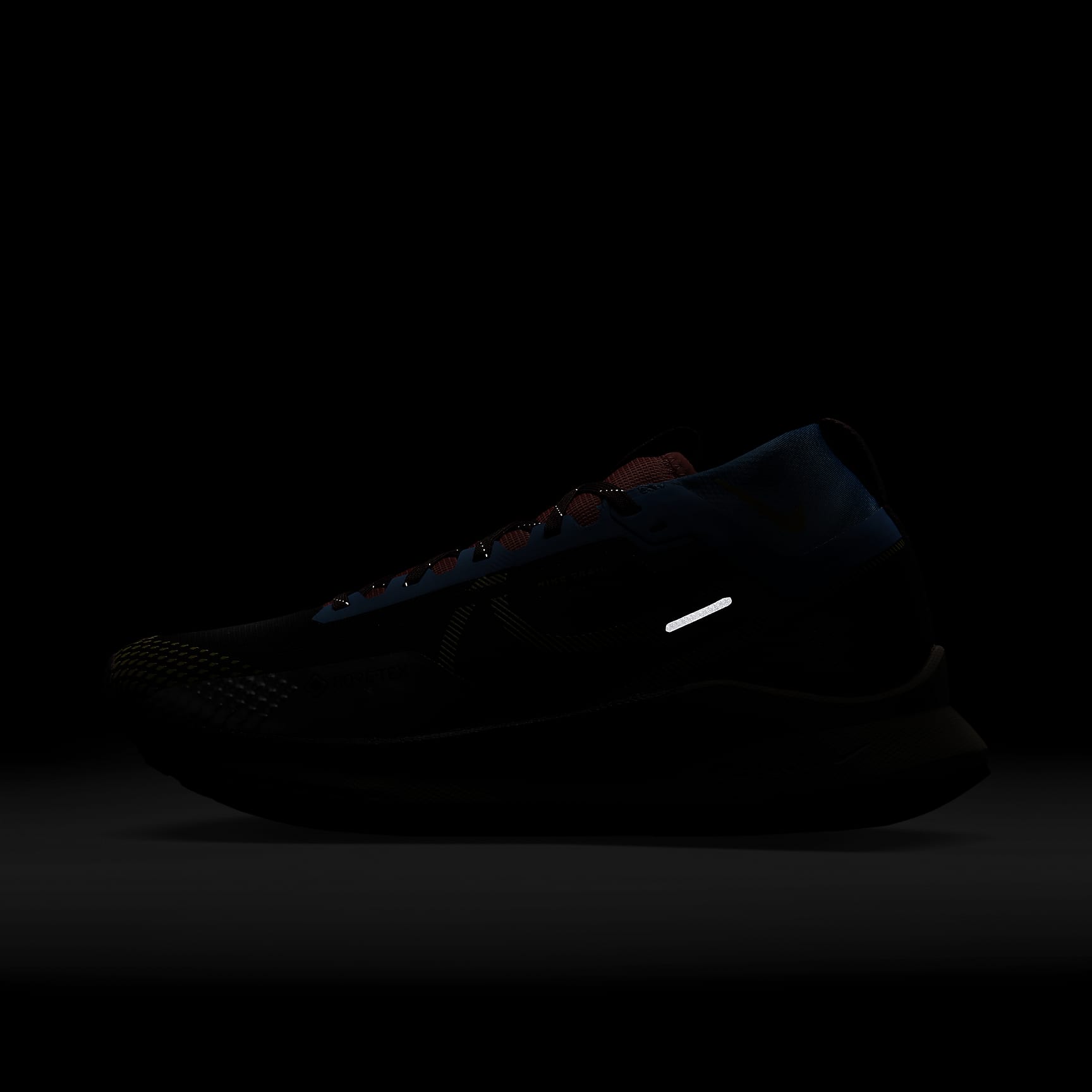The Nike Pegasus Trail 4 GORE-TEX is your running companion for those days when the weather turns. Its waterproof GORE-TEX layer helps keep your feet dry, and less rubber in the outsole creates a smooth transition from road to trail without breaking stride. Keep the Rain Away GORE-TEX along the upper helps your feet stay dry from precipitation without sacrificing that comfortable feel of the Peg Trail. Its flexible, lightweight design helps keep out the rain when running between the wet roads and trails. When the Rubber Hits the Trail Less rubber along the outsole creates a smooth transition from road to trail while preserving the full-length React midsole. The rubber outsole wraps around the front of the shoe to provide extra durability. A generative traction pattern combined with rubber in the forefoot provides extra grip for technical trails while maintaining a smooth ride for the road. React in the Weather Nike React technology is a lightweight, durable foam that delivers a smooth, responsive ride. Its full-length design provides stability as you brave rocky terrain. Keeping Out the Little Things Updated materials around the ankle help ensure water and trail debris don't get into the shoe. Product Details * The inspirational message by the heel will vary between "JUST DO IT" and "JUST RUN IT", depending on the shoe * Heel and tongue pull tabs * Not intended for use as Personal Protective Equipment (PPE)