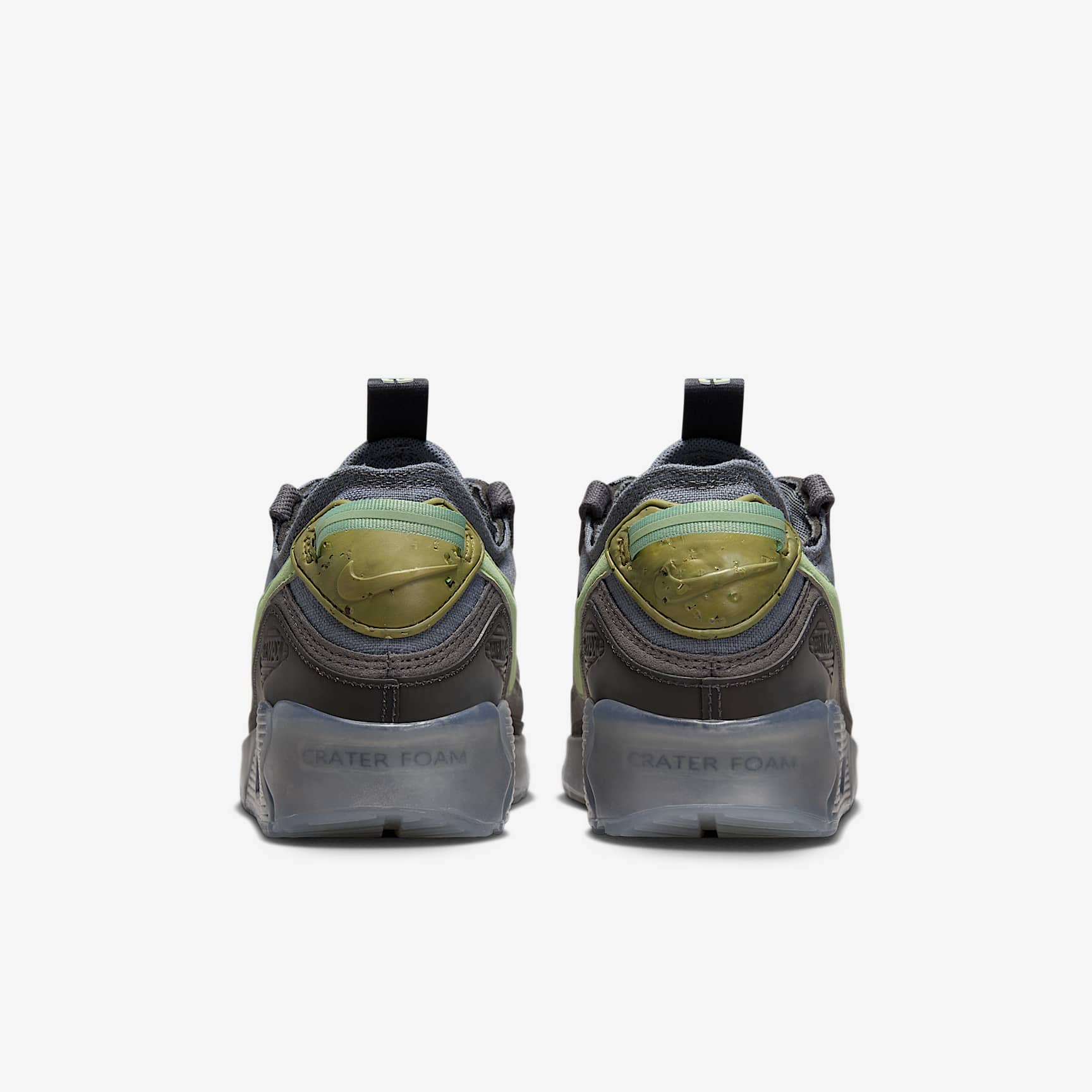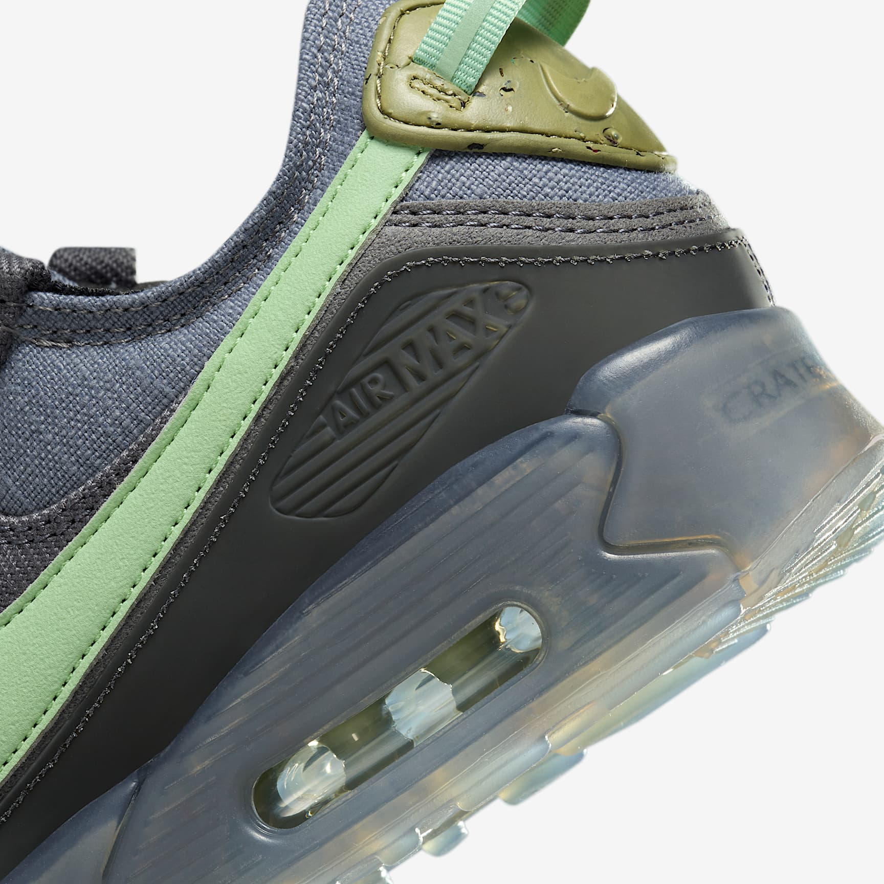 Consider for a moment that pause when you see something new. Something exciting. That's the Nike Air Max Terrascape 90. A flashy new outsole with translucent rubber is combined with a Crater Foam midsole to bring you the spa treatment. Go ahead, introduce yourself. Designed to Handle the Grind The new outsole design features translucent rubber and wraps onto the mudguard for added durability. Breathable mesh on the upper keeps it light and airy, while overlays on the sides add toughness that can handle streets or trails. Classic Meets Modern To put it bluntly, it's a classic made for today. Featuring the new Terrascape logo on the tongue, sleek triple-stitching around the collar and durable Crater Foam, it's tried and tested—perfected. Perfectly 90 Nothing as fly, nothing as comfortable, nothing as proven. Staying true to its original roots, it features the iconic Waffle outsole, stitched overlays and plastic accents on the eyestays. More Benefits * Perfecting the comfort, Crater Foam adds stability and a unique aesthetic to every step. * Originally designed for performance running, the Max Air unit in the heel adds unbelievable cushioning. * Low-top, padded collar looks sleek and feels great. * Modern Swoosh extends around the back to form a pull tab for easy on and off. Product Details * Pull tab on the heel and tongue * Foam midsole Nike Air Max Origins Revolutionary Air technology first made its way into Nike footwear in 1978. In 1987, the Air Max 1 debuted with visible Air technology in its heel, allowing fans more than just the feel of Air cushioning—suddenly they could see it. Since then, next-generation Air Max shoes have become a hit with athletes and collectors by offering striking colour combinations and reliable, lightweight cushioning.