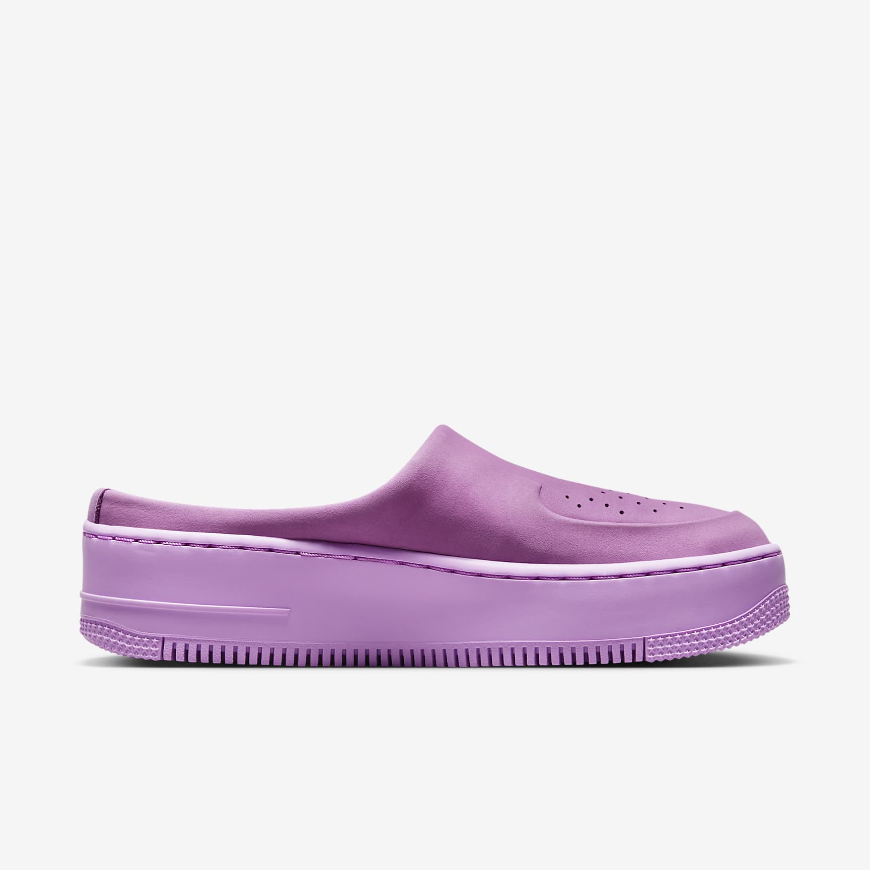 THE 1, REIMAGINED The Nike Air Force 1 Lover XX combines a simple, slip-on look with a stacked midsole, plush interior and iridescent-backed perforations. Benefits * Velour-lined mule is plush and comfortable. * Leather on the upper is sleek and refined. * Enlarged teeth on the outsole are a modern take on the traditional AF-1 design.