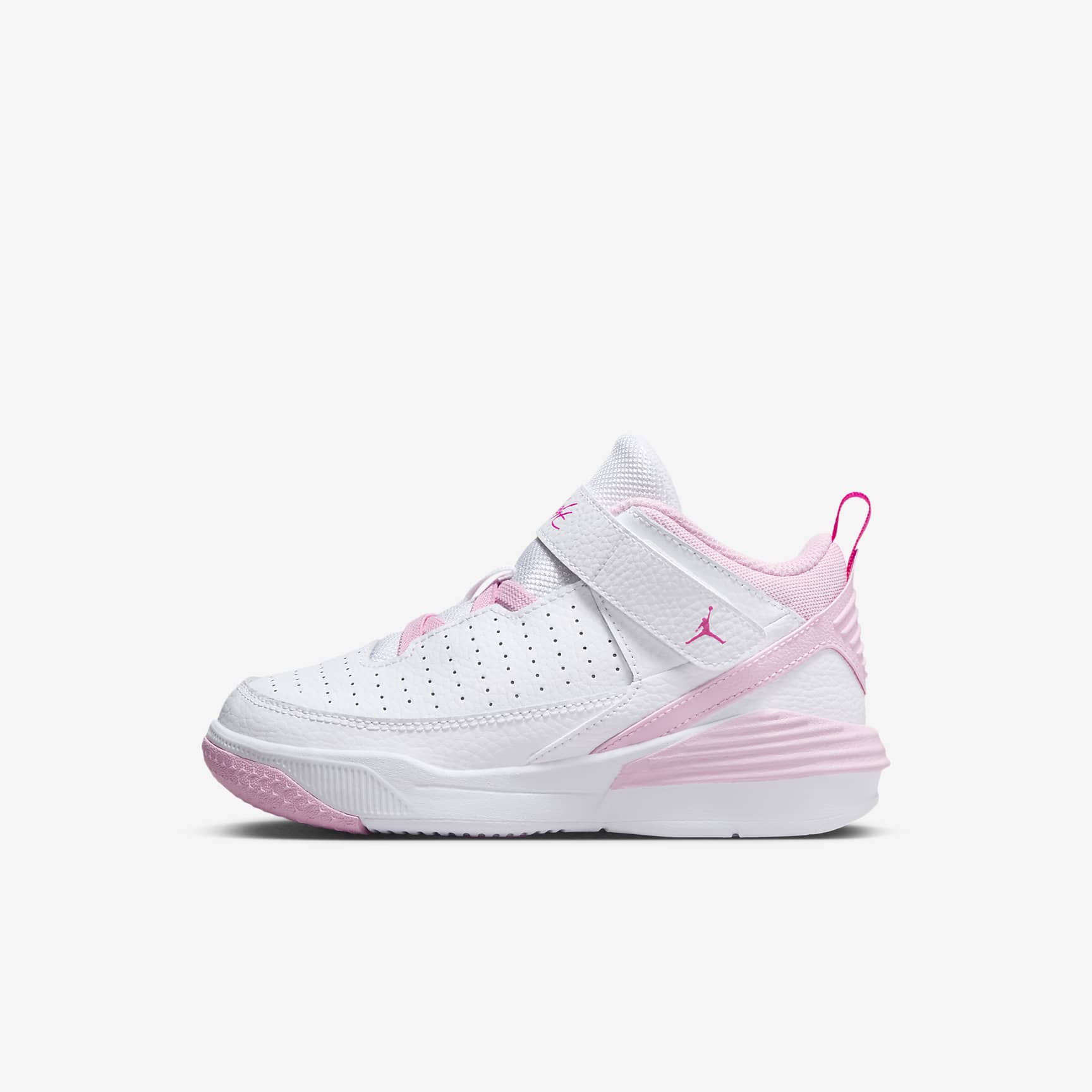 When your little one needs a shoe that's ready 24/7, it's gotta be the Max Aura 5. Inspired by the AJ3, this pair of kicks puts a modern spin on the classic. They're made from durable synthetic leather and textiles, and the combination of elastic laces with a hook-and-loop strap makes on-and-off easy. You're all set for full days of fun. Benefits * Hook-and-loop strap closure is secure and easy. * Rubber outsole gives plenty of traction for learning feet. Product Details * Elastic laces * Woven Jumpman label on tongue * Eyelet design references the AJ3 * Sturdy plastic on heel inspired by AJ3 mould