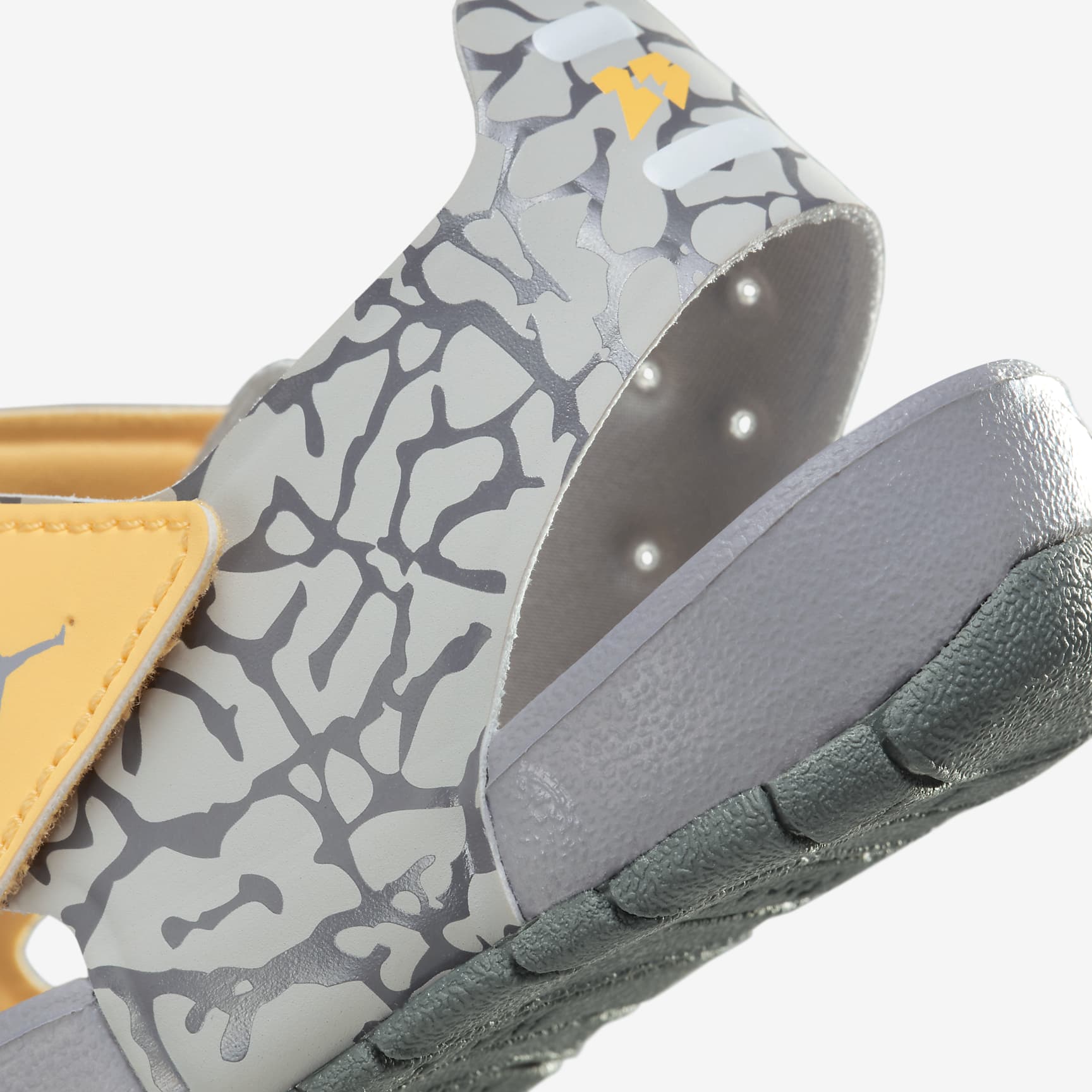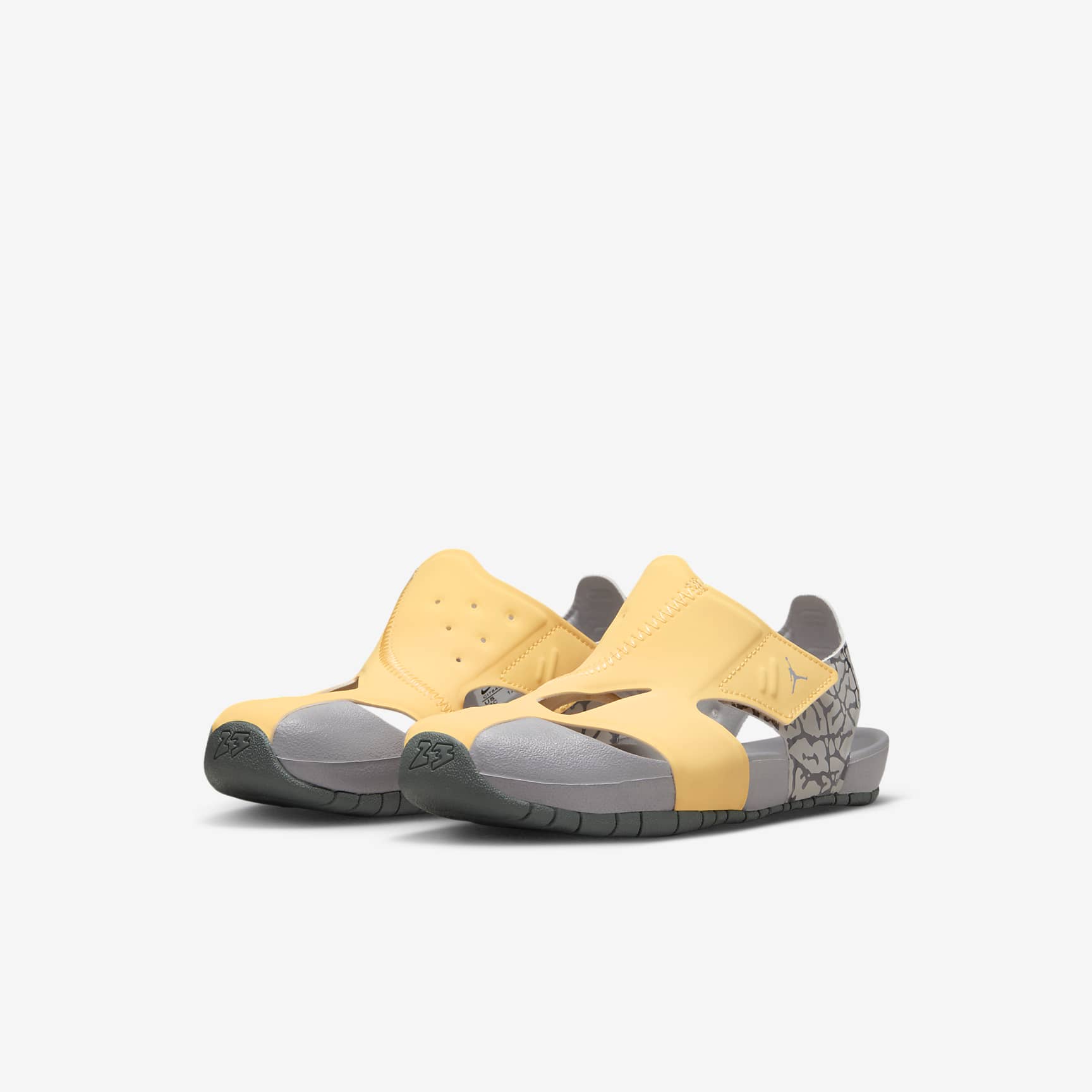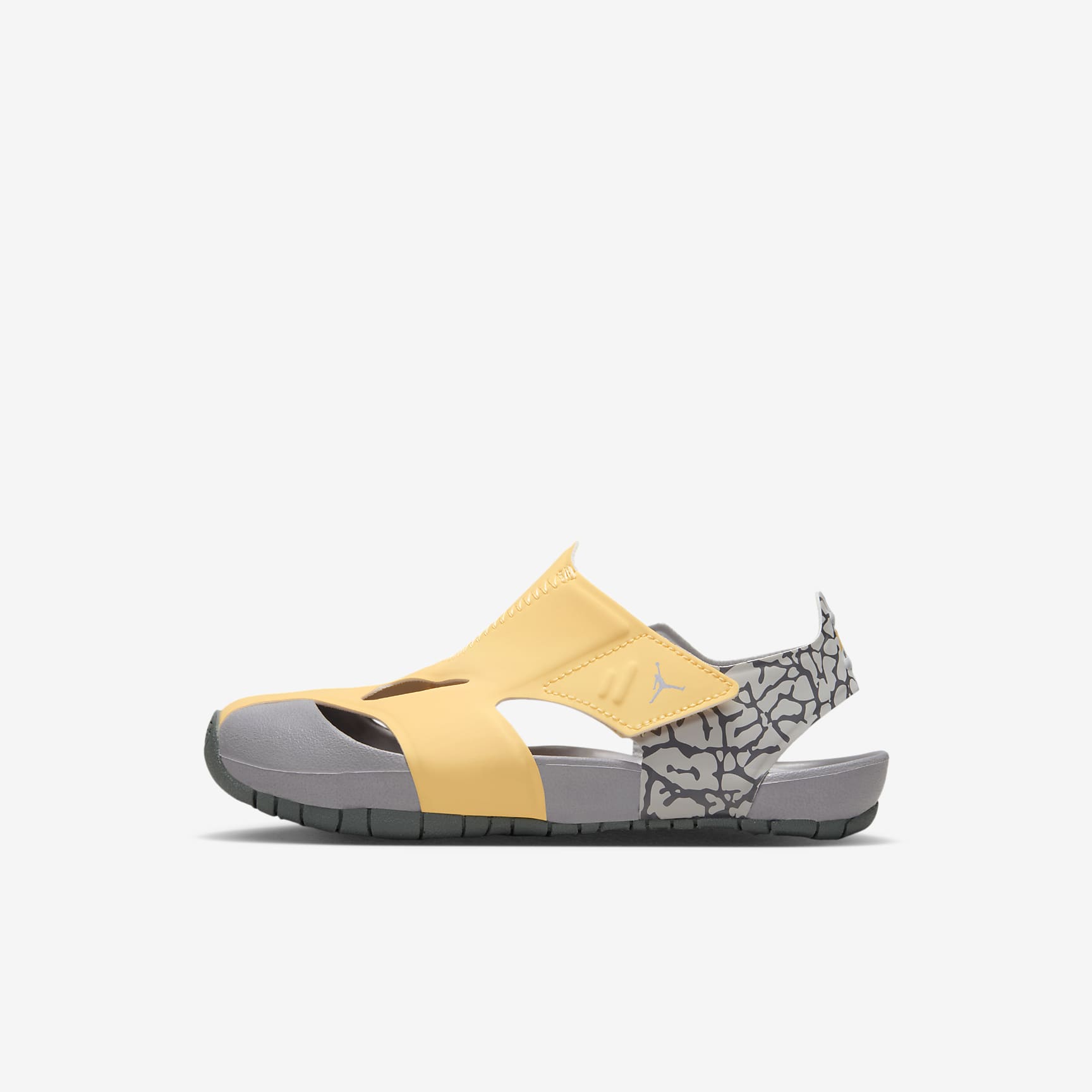 MADE TO RUN AND PLAY. Perfect for active kids, the Jordan Flare is light, breathable and comfortable. It's easy to get on, has a heel band to keep it from slipping off and is covered in the front to help prevent toe stubs. Benefits * Stretchy, quick-drying material has a snug, comfortable fit. * The soft rubber outsole provides traction on multiple surfaces and has grooves for flexibility. * A moulded heel piece helps the sandal fit snugly. * The textured footbed is soft and comfortable. * A hook-and-loop strap makes it easy to get on and off. Product Details * Closed toe area