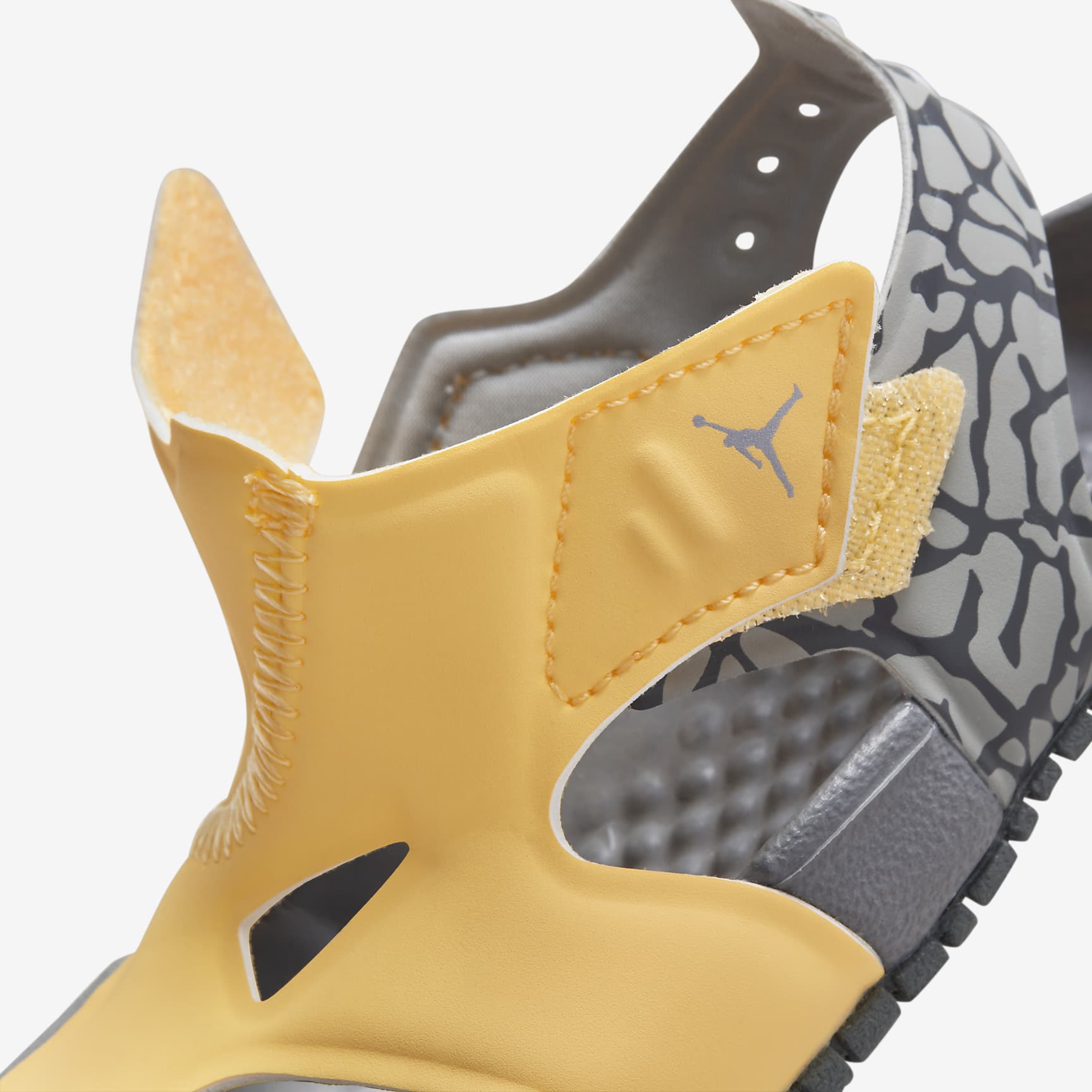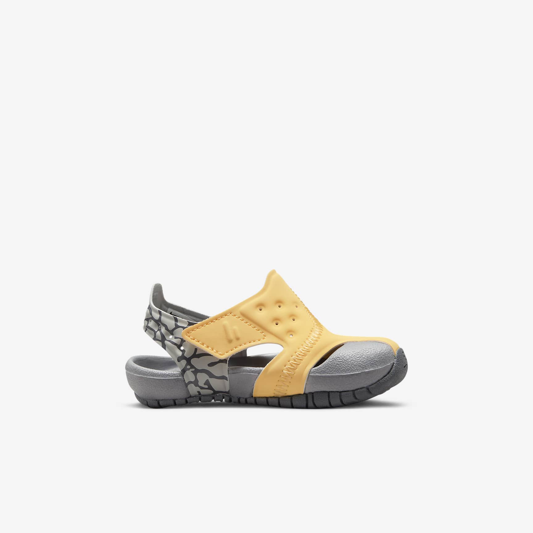 MADE TO RUN AND PLAY. Perfect for active kids, the Jordan Flare is light, breathable and comfortable from toe to heel. It's easy to get on, has a heel band to keep it from slipping off and is covered in the front to help prevent toe stubs. Benefits * Stretchy, quick-drying material has a snug and comfortable fit. * The soft rubber outsole provides traction on multiple surfaces and has grooves for flexibility. * A moulded heel helps the sandal fit snugly. * The textured footbed is soft and comfortable. * A hook-and-loop strap makes it easy to get on and off. Product Details * Closed toe area