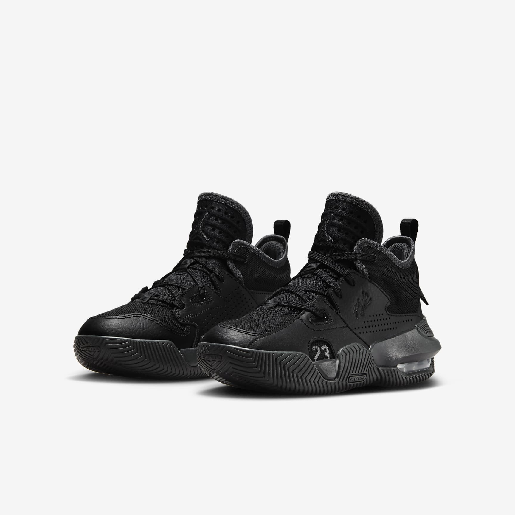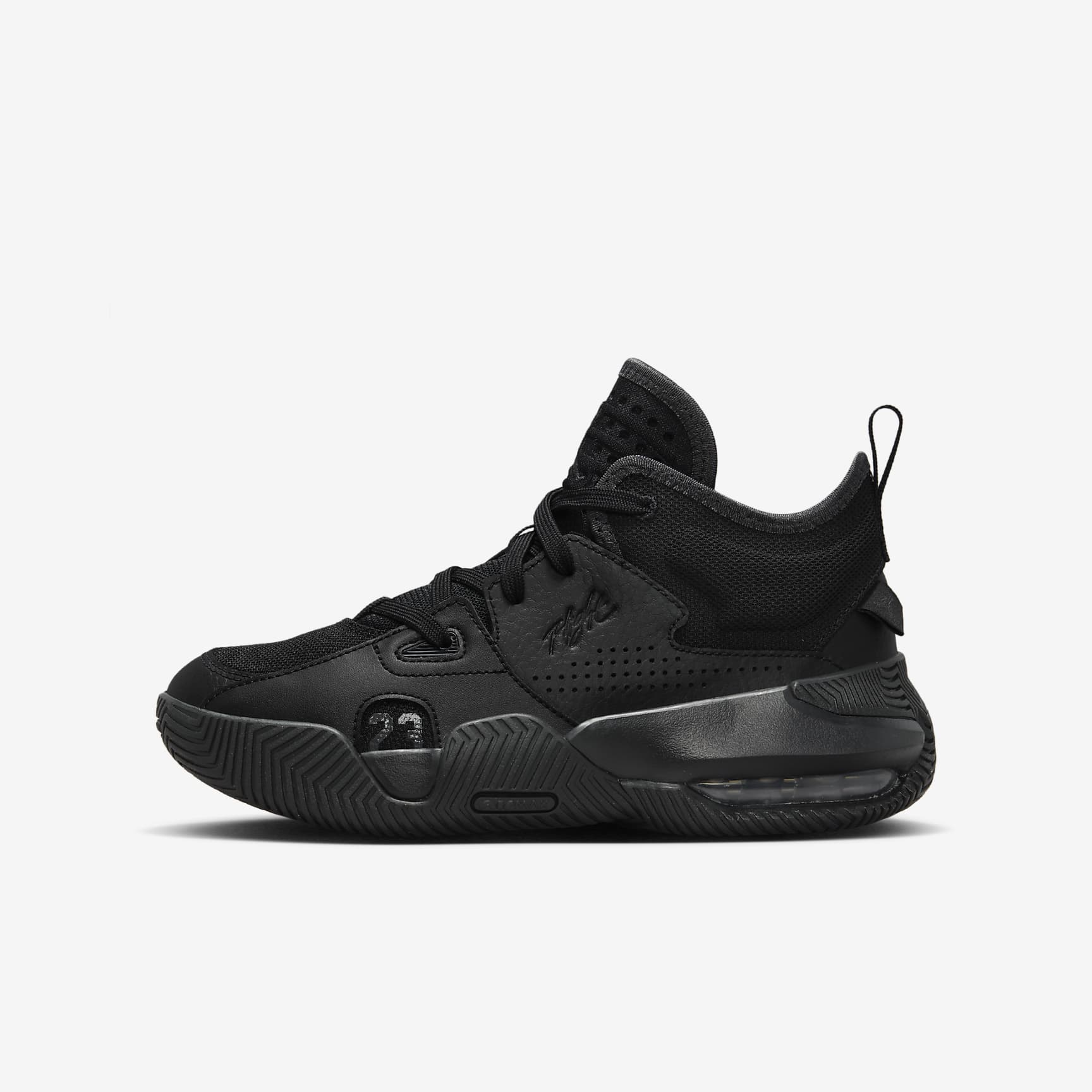 Gear up in Jordan heritage. With details drawn from decades of shoes, the Stay Loyal 2 is a collage of cool. Mesh and leather upper gives you stability without the worry of weighing you down. Air in the heel keeps you cushioned. Get out and play! Benefits * Nike Air technology absorbs impact for cushioning with every step. * Leather upper breaks in easily and makes for a long-lasting shoe. * Knit mesh toe lets your feet breath. Product Details * Jumpman logo heel band * Heel loop * Moulded eyelet detail