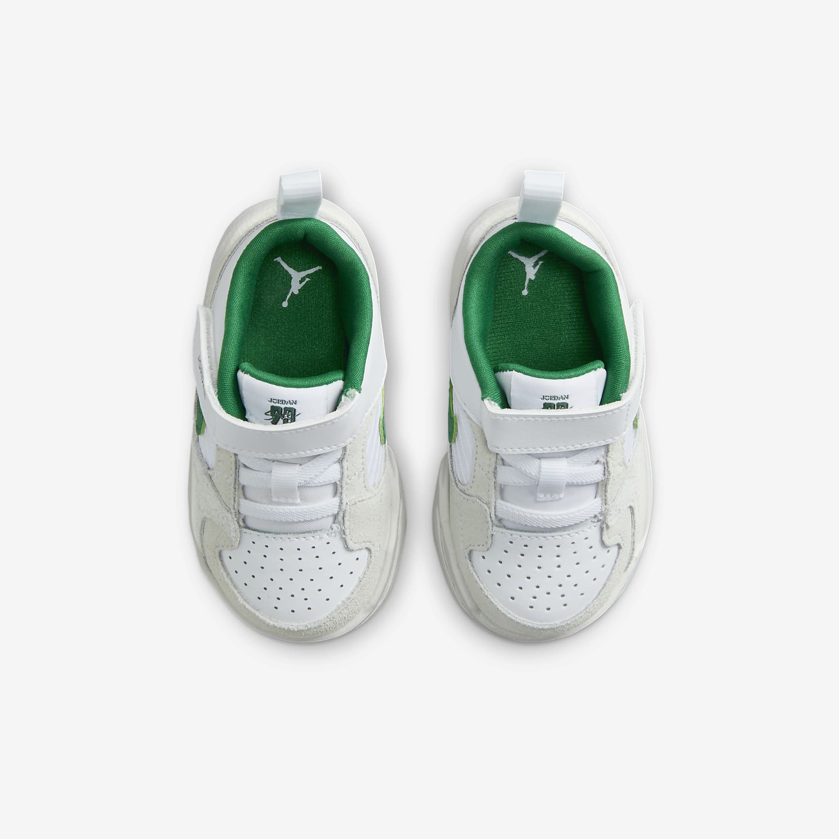 Comfort is king, but that doesn't mean your kid has to sacrifice style. Taking design inspiration from the AJ1 and AJ5, the Stadium 90 is ready for everyday play. With an upper made from sturdy leather and airy Ripstop, learning feet are supported with breathable durability. Benefits * Durable upper is made from real leather, synthetic leather and textile materials. * Rubber outsole provides traction for little feet. Product Details * Classic laces * Rubber outsole pays homage to the AJ1 * Flame details and heel branding reference the AJ5