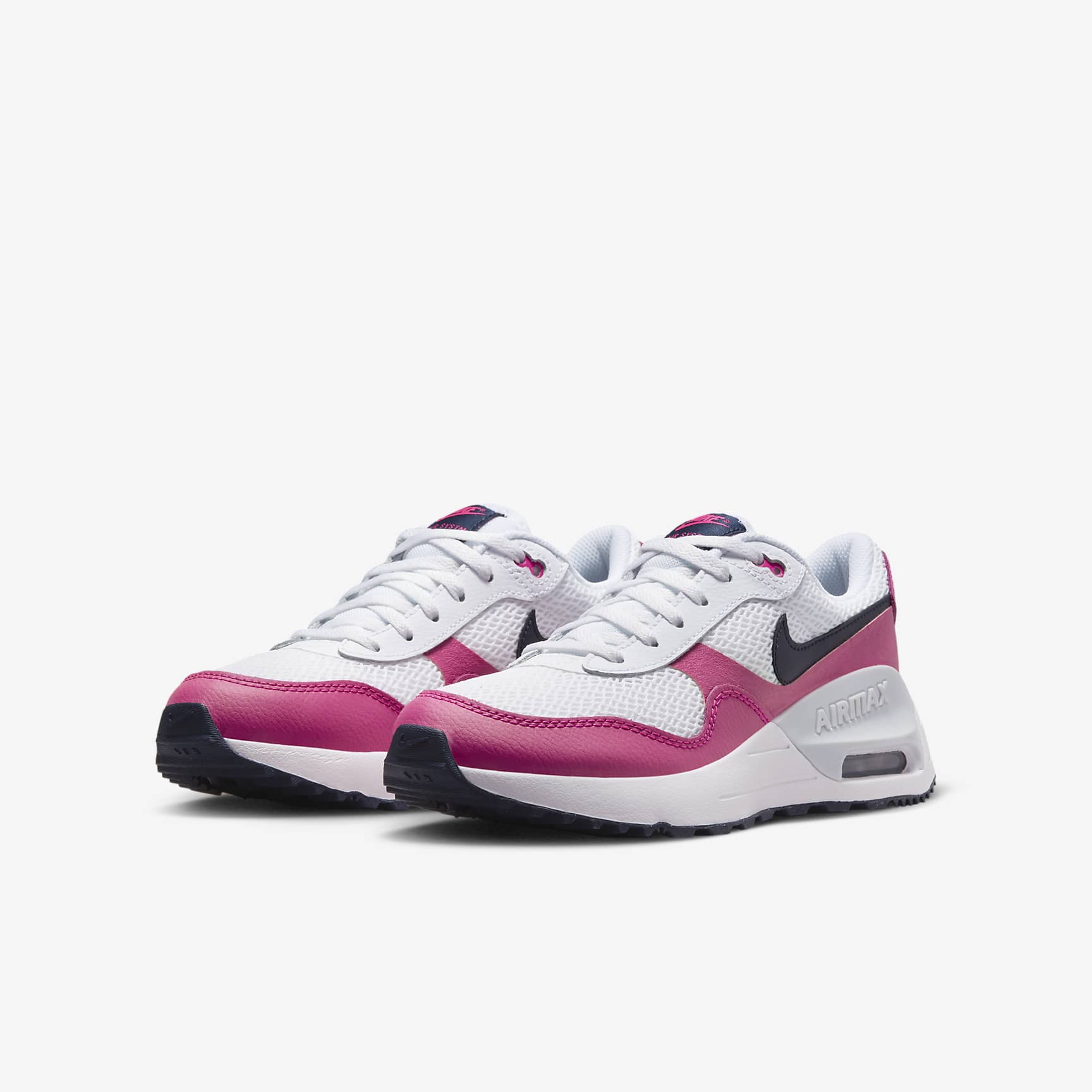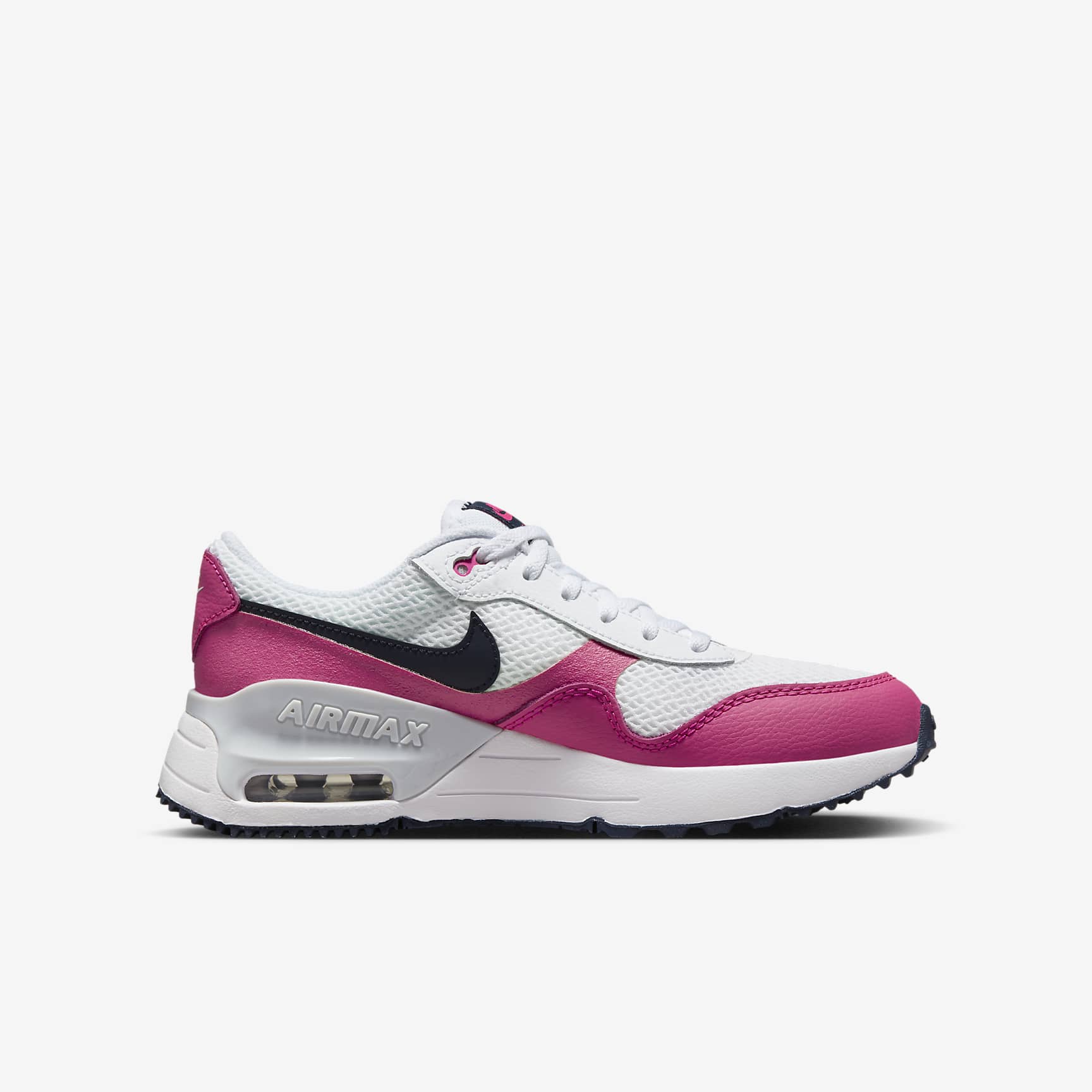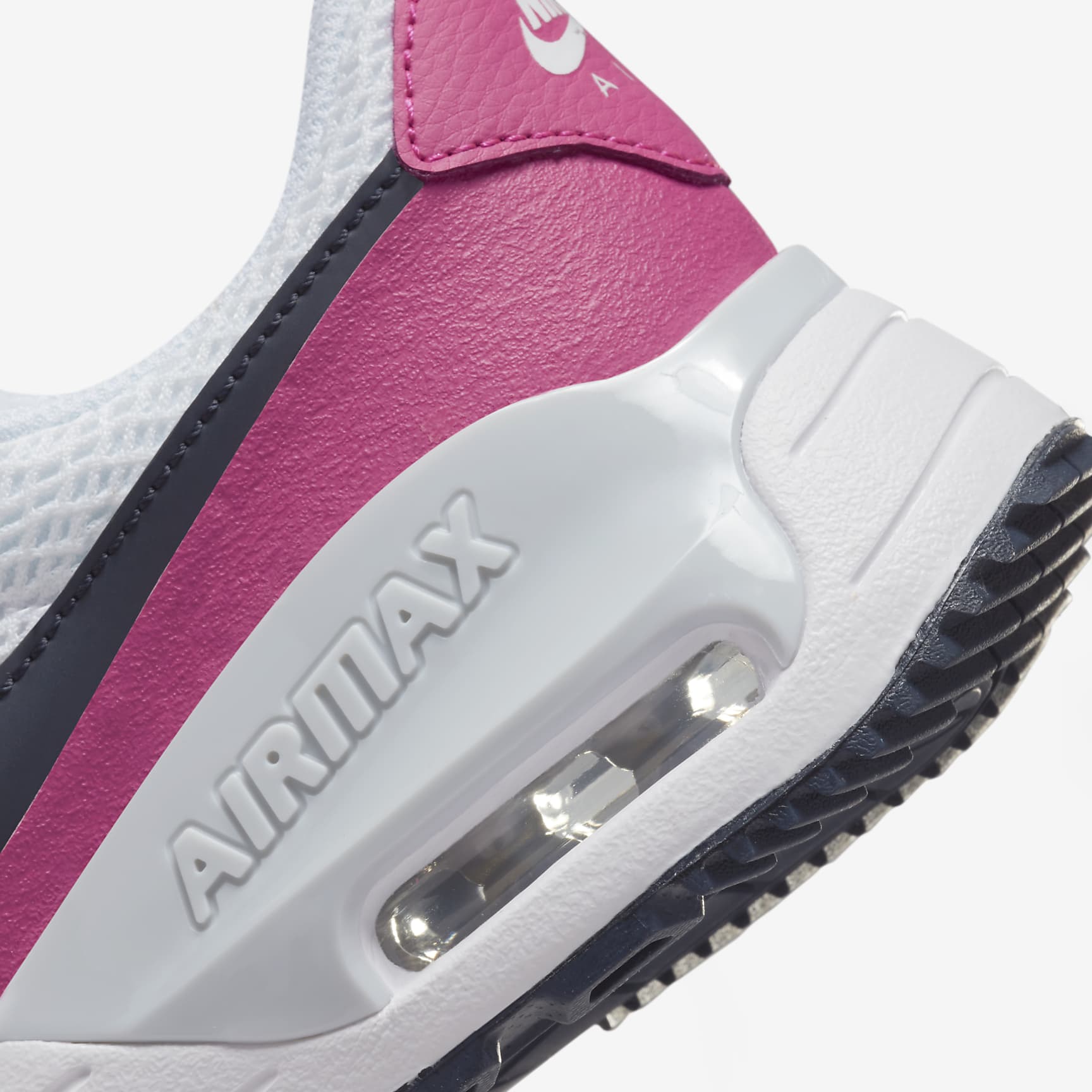 SHOWING OLD-SCHOOL LOVE WITH AIR. Cassette mixtapes, music videos and shopping centre arcades—the '80s had it all. We're celebrating that gnarly era with the Nike Air Max SYSTM. From the big and bold Air unit in the heel to design lines inspired by our favourite throwback Air Max shoes, these kicks are all about bringing back what's cool and introducing it to a new generation. From the Roots Inspired by early Air Max icons, visible Nike Air brings lightweight cushioning underfoot. Plus, the wavy design lines of the past return with a new twist perfect for the future. Fit to Wear Leather and textile upper brings durability and breathability to help make these comfortable to wear all day. Synthetic material around the Air unit adds extra durability. Ground Control Full-length rubber Waffle outsole gives durable traction on different surfaces. Product Details * Classic laces * Foam midsole