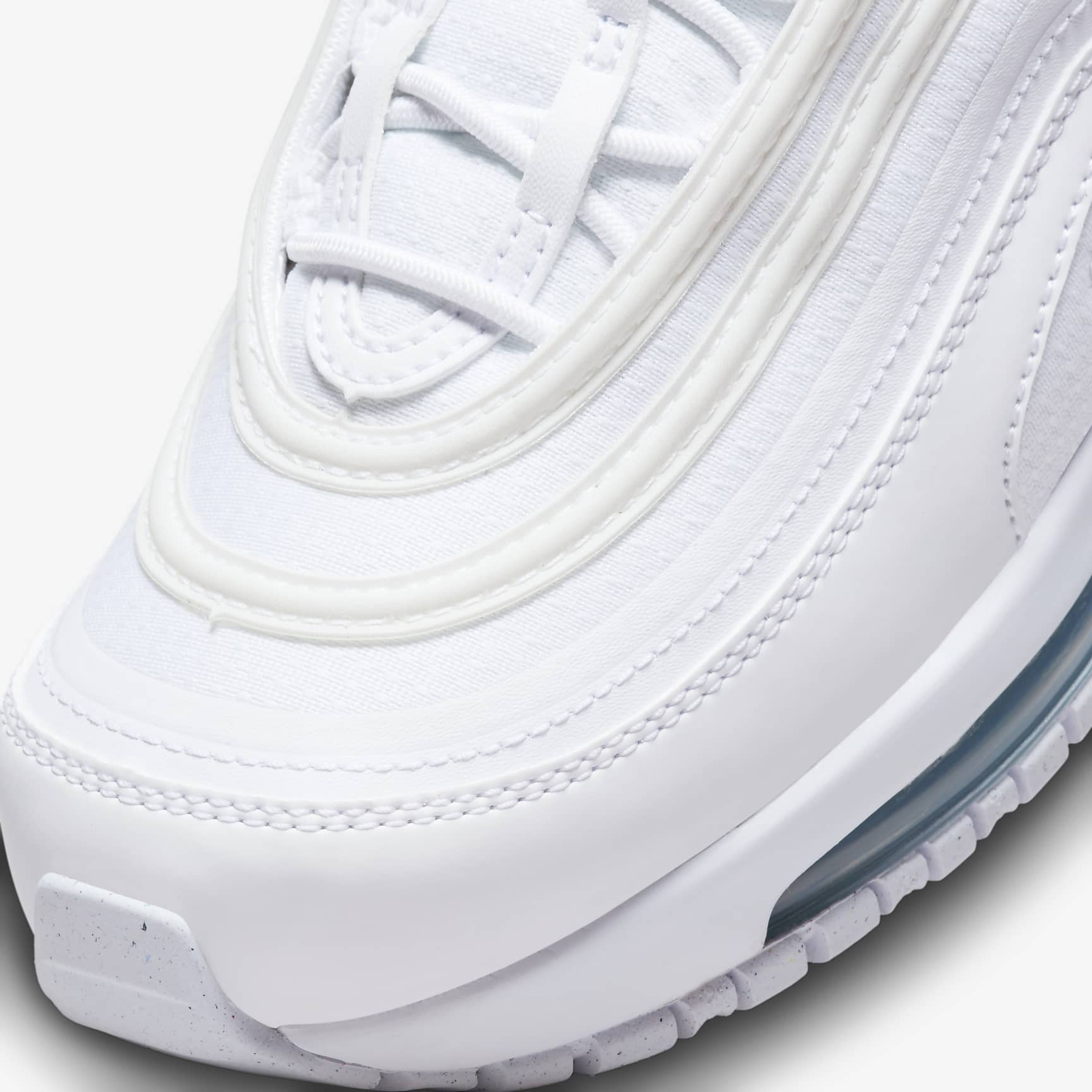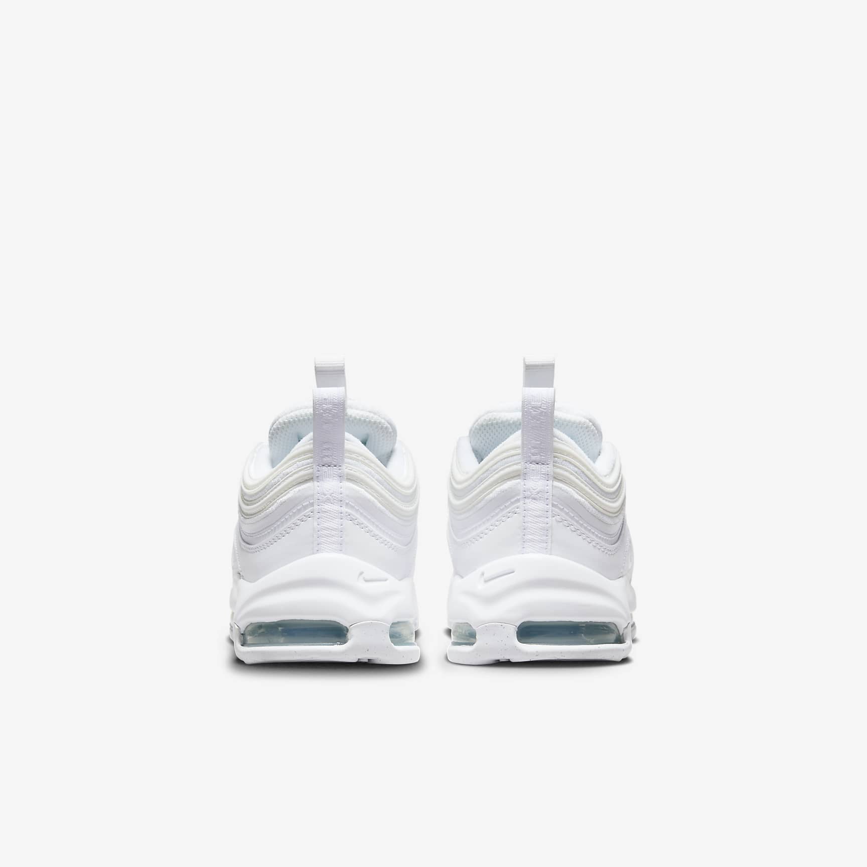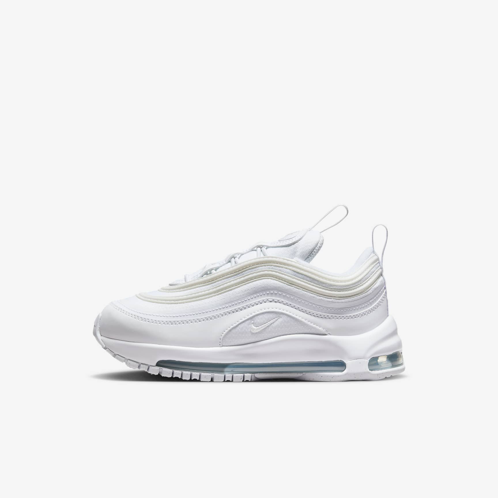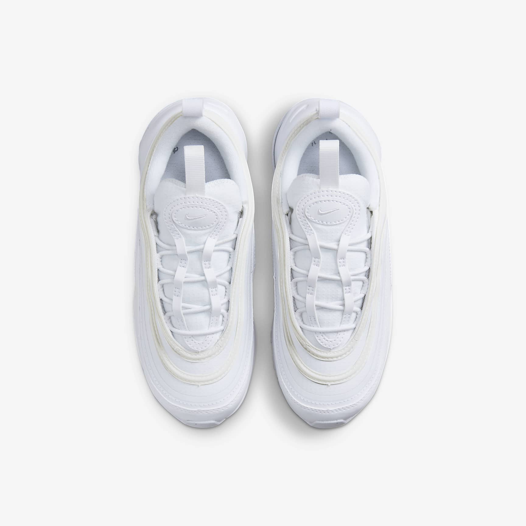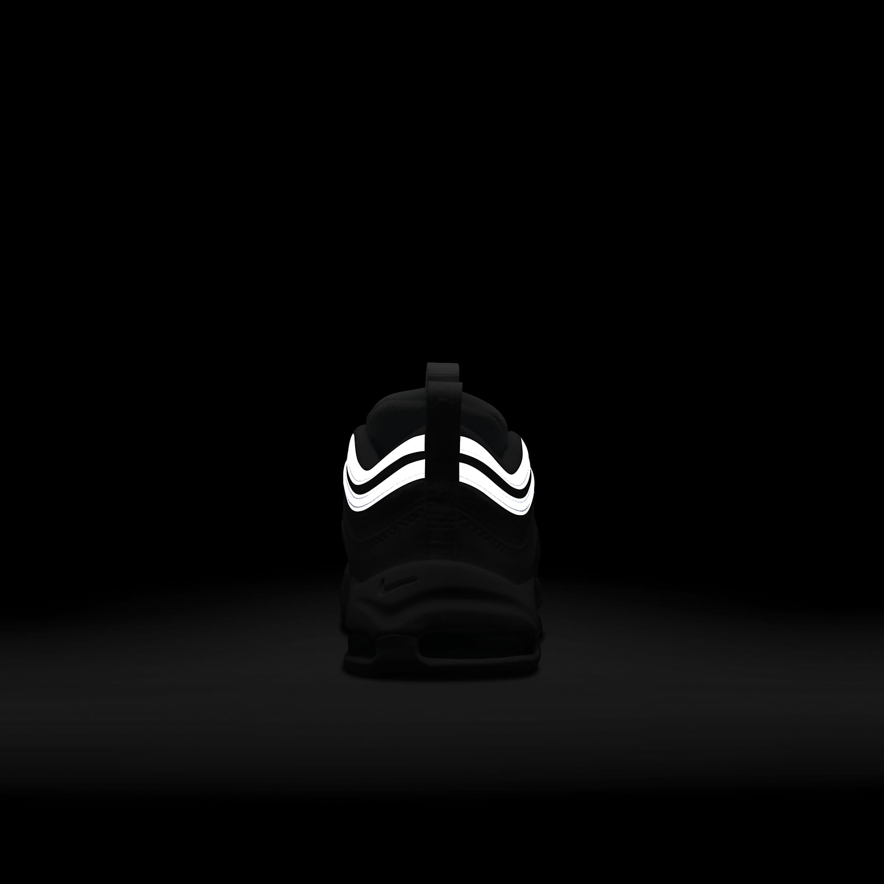 We used our imagination to rethink how an Air Max 97 could feel—without changing how it looked. Made with little feet in mind, the outsole is more flexible than previous editions so kids can spring like a kangaroo and sprint like a cheetah. We also replaced the layers of stiff materials around the foot with a soft woven fabric and printed detail. It's time to move! Walking On Air This kids-specific Air-Sole unit under soft foam helps provide stability and flexibility where developing feet need them most. First In The Lace Race Elastic laces and an internal stretchy strap make it easy to slip the shoes on and get going. Play In More Places The tread is made with non-marking rubber, flexible grooves and cut-outs so little ones can run, stop and go on more surfaces. Product Details * Heel and tongue pull tabs * Elastic laces * Synthetic leather panels * Not intended for use as Personal Protective Equipment (PPE)