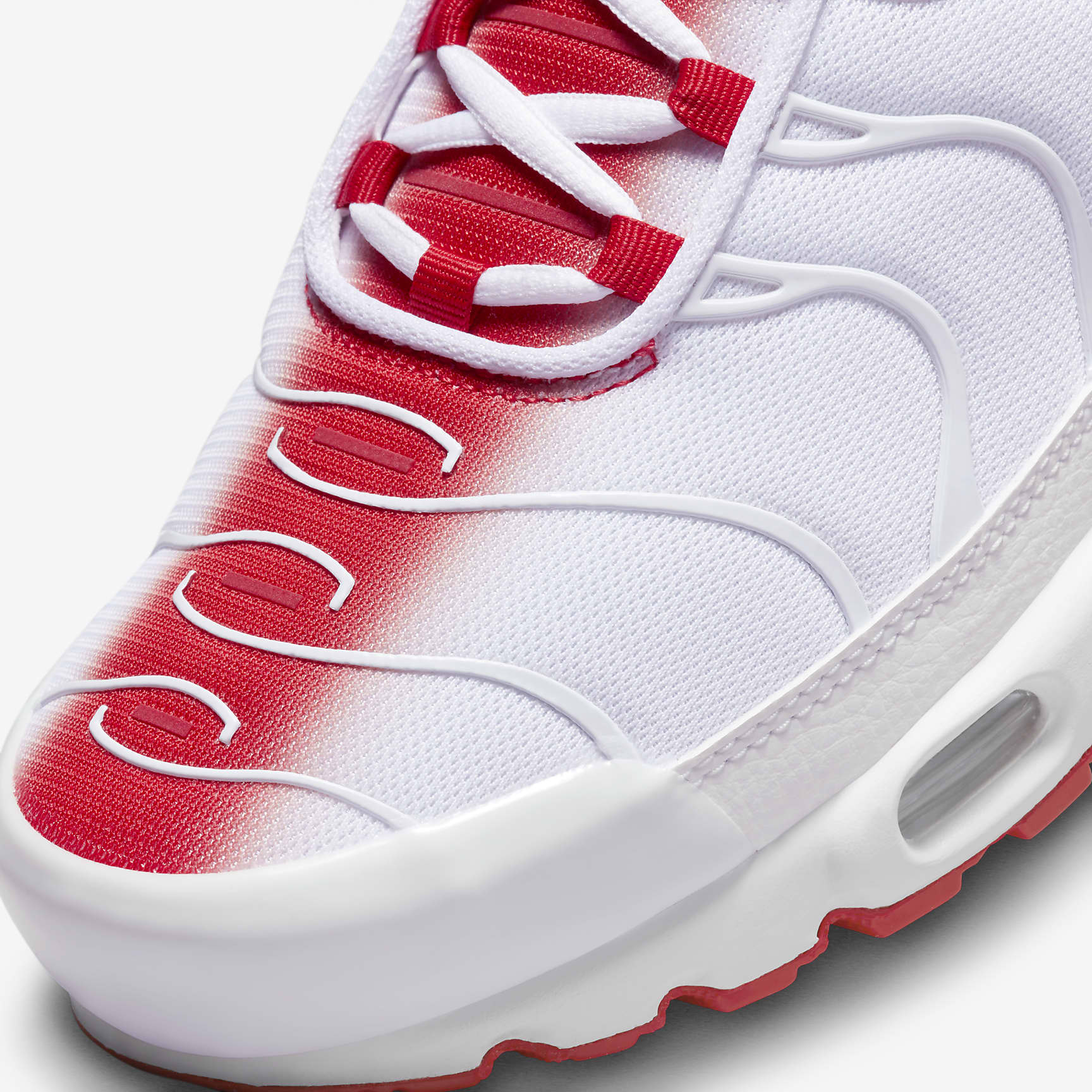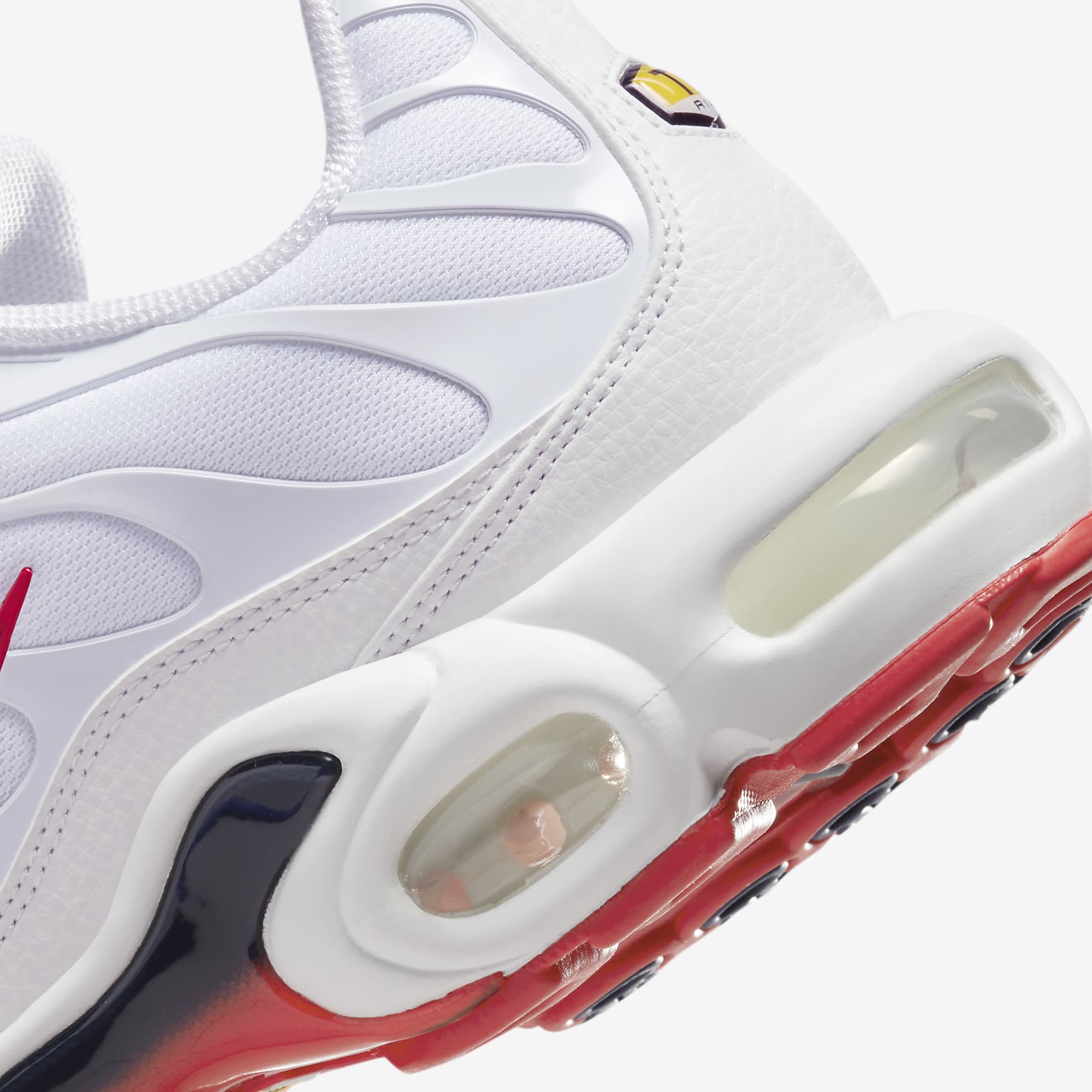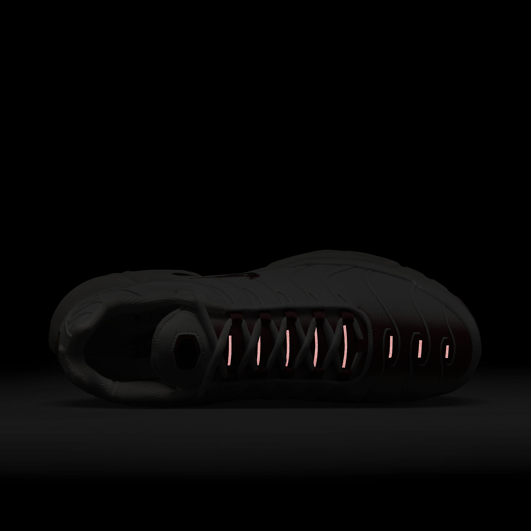 Let your attitude have the edge in the Nike Air Max Plus, a Tuned Air experience that offers premium stability and unbelievable cushioning. With airy textiles, bold gradient colouring and the wavy design lines of the original, these kicks celebrate defiant style. Benefits * Bringing beach life to the city, the prominent arch draws inspiration from a whale's tail and adds structure, while wavy lines across the upper nod to palm trees and ocean waves. * Originally designed for performance running, Nike Air units provide lightweight cushioning that lasts. * Synthetic upper with airy mesh adds lightweight comfort and durability. * Full-length rubber outsole adds traction and durability to your journey. Product Details * Foam in midsole * Reflective design details * Not intended for use as Personal Protective Equipment (PPE) Nike Air Max Origins Revolutionary Air technology first made its way into Nike footwear in 1978. In 1987, the Air Max 1 debuted with visible Air technology in its heel, allowing fans more than just the feel of Air cushioning—suddenly they could see it. Since then, next-generation Air Max shoes have become a hit with athletes and collectors by offering striking colour combinations and reliable, lightweight cushioning.
