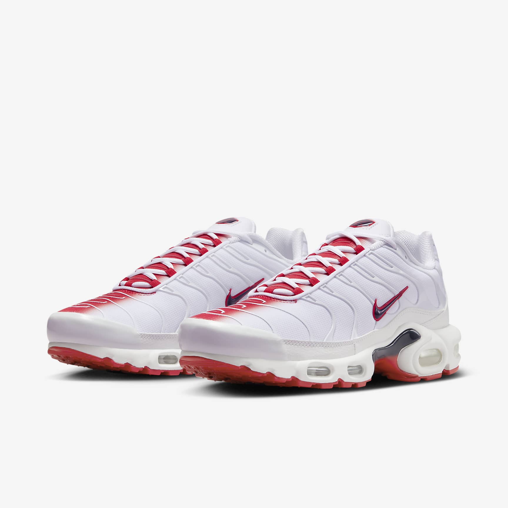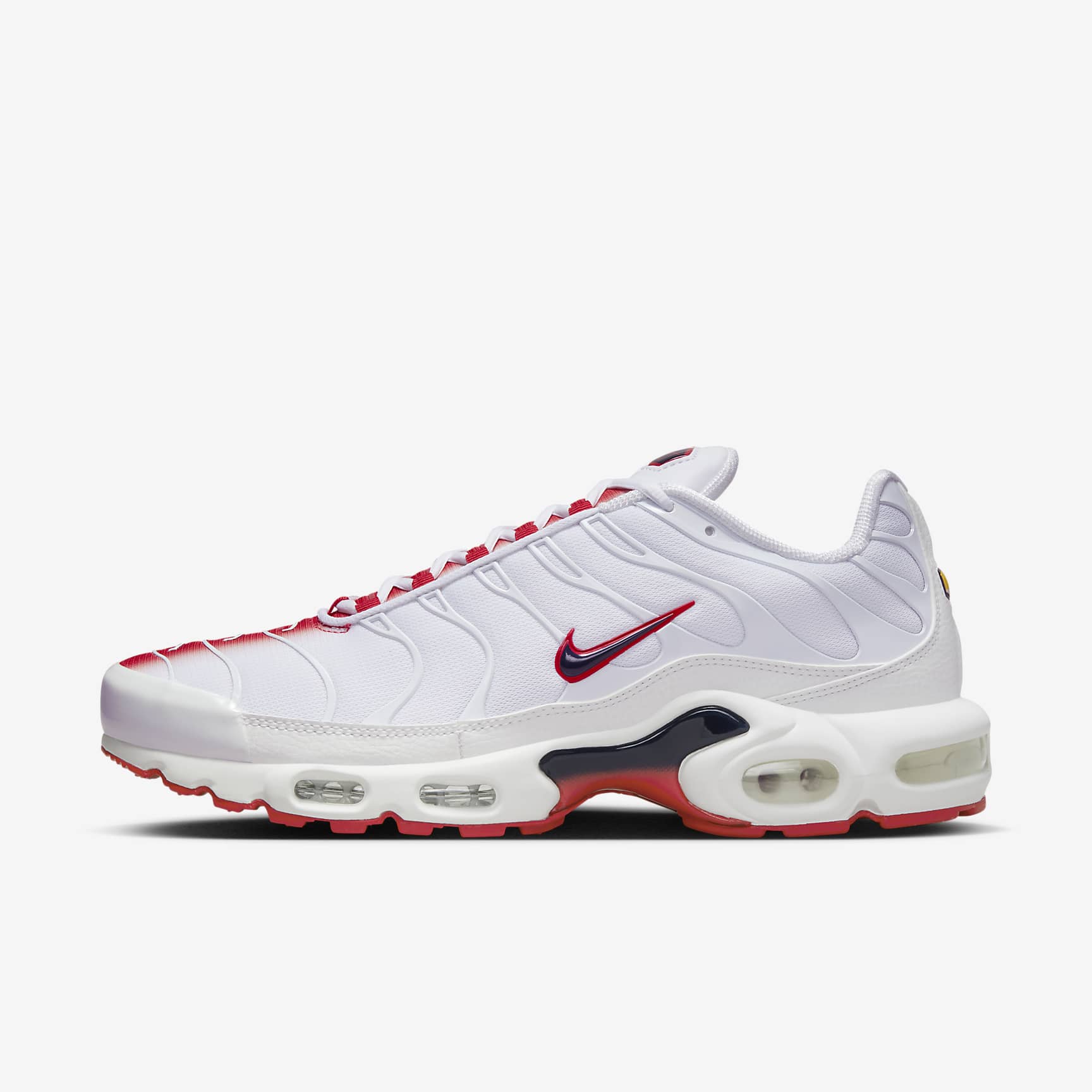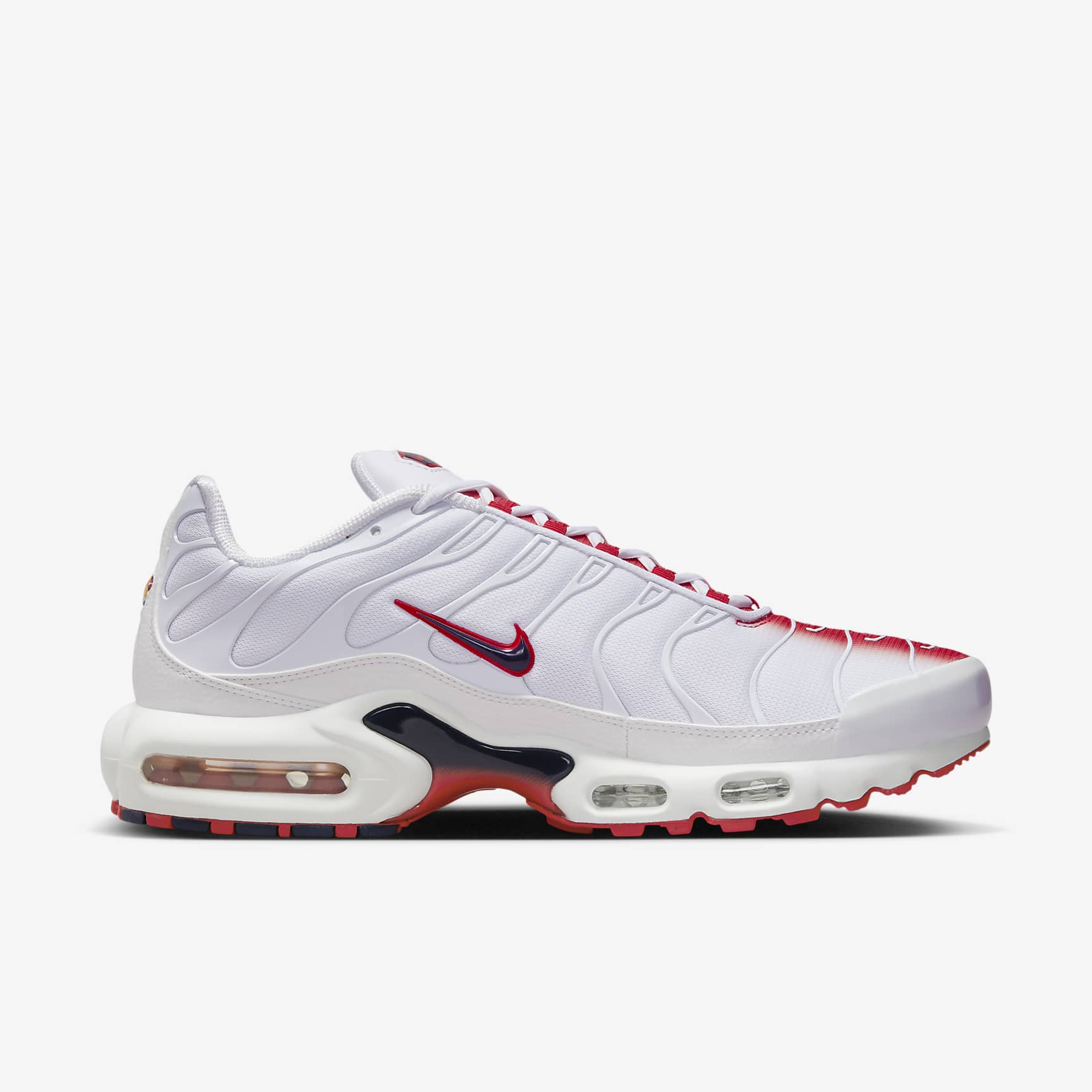 Let your attitude have the edge in the Nike Air Max Plus, a Tuned Air experience that offers premium stability and unbelievable cushioning. With airy textiles, bold gradient colouring and the wavy design lines of the original, these kicks celebrate defiant style. Benefits * Bringing beach life to the city, the prominent arch draws inspiration from a whale's tail and adds structure, while wavy lines across the upper nod to palm trees and ocean waves. * Originally designed for performance running, Nike Air units provide lightweight cushioning that lasts. * Synthetic upper with airy mesh adds lightweight comfort and durability. * Full-length rubber outsole adds traction and durability to your journey. Product Details * Foam in midsole * Reflective design details * Not intended for use as Personal Protective Equipment (PPE) Nike Air Max Origins Revolutionary Air technology first made its way into Nike footwear in 1978. In 1987, the Air Max 1 debuted with visible Air technology in its heel, allowing fans more than just the feel of Air cushioning—suddenly they could see it. Since then, next-generation Air Max shoes have become a hit with athletes and collectors by offering striking colour combinations and reliable, lightweight cushioning.