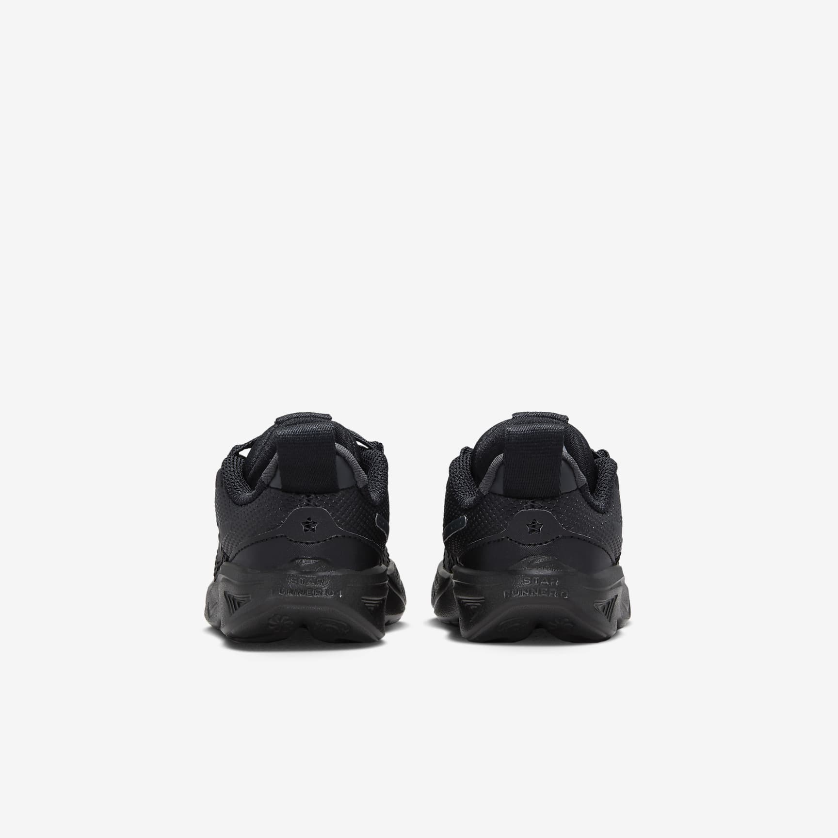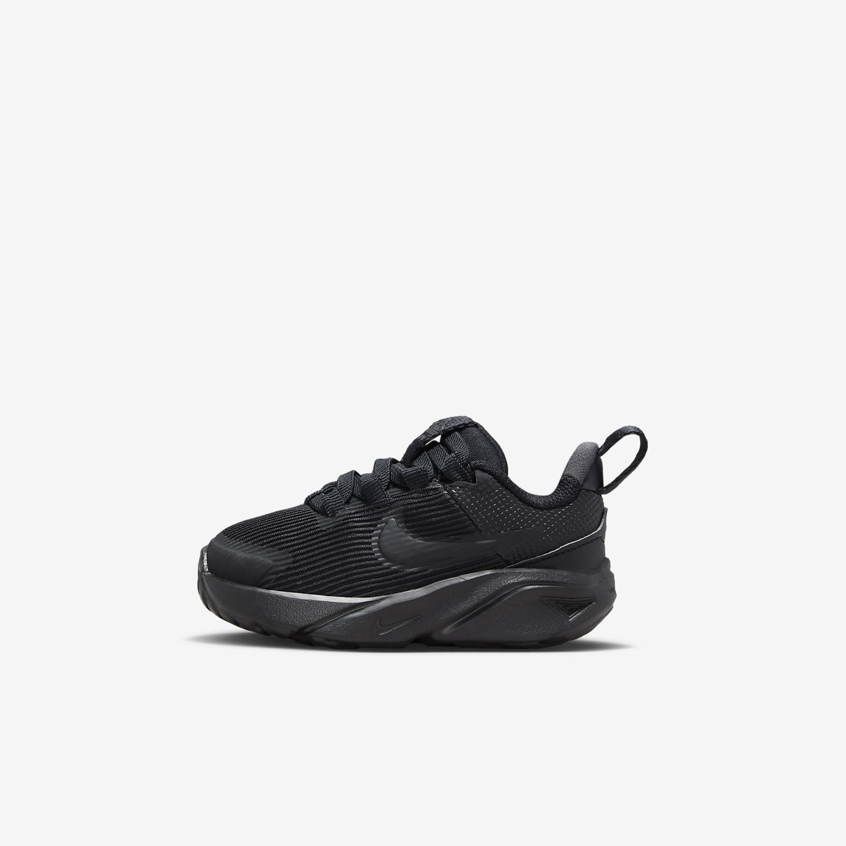 Get out of the door in a flash with the Star Runner. Loops on the tongue and heel make it easy to open the shoe up wide so little star runners can step in and get going. Soft cushioning in the midsole provides a comfortable, springy feel so 1 more round, lap and turn is always an option. The tread grabs at pavement, grass and gravel to give them extra grip while a rubber-wrapped toe toughens up the construction so they can go further in the same pair of Star Runners. Benefits * Loops on the tongue and heel help make it easy to open the shoe up wide. * Tough as a snake: synthetic material covers the front of the shoe for long-lasting durability. * The vertical mesh upper helps keep kids cool. Product Details * Elastic laces