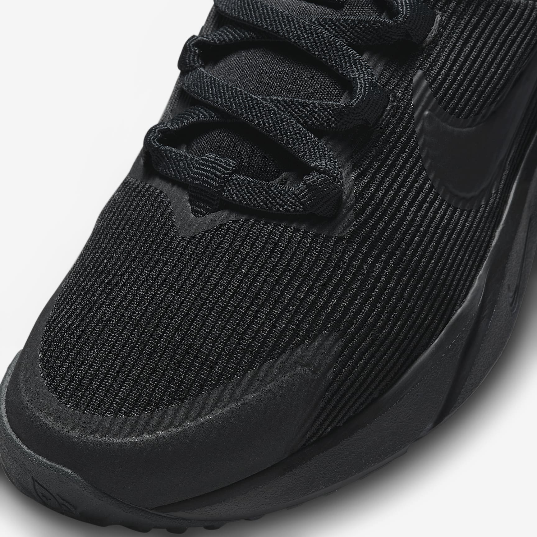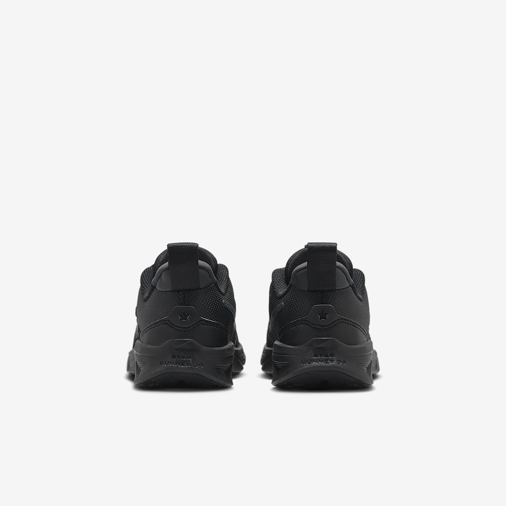Get out of the door in a flash with the Star Runner. Loops on the tongue and heel make it easy to open the shoe up wide so little star runners can step in and get going. Soft cushioning in the midsole provides a comfortable, springy return so 1 more round, lap and turn is always an option. The tread grabs at pavement, grass and gravel to give them extra grip while a rubber-wrapped toe toughens up the construction so they can go further in the same pair of Star Runners. Benefits * Loops on the tongue and heel help make it easy to open the shoe up wide. * Tough as a snake: synthetic material covers the front of the shoe for long-lasting durability. * The vertical mesh upper helps keep kids cool. Product Details * Elastic laces