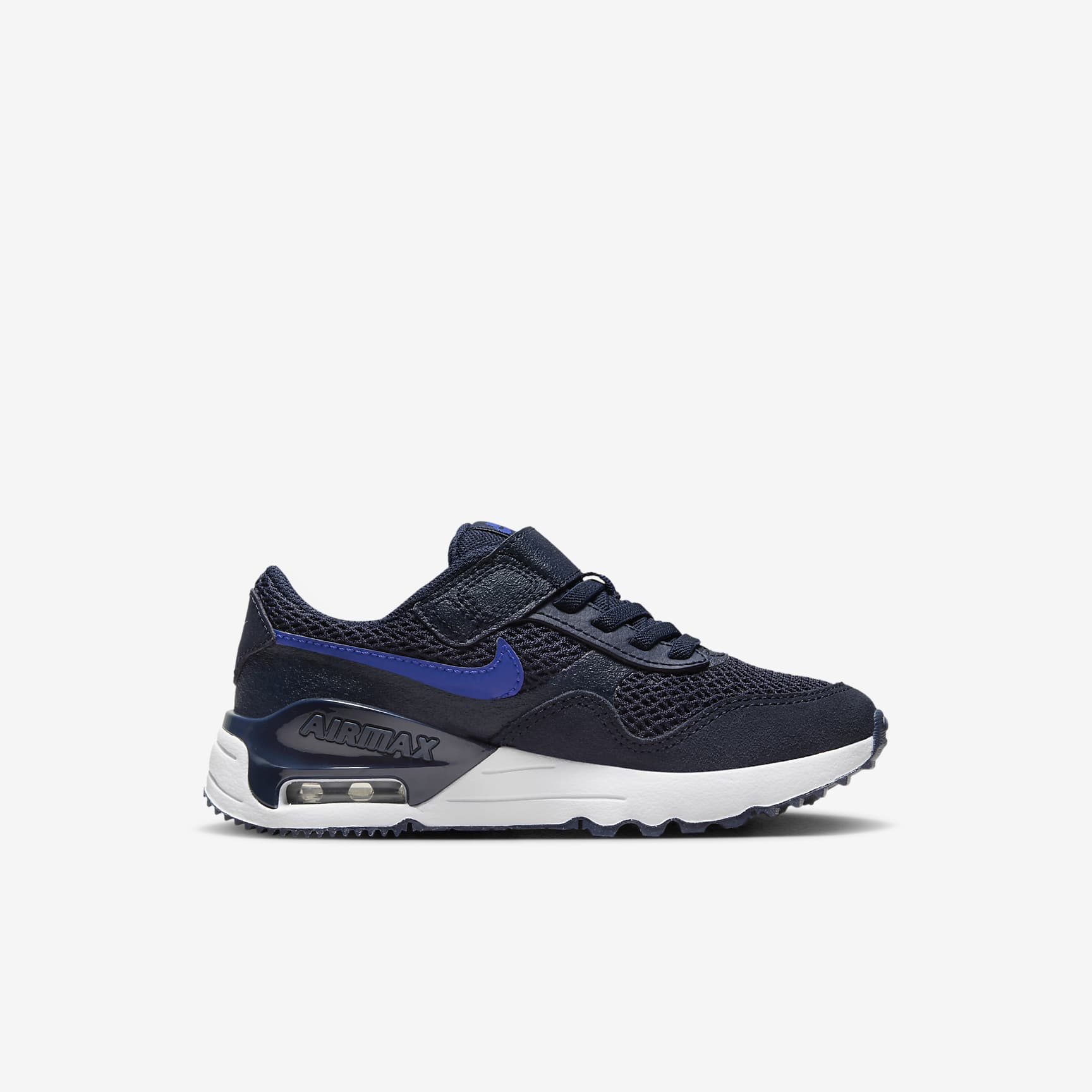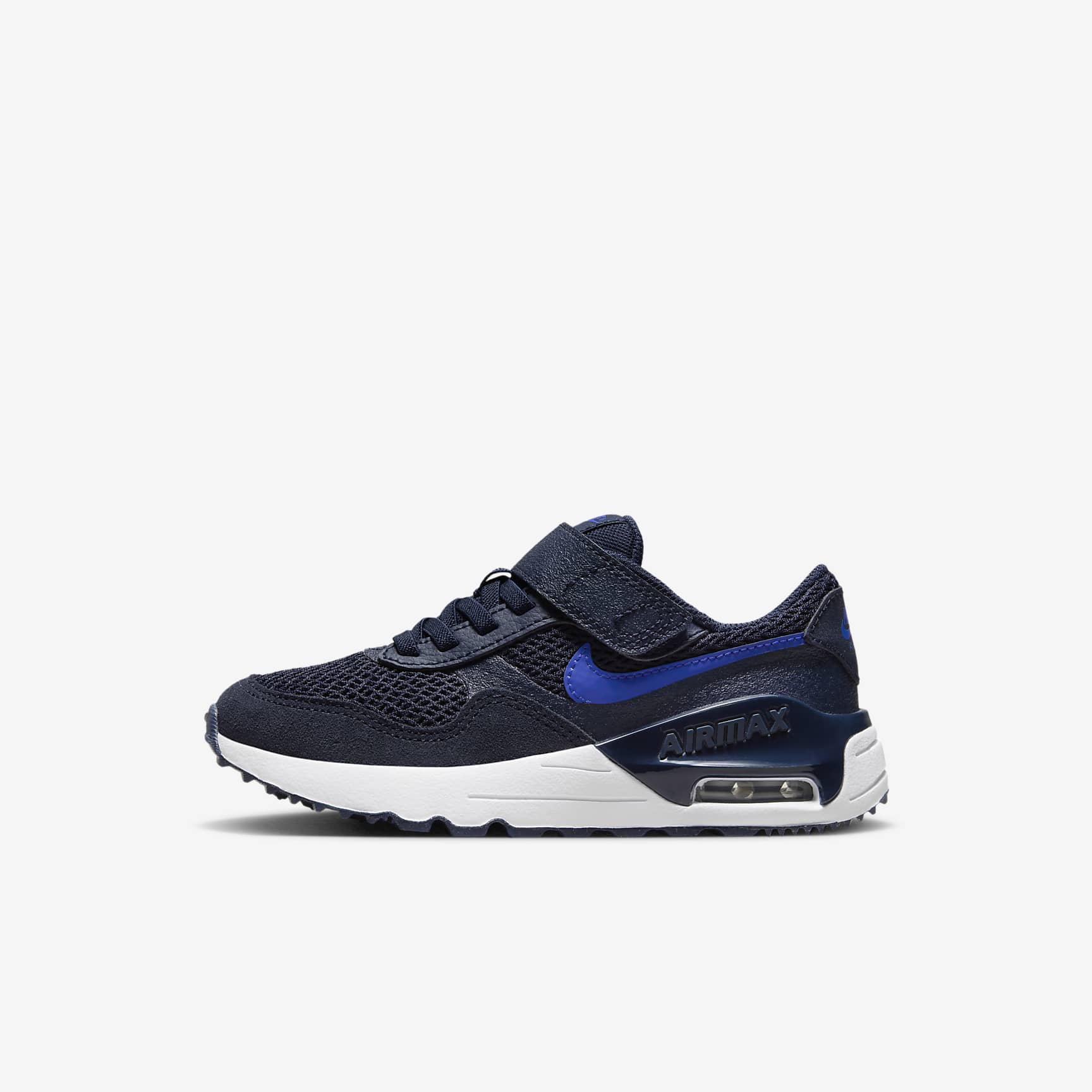 SHOWING OLD-SCHOOL LOVE WITH AIR. Cassette mixtapes, music videos and shopping centre arcades—the '80s had it all. We're celebrating that gnarly era with the Nike Air Max SYSTM. From the big and bold Air unit in the heel to design lines inspired by our favourite throwback Air Max shoes, these kicks are all about bringing back what's cool and introducing it to a new generation. Going to Our Roots Inspired by early Air Max icons, visible Nike Air brings lightweight cushioning underfoot. Plus, the wavy design lines from the past return with a new twist perfect for the future. Comfy Fit Leather and textile upper brings durability and breathability to help make these comfortable to wear all day. Synthetic material around the Air unit adds extra durability. Easy to Wear Elastic laces and a hook-and-loop strap make the shoes easy to get on and off. More Benefits * Soft foam underfoot provides additional cushioning with every step. * Full-length rubber Waffle outsole adds durable traction. Product Details * Elastic laces * Hook-and-loop strap