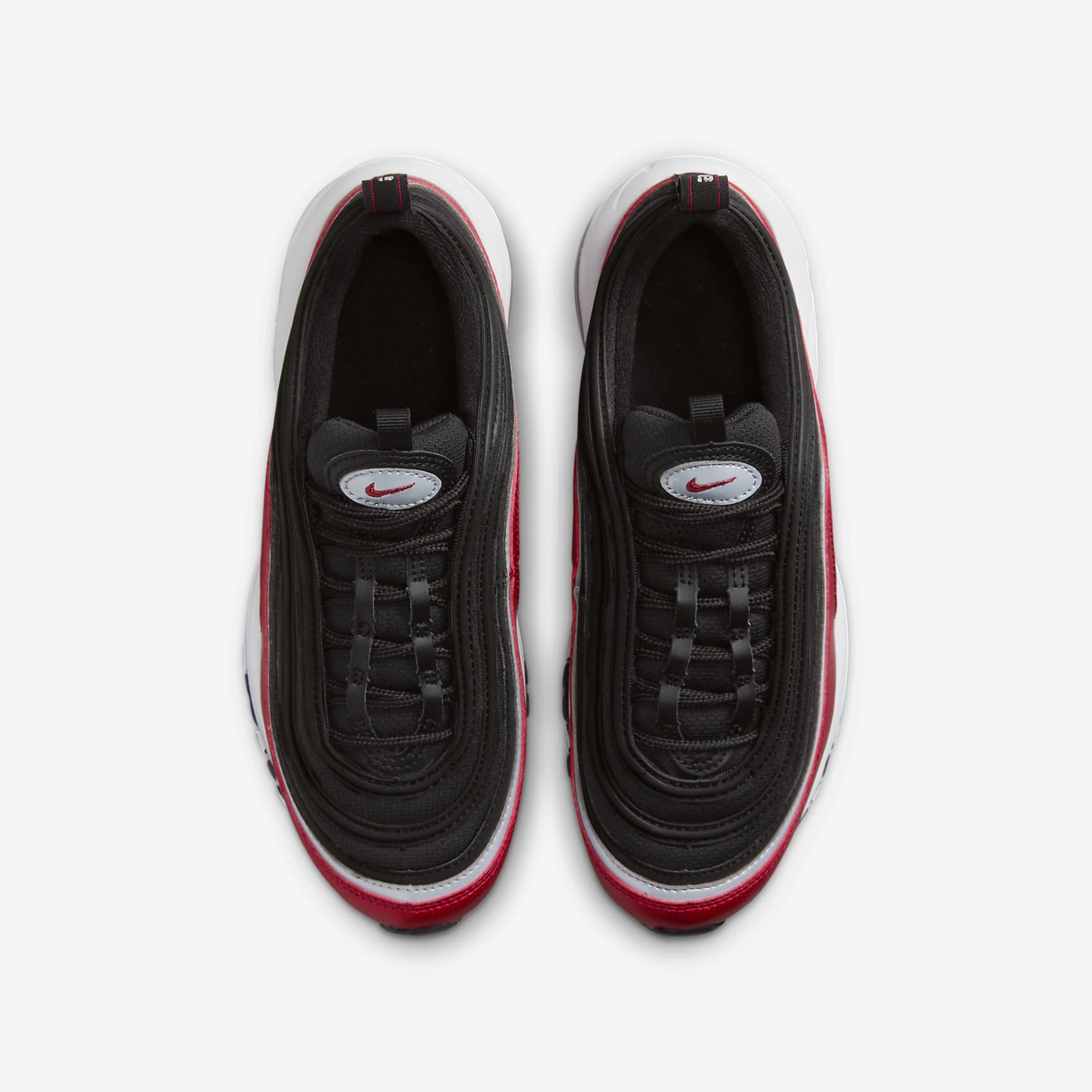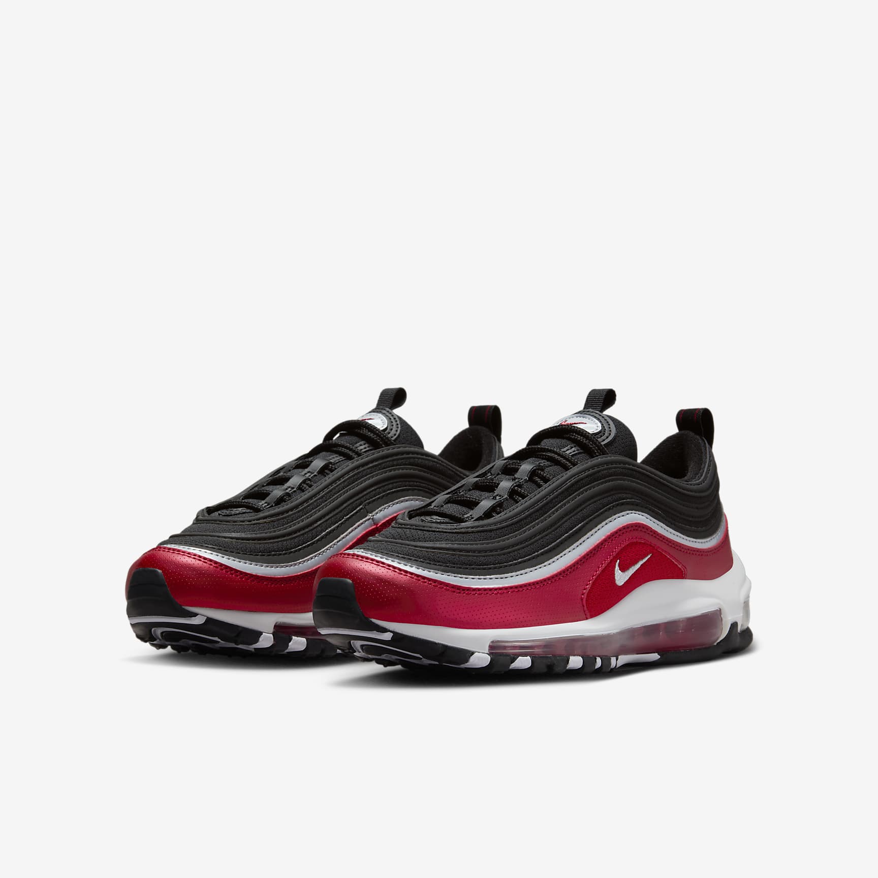 We used our imagination to rethink how an Air Max 97 could feel—without changing how it looked. Made with your feet in mind, the outsole is more flexible than in previous editions so you can spring like a kangaroo and sprint like a cheetah. We also replaced the layers of stiff materials around the foot with soft fabric and piping to create a layered look. It's time to move! Walking On Air This kids-specific Air-Sole unit under soft foam helps provide stability and flexibility where developing feet need them most. Play In More Places Tread is made from non-marking rubber, with flexible grooves and cut-outs so you can run, stop and go on more surfaces. Product Details * Synthetic leather panels * Heel pull tab * Not intended for use as Personal Protective Equipment (PPE)