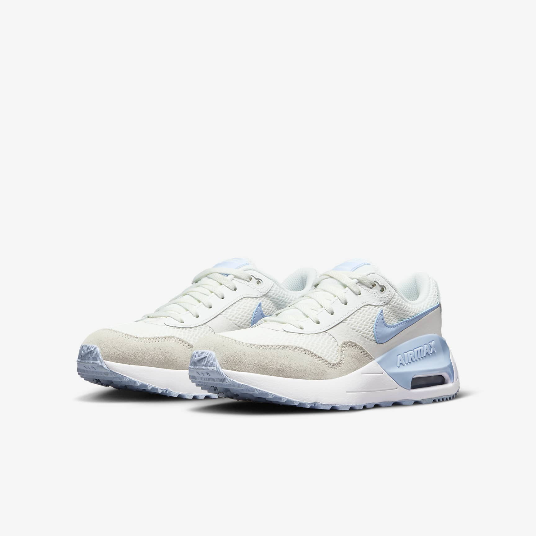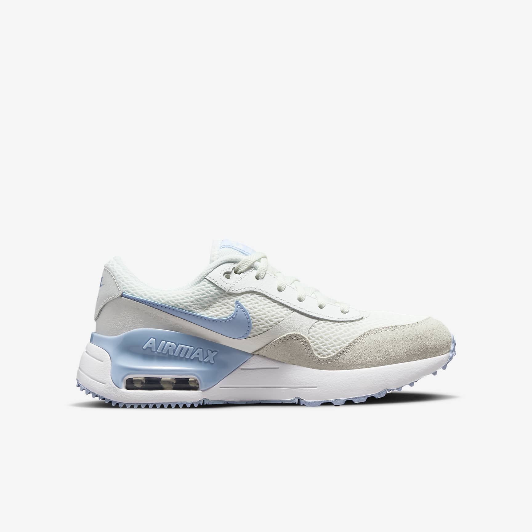 SHOWING OLD-SCHOOL LOVE WITH AIR. Cassette mixtapes, music videos and shopping centre arcades—the '80s had it all. We're celebrating that gnarly era with the Nike Air Max SYSTM. From the big and bold Air unit in the heel to design lines inspired by our favourite throwback Air Max shoes, these kicks are all about bringing back what's cool and introducing it to a new generation. From the Roots Inspired by early Air Max icons, visible Nike Air brings lightweight cushioning underfoot. Plus, the wavy design lines of the past return with a new twist perfect for the future. Fit to Wear Leather and textile upper brings durability and breathability to help make these comfortable to wear all day. Synthetic material around the Air unit adds extra durability. Ground Control Full-length rubber Waffle outsole gives durable traction on different surfaces. Product Details * Classic laces * Foam midsole