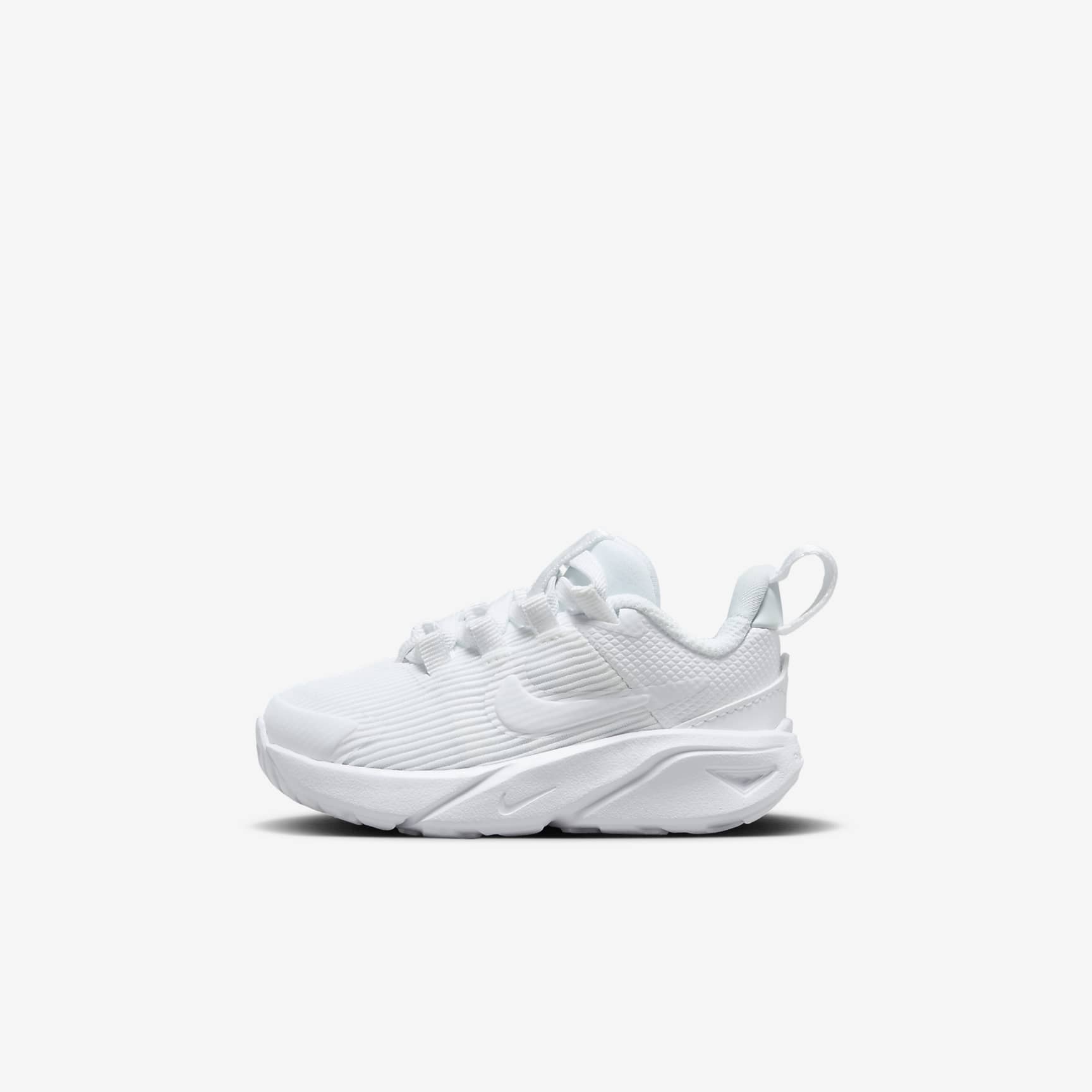 Get out of the door in a flash with the Star Runner. Loops on the tongue and heel make it easy to open the shoe up wide so little star runners can step in and get going. Soft cushioning in the midsole provides a comfortable, springy feel so 1 more round, lap and turn is always an option. The tread grabs at pavement, grass and gravel to give them extra grip while a rubber-wrapped toe toughens up the construction so they can go further in the same pair of Star Runners. Benefits * Loops on the tongue and heel help make it easy to open the shoe up wide. * Tough as a snake: synthetic material covers the front of the shoe for long-lasting durability. * The vertical mesh upper helps keep kids cool. Product Details * Elastic laces