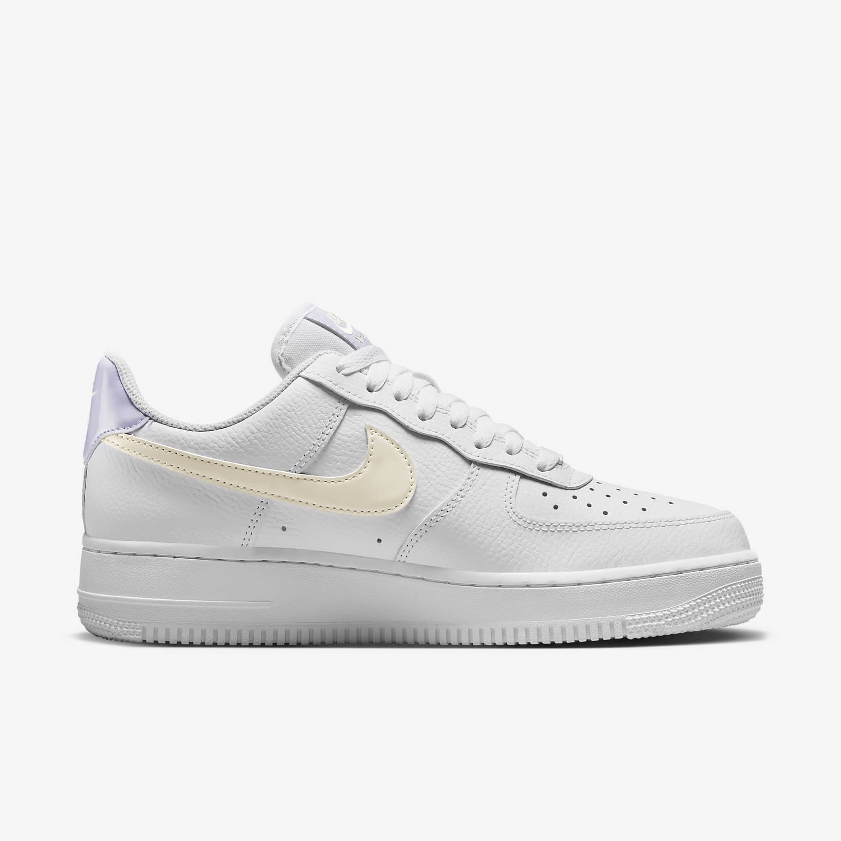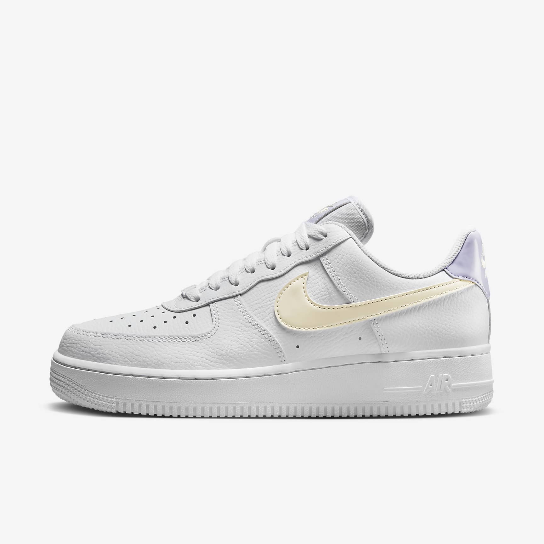 Score major points in this legendary classic. Crossing hardwood comfort with off-court flair, this hoops original pairs crisp leather with playful pastel Swoosh logos for nothing-but-net style. Plus, hidden Nike Air units and durable '80s construction add the comfort you've come to expect from the AF-1. Benefits * From tough stitching and pristine materials to the cupsole design, these kicks deliver durable style that's smoother than backboard glass. * Originally designed for performance hoops, Nike Air cushioning delivers lasting comfort. * Low-cut, padded collar looks sleek and feels great. * Rubber outsole with heritage hoops pivot circles adds traction and durability. Product Details * Foam in midsole * Perforations on the toe Air Force 1 Debuting in 1982 as a basketball must-have, the Air Force 1 came into its own in the '90s. The clean look of the classic white-on-white AF-1 was endorsed from the basketball courts to the street and beyond. Finding its rhythm in hip-hop culture, releasing limited collabs and colourways, Air Force 1 became an iconic sneaker around the globe. And with over 2,000 iterations of this staple, its impact on fashion, music and sneaker culture can't be denied.