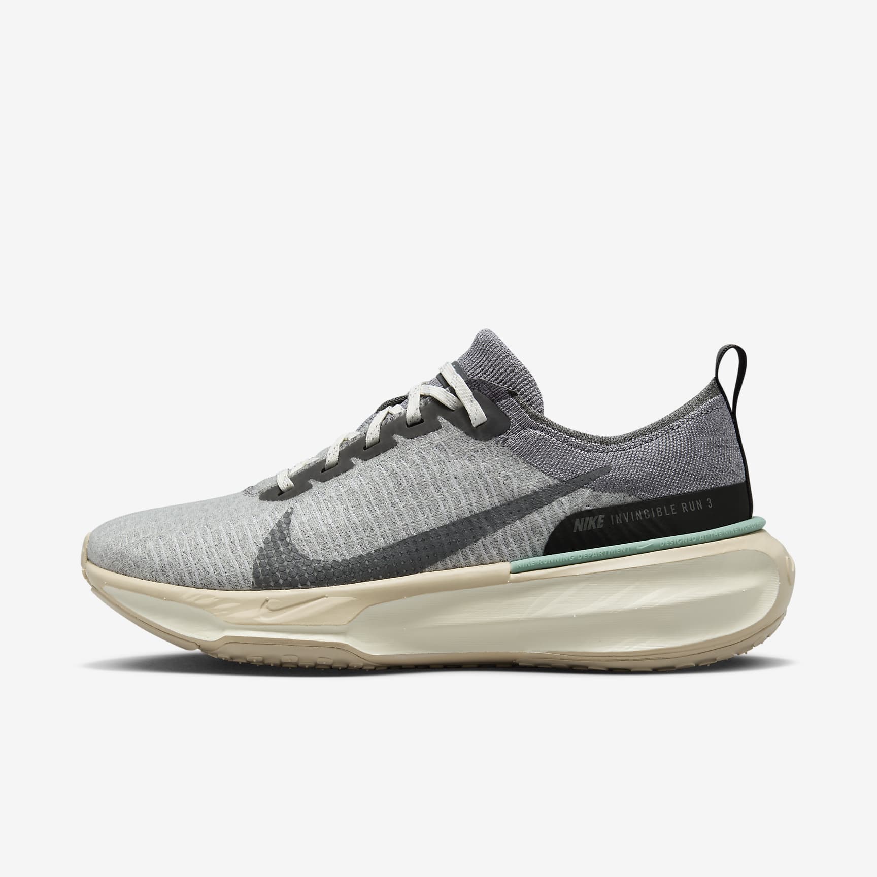 With maximum cushioning to support every mile, the Invincible 3 gives you our highest level of comfort underfoot to help you stay on your feet today, tomorrow and beyond. Designed to help keep you on the run, it's super supportive and bouncy, so that you can propel down your preferred path and come back for your next run feeling ready and reinvigorated. Support: High The more supportive the shoe, the more stability it can give to your natural stride. A combination of tuned support and intentionally placed cushioning helps you feel secure with every step. The Invincible 3 has high-support technology, with cushion and stability intentionally placed and shaped to protect your foot from the effects of pronation. Cushioning: Super-High The more cushioning that you have underfoot, the softer and more comfortable your running experience can be. Cushioning helps soften the impact as your feet hit the ground. With Nike ZoomX cushioning shaped like a rocker and higher foam heights, this shoe gives you ultimate cushioning upon ground contact and an even softer underfoot feel. Responsiveness: Super High The more responsive the shoe, the more energy return you can get back with each step. Whether you want to run a little bit faster or with a little less effort, responsive shoes help give you slightly more spring in your step to get more out of your run. Nike ZoomX foam is ultra-responsive and lightweight, giving you bounce and a snappy response with every step. Fit: Secure, Breathable, Comfortable An evolved Flyknit upper places zones of breathability where your foot heats up most. It's strong and durable, helping keep your foot secure with every mile. What's New About the Invincible 3? We made the heel clip smaller than our previous iteration and placed it in a more precise location. A wider midsole adds stability. Taller foam stacks than our previous version raise the bar on cushioning and comfort, in a more sleek-looking design. Product Details * Not intended for use as Personal Protective Equipment (PPE)
