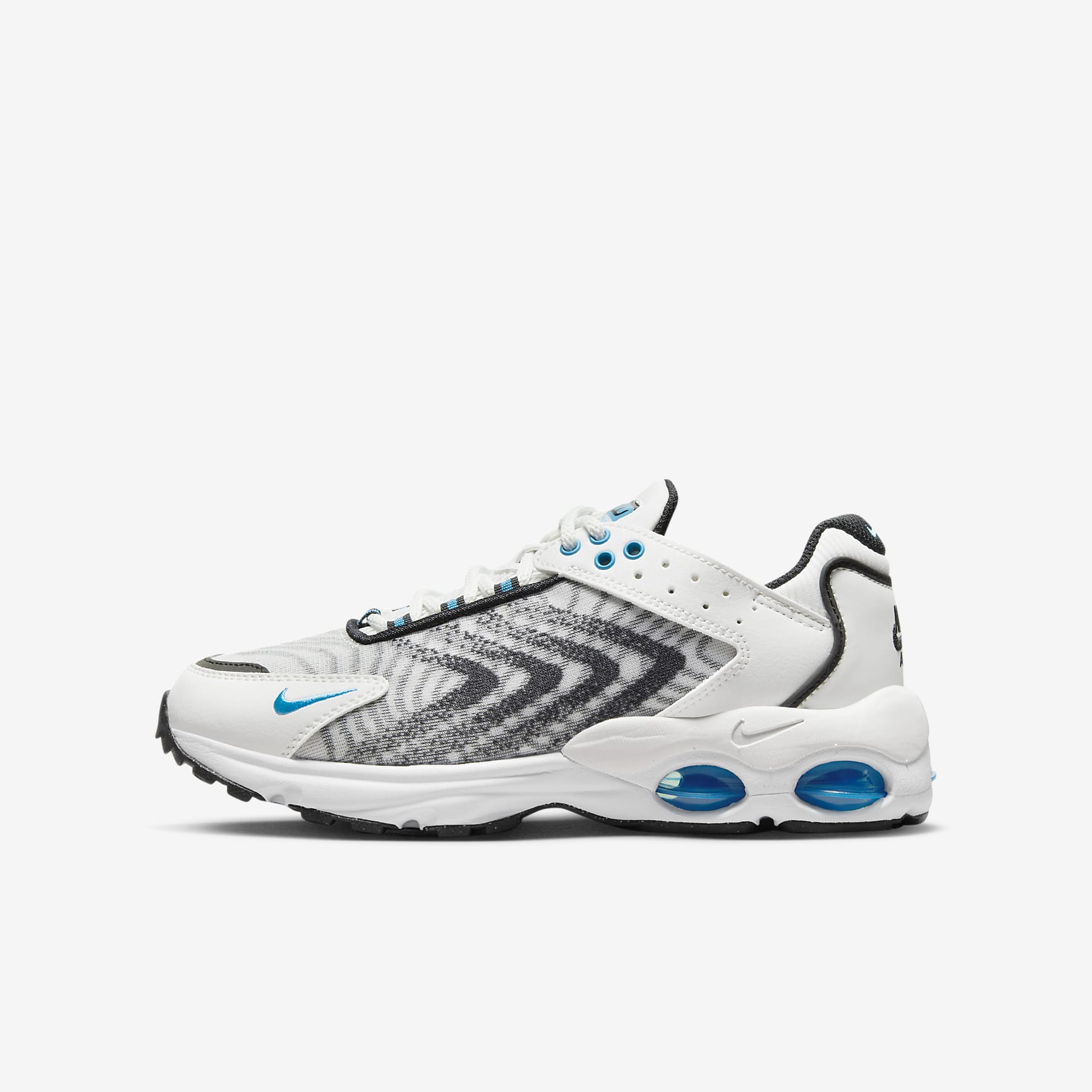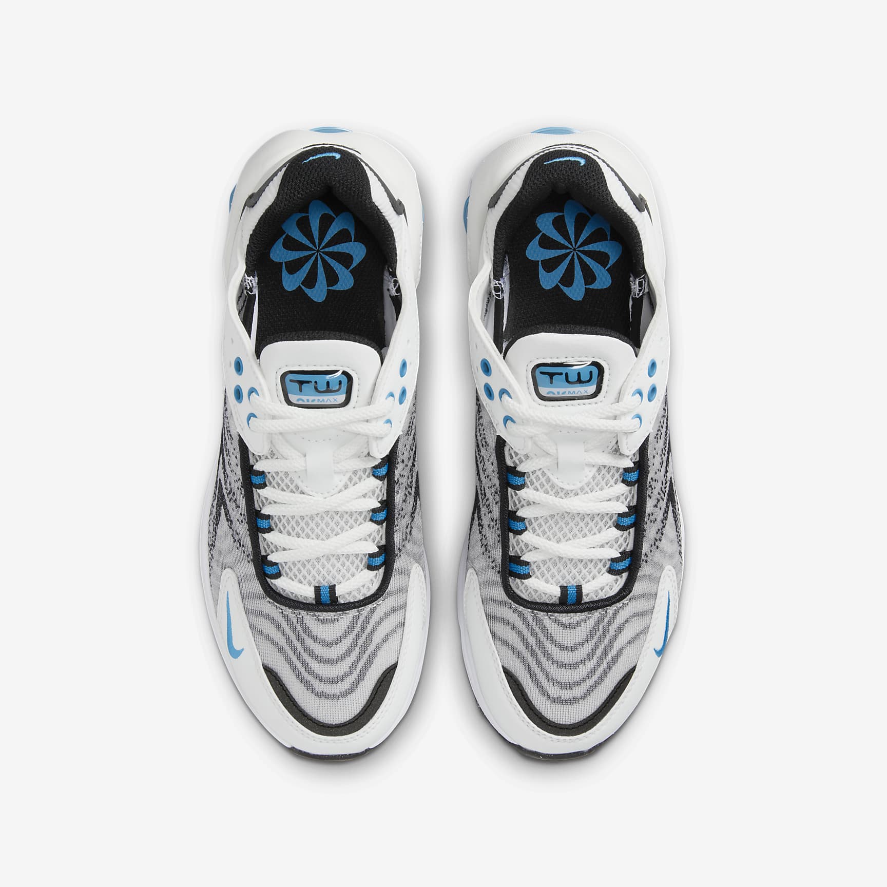 Tell us what you notice first about the Nike Air Max TW. Is it the cool bubbles of Air that help cushion your every step or the sweet boomerang design on the sides? Inspired by our iconic Tailwind, which introduced the running world to Air cushioning, these are shoes you'll want to play all day in. Plus, fun colours provide an energetic feel with every step. Built to Breathe Double-layered mesh feels lightweight and breathable, helping you play and move comfortably. Synthetic leather adds extra durability and support. Walk on Air Inspired by the Tailwind design of the '90s, a Max Air unit under the heel is combined with soft foam underfoot for lightweight cushioning. Everyday Traction A full-length rubber sole with rubber pods helps provide durable traction for multiple surfaces. Tailwind for the Future From the updated design lines to the Nike Air unit, these shoes take inspiration from the Tailwind franchise that became a favourite from 1979 through the '90s. Originally a running shoe, they're now made for everyday wear. Product details * Classic laces * Padded collar