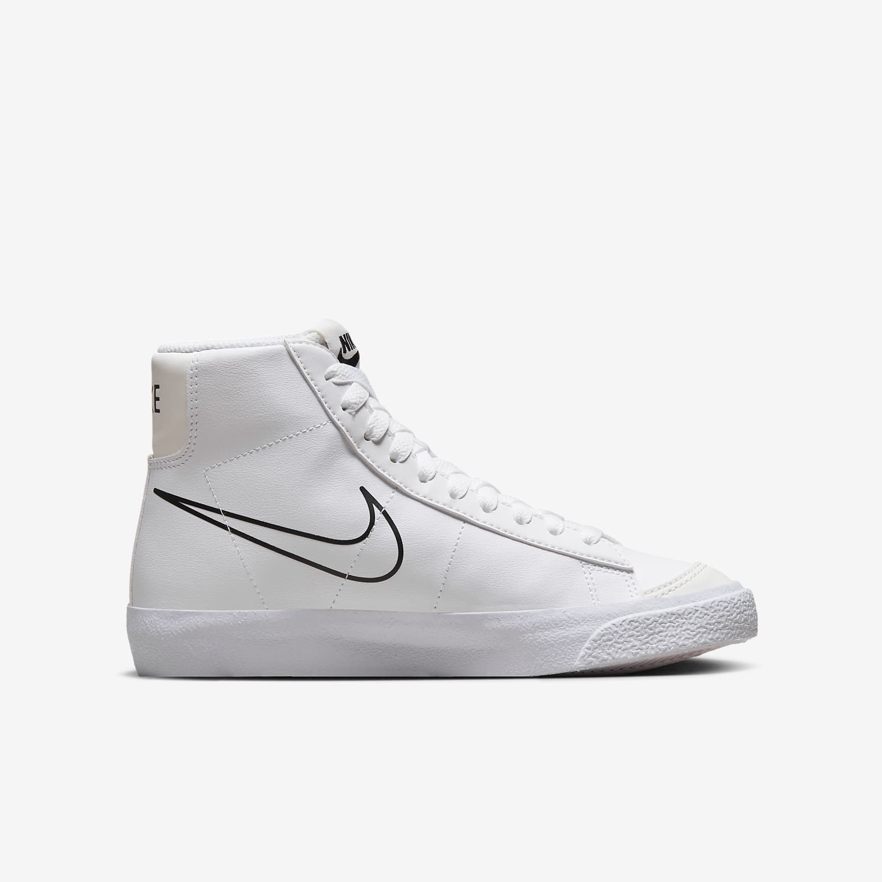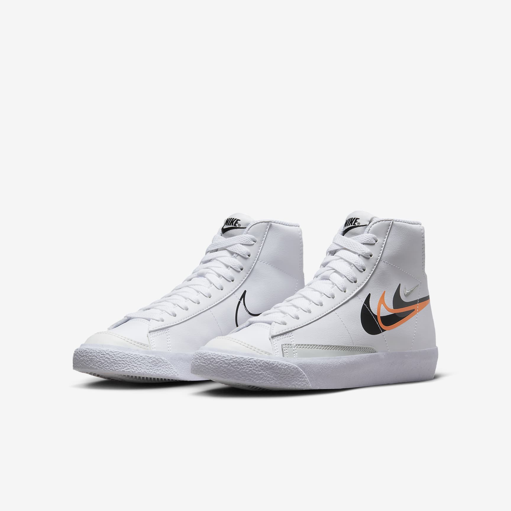 Lace up in sneakers that channel the look of old-school basketball. Multiple Swoosh logos add eye-catching style, helping these kicks make a splash on the playground. Plus, a mix of durable retro design and modern materials means you can run, skip and jump in comfort. Benefits * Synthetic leather adds durability and support for everyday wear and maintains classic look of old-school basketball. * Padded collar and tongue help cushion your foot and ankle. * Foam insole feels soft and lightweight with every step. * Vintage treatment on midsole adds retro feel. * Herringbone rubber sole is flexible and provides durable traction. Product Details * Classic laces * Reinforced toe tip Blazer Origins Originally introduced in 1972 as a basketball shoe, the Blazer has since transformed into a modern staple for skaters and sneakerheads alike. Maturing from a simple canvas high-top to a leather mid-top and casual low-top, this shoe just gets better with age.